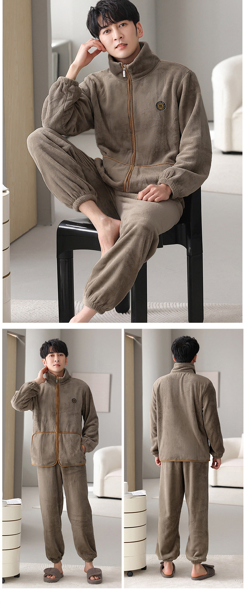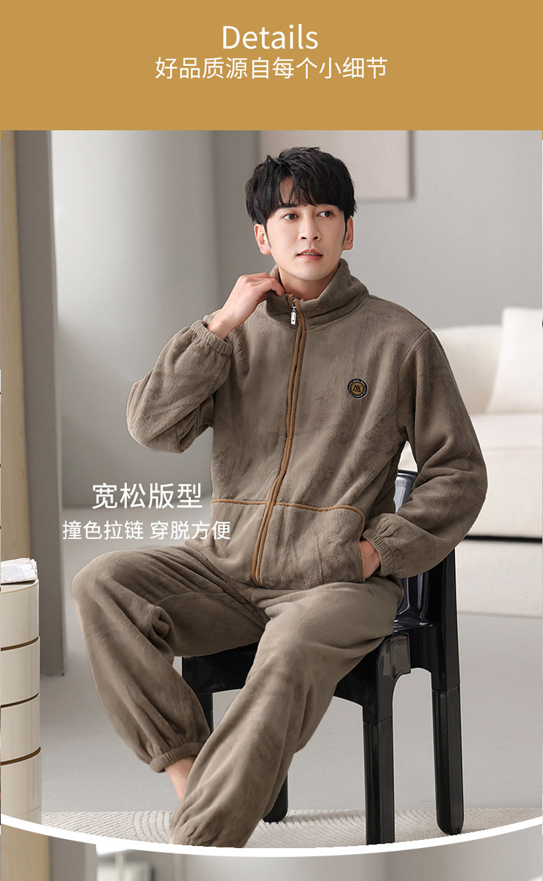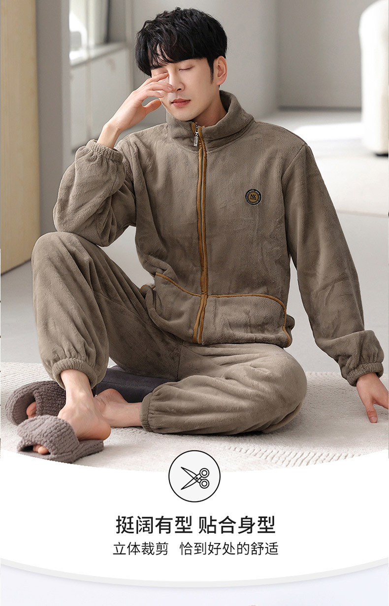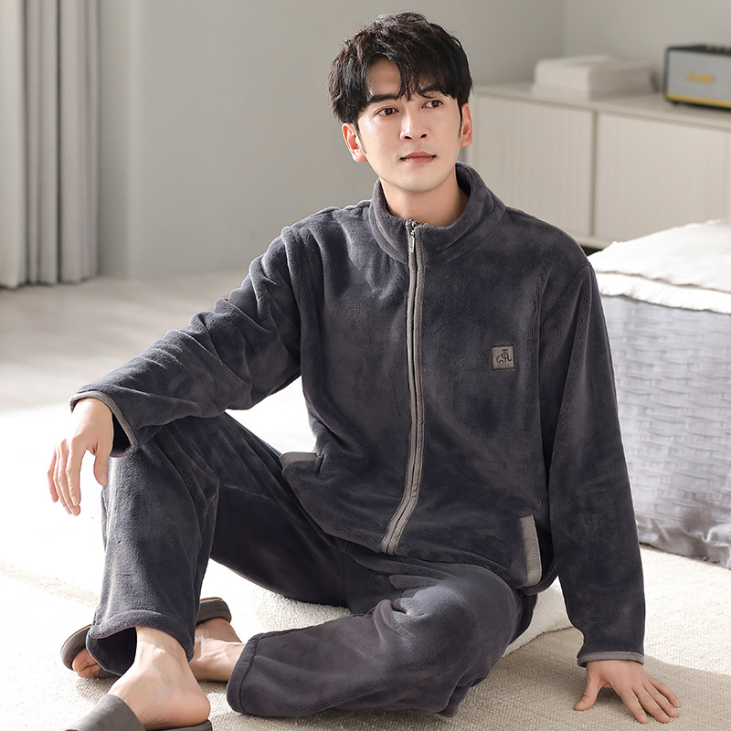 잠옷 남자의 겨울 산호 양털 두꺼운 기모 남자의 가을/겨울 플란넬 남자의 플러스 사이즈 캐주얼 겨울 가정 의류스토어 가기