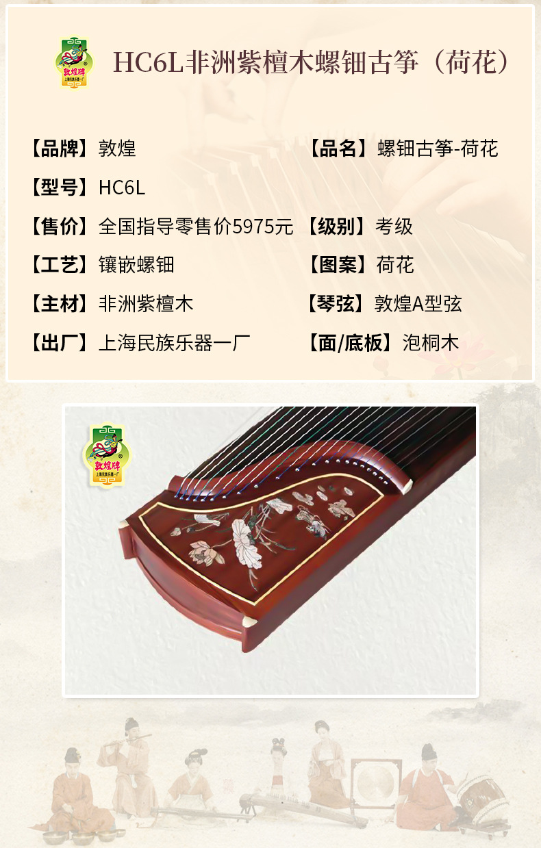 둔황구젱 오리지널 정품 초보자 입문용 HC6L 자개 화이트모이사나무 연꽃 노란색 오동나무 도매 수입 보라색스토어 가기