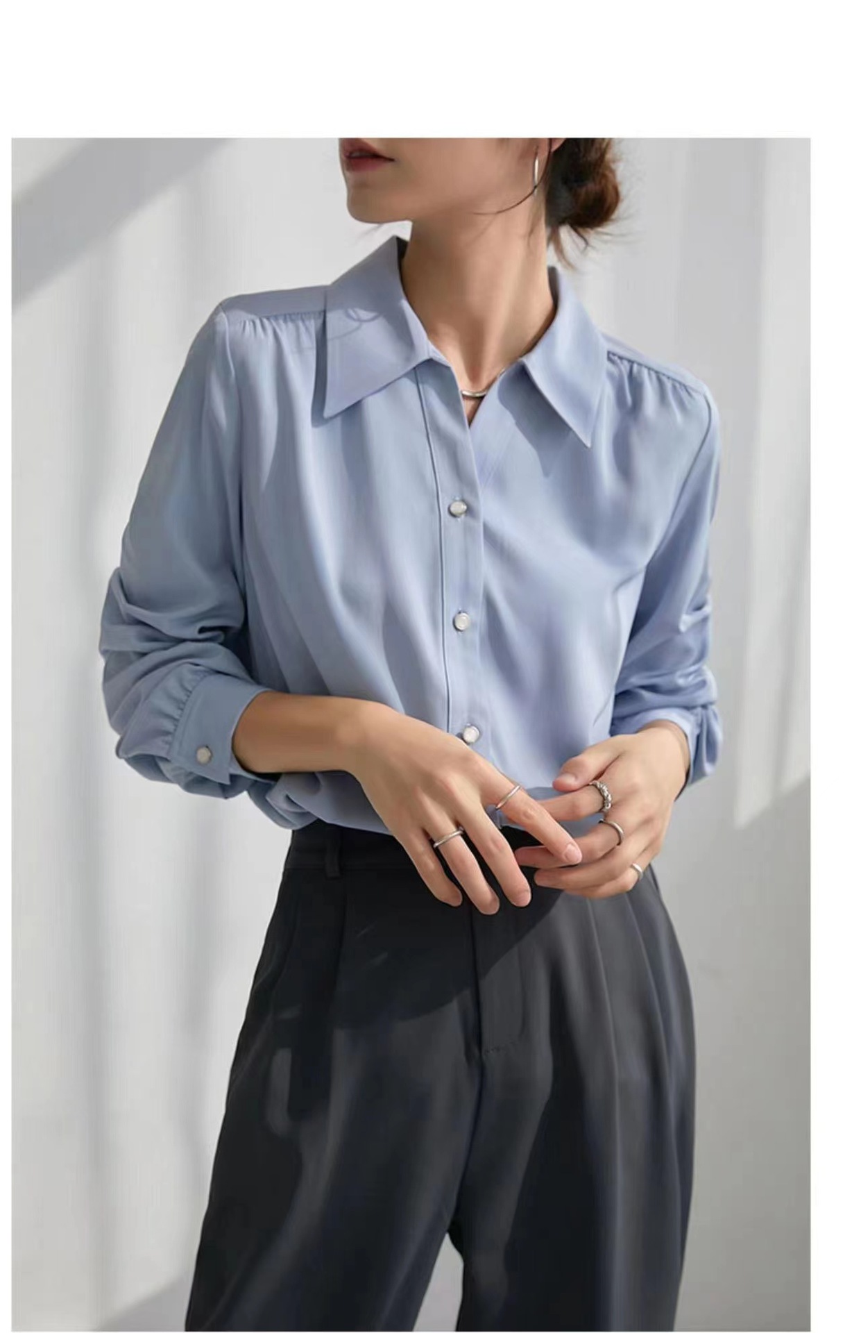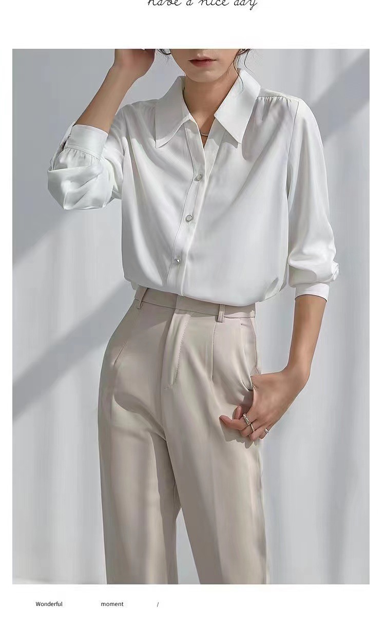 공식 행사 공무원 교재 인터뷰 전문 셔츠 여성 2024 봄, 가을 정장 흰색 긴팔 학생