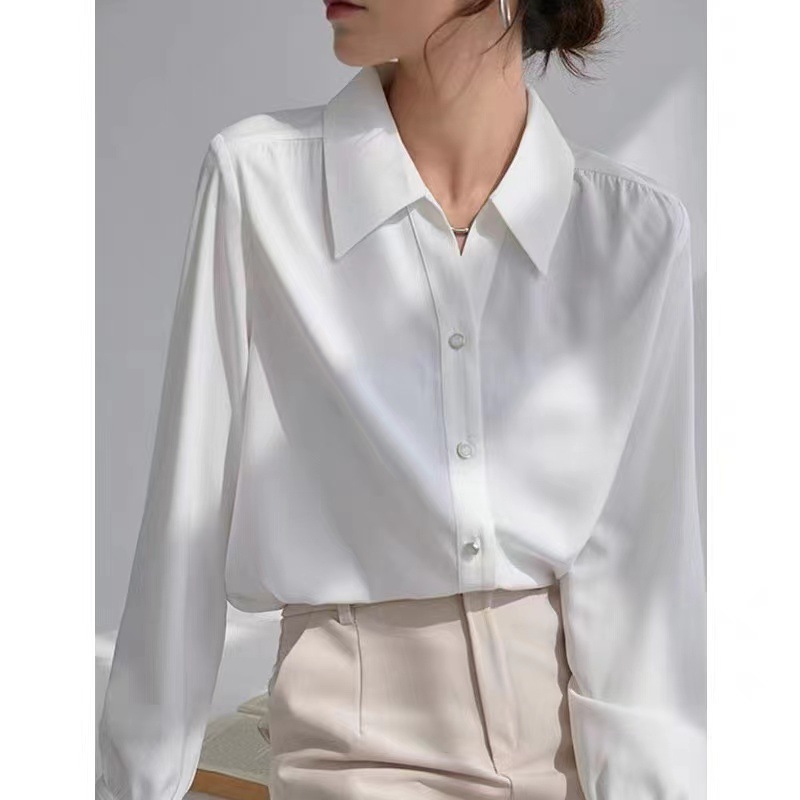 공식 행사 공무원 교재 인터뷰 전문 셔츠 여성 2024 봄, 가을 정장 흰색 긴팔 학생스토어 가기