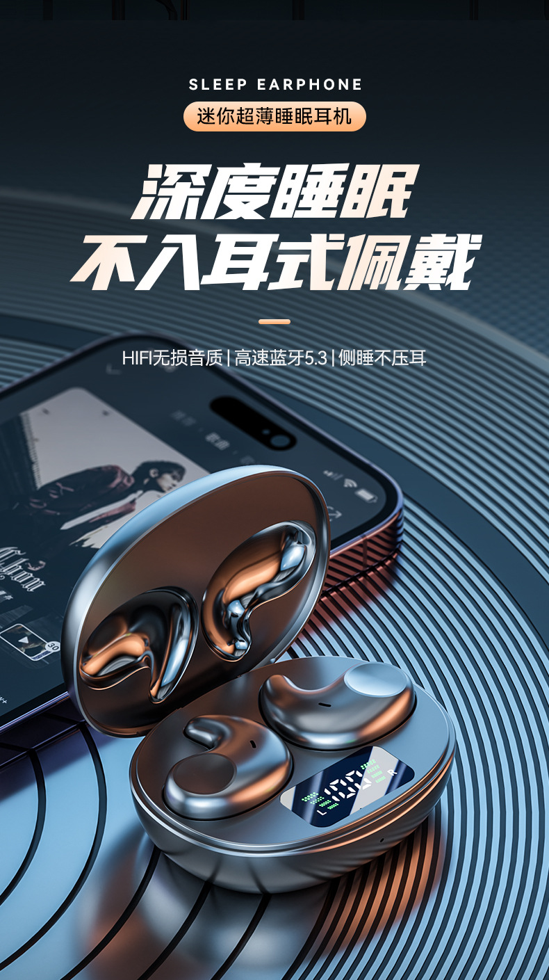 국경을 넘는 신제품 M52 수면용 블루투스 이어폰, 옆으로 누워서 사용하는 고품질 TWS 인이어 미니 무선 이어폰 도매