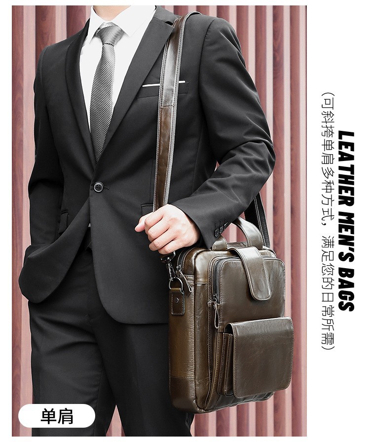 남자의 핸드백 비즈니스 컴퓨터 서류 가방 정품 가죽 숄더 크로스 바디 백 캐주얼 심플 소가죽 핸드백 남성용스토어 가기