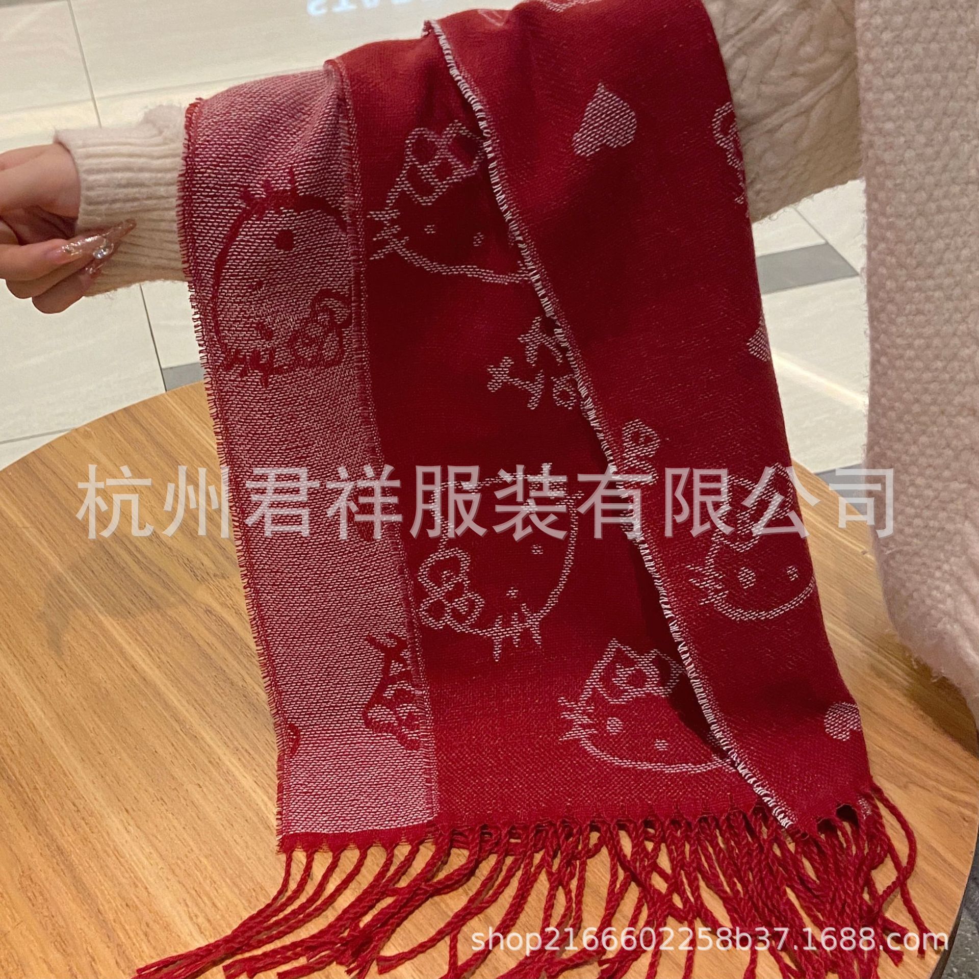 2024 새로운 겨울 일본 jk 스타일 귀여운 고양이 검은 회색 양면 스카프 슈퍼 다용도 단순스토어 가기