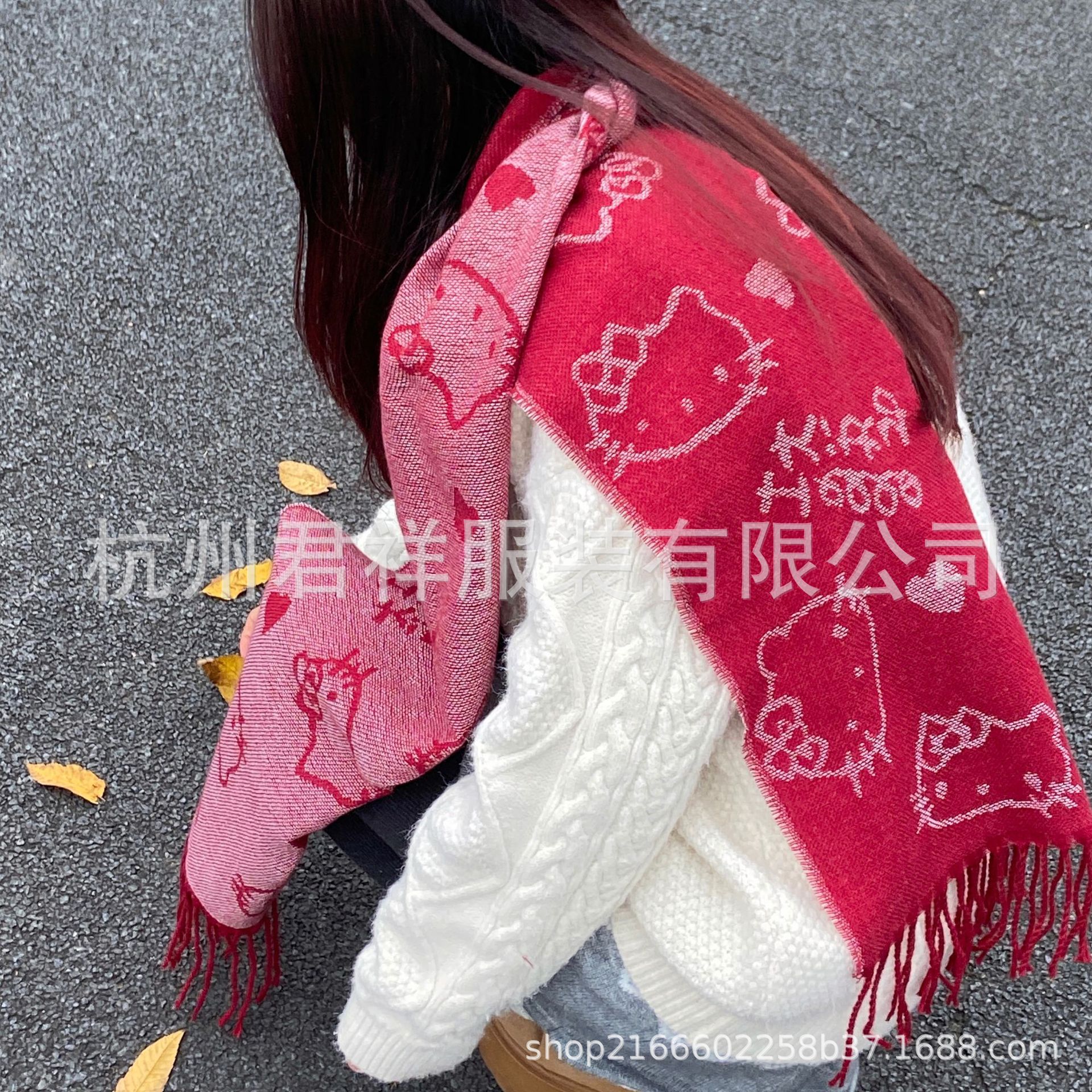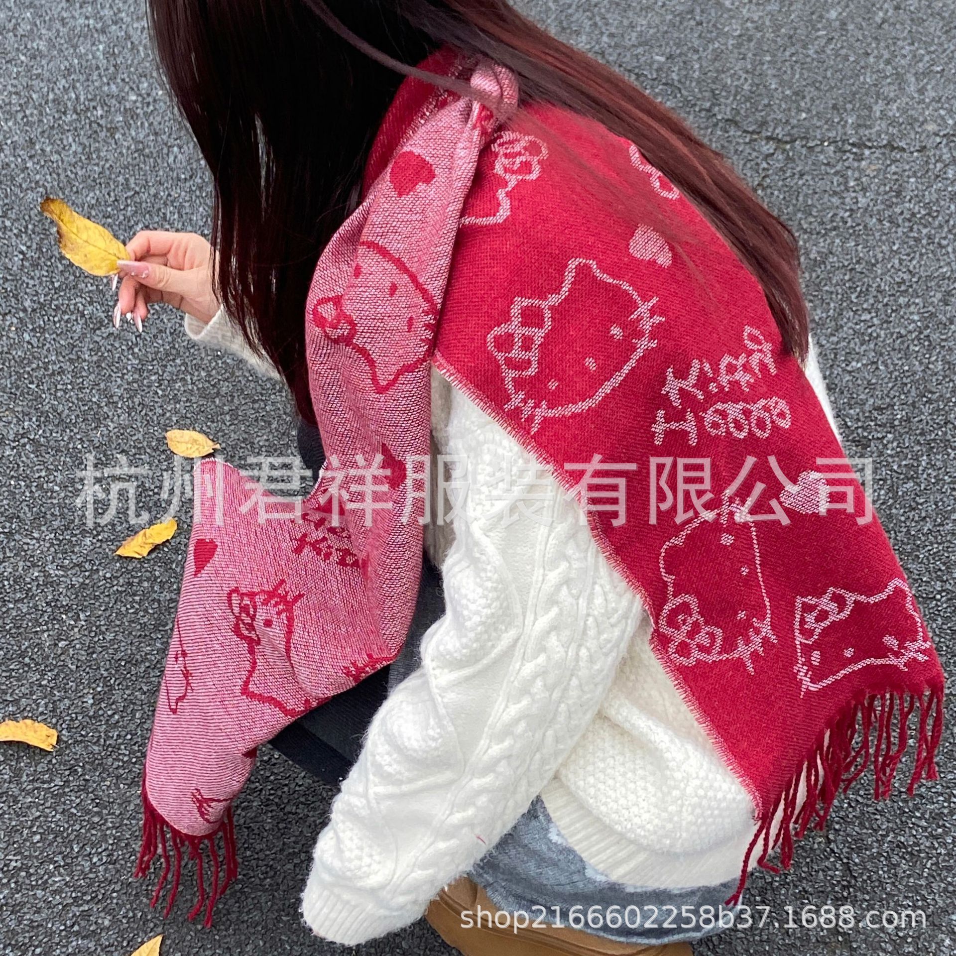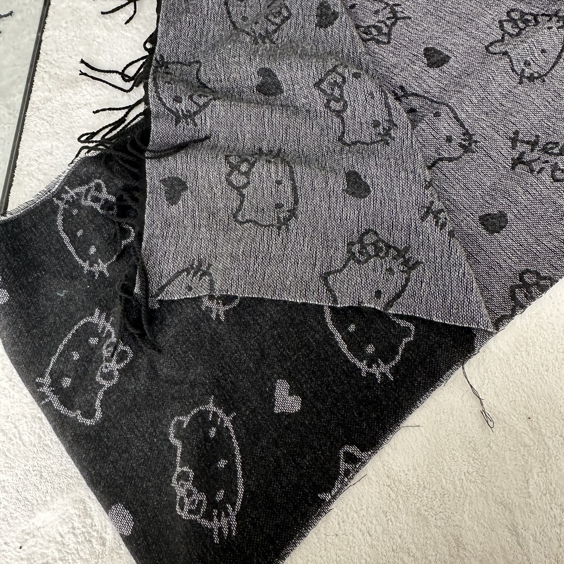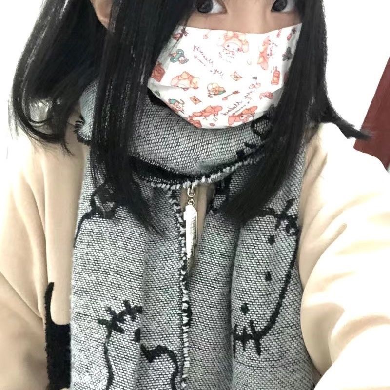 2024 새로운 겨울 일본 jk 스타일 귀여운 고양이 검은 회색 양면 스카프 슈퍼 다용도 단순