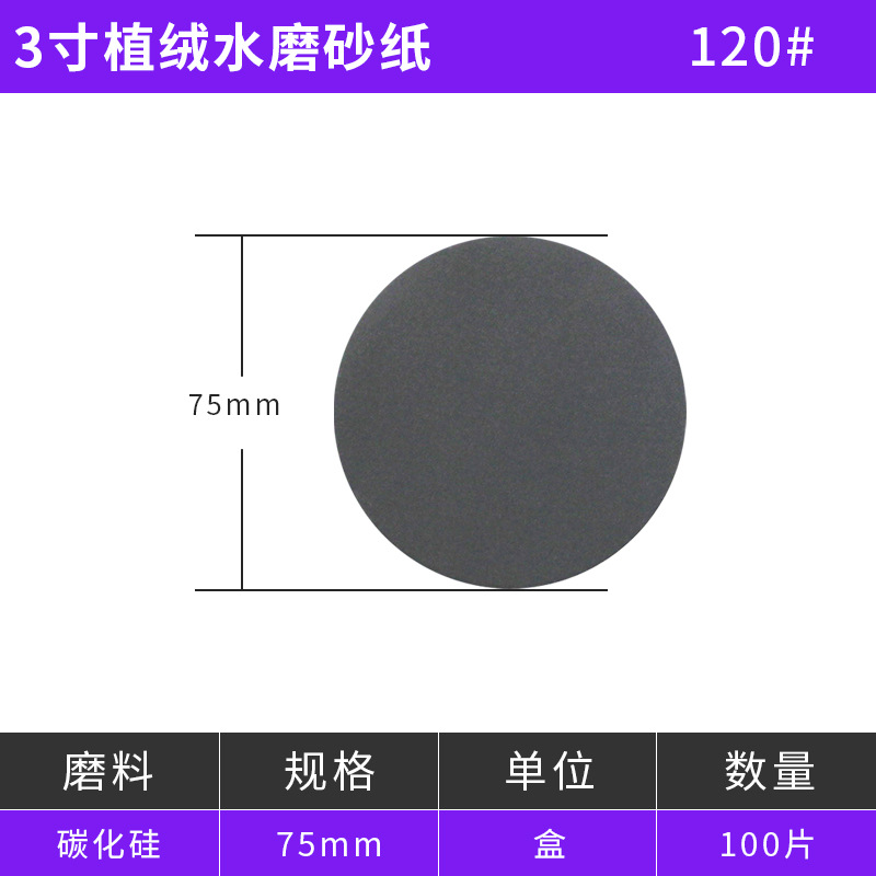【주펑】 3inch 4inch 5inch 금속학용 벨크로 연마지 원형 블랙 탄화규소 방수 연마 및 광택스토어 가기