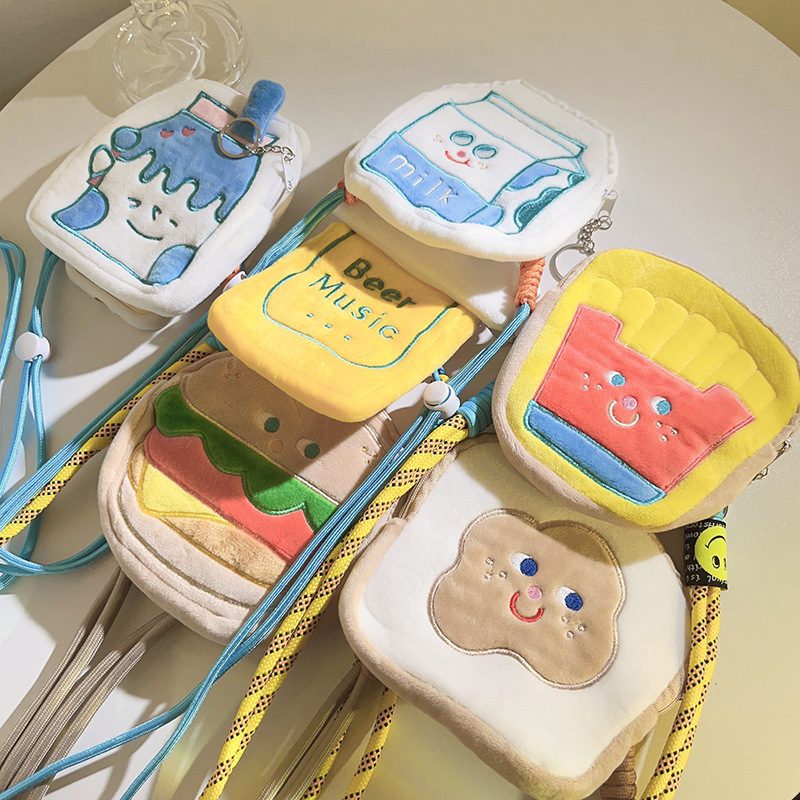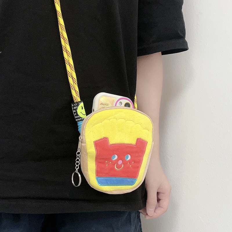 경계 미니 빵 감자 튀김 변경 보관 가방 다시 클립 크로스 바디 전화 체인 만화 소녀 봉제 펜던트 끈