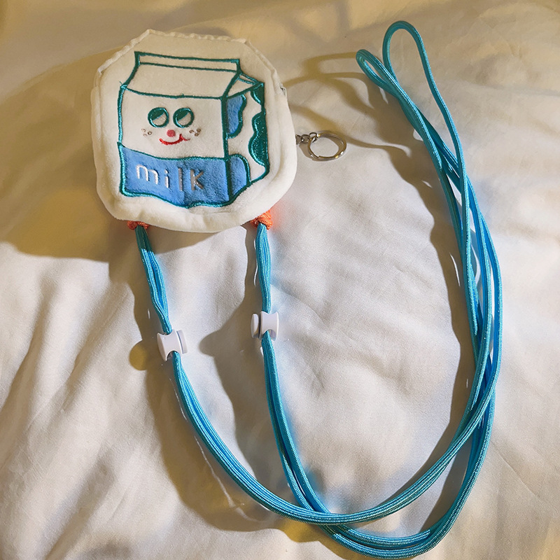 • 우유 우유 동전 지갑 백 클립 + 긴 로프 10