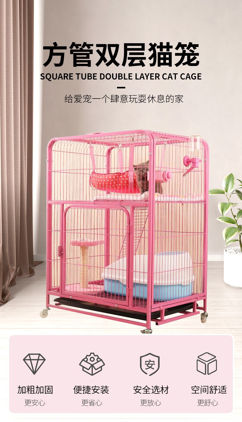 사각 튜브 고양이 케이지 더블 레이어 고양이 케이지 화장실 가정용 애완 동물 케이지 실내 고양이 빌라 초대형 공간 고양이 집