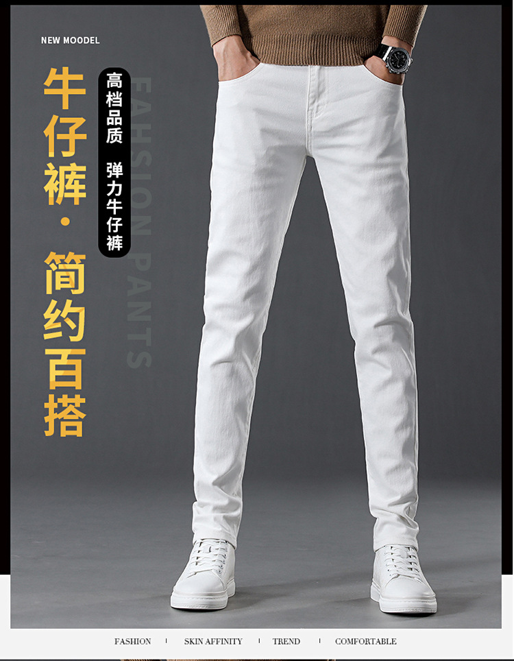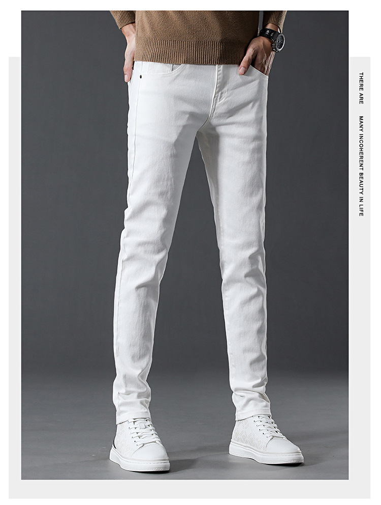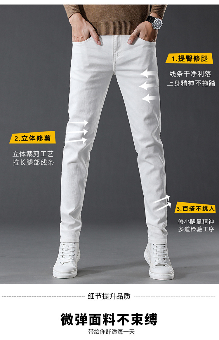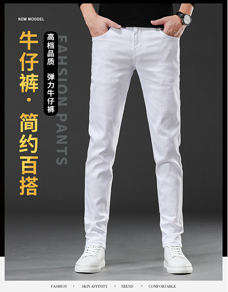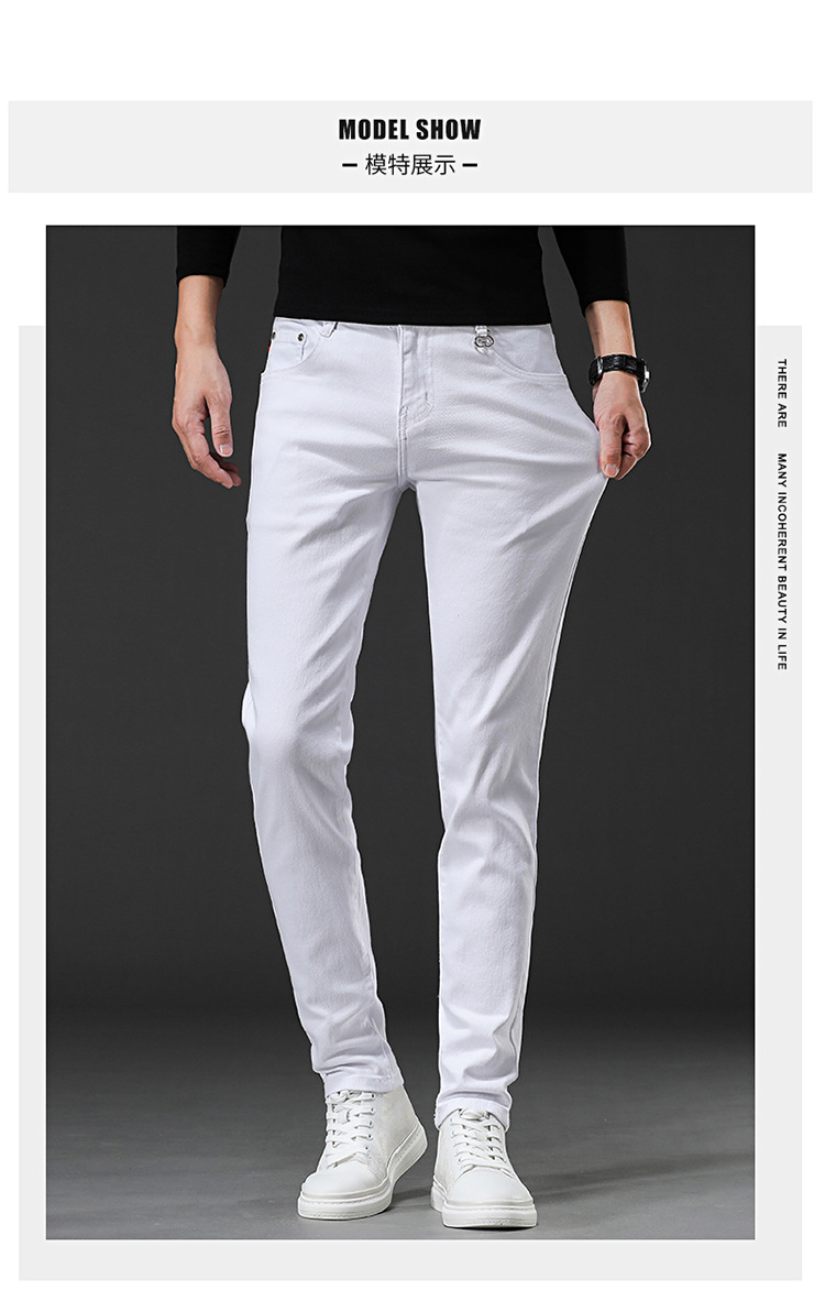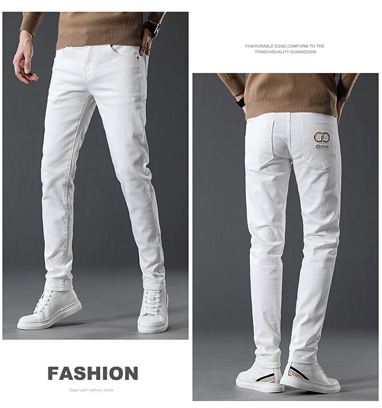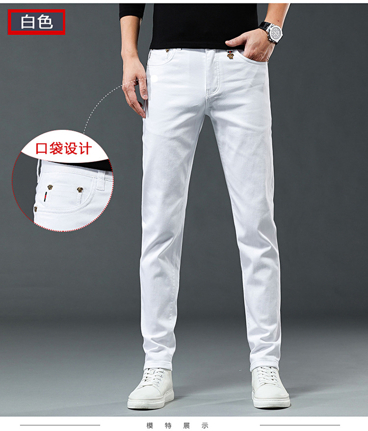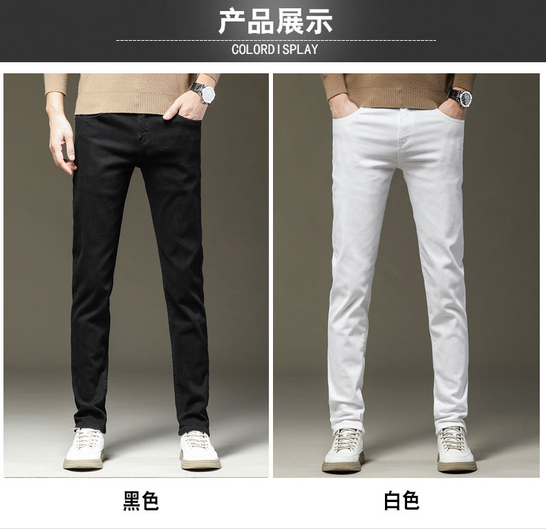 유럽 패션 브랜드 남성용 블랙 스키니 진 탄성 슬림 화이트 바지 남성용 대외 무역 쉐이크 보이스스토어 가기