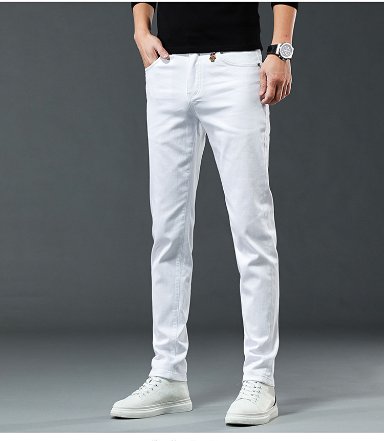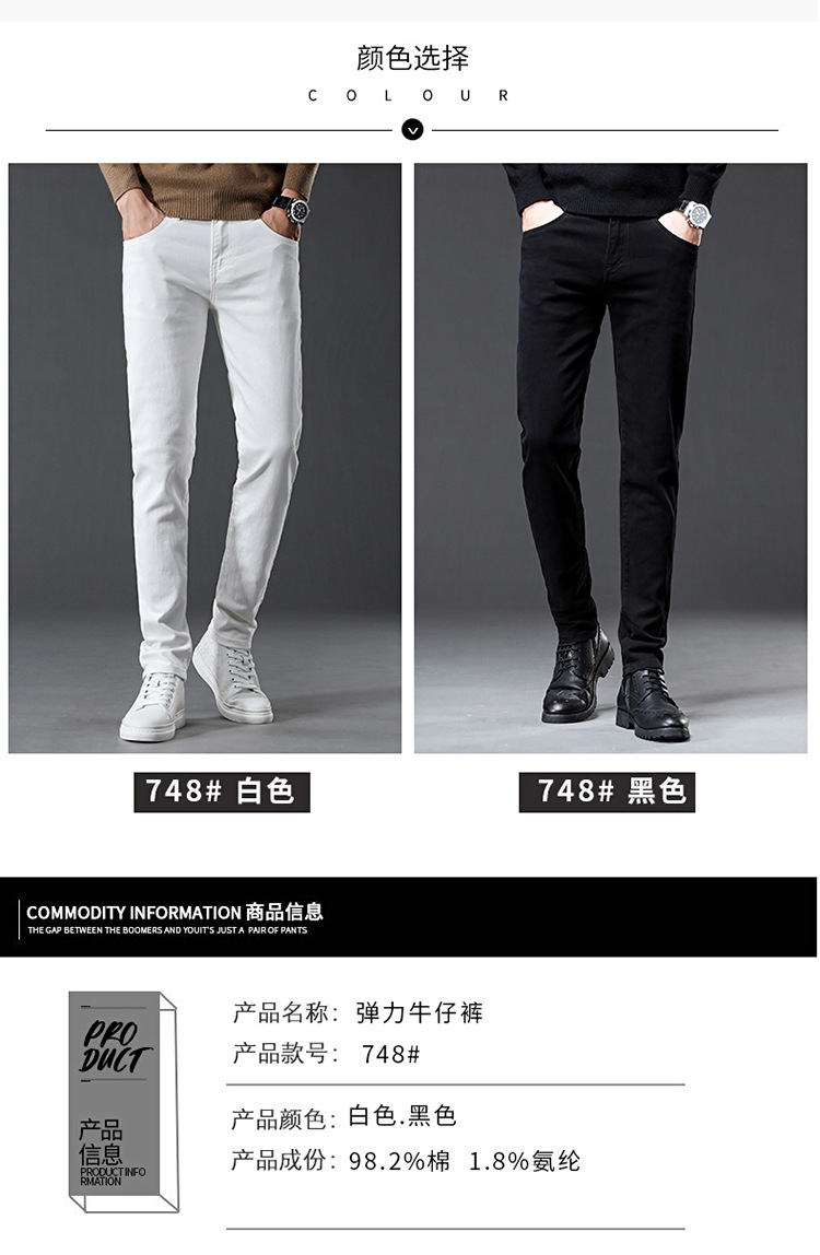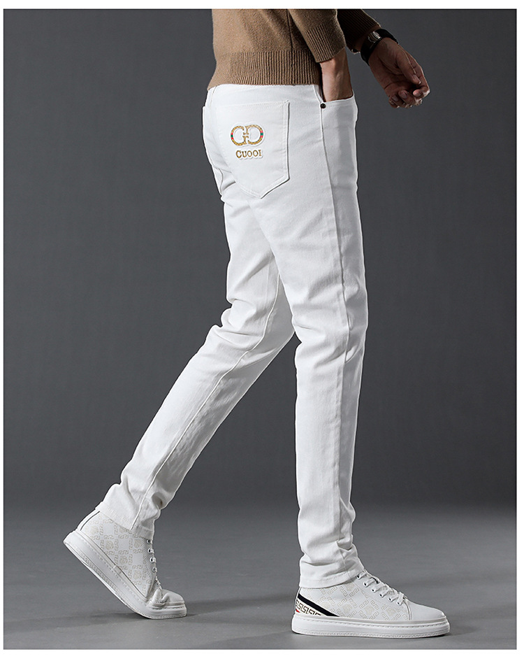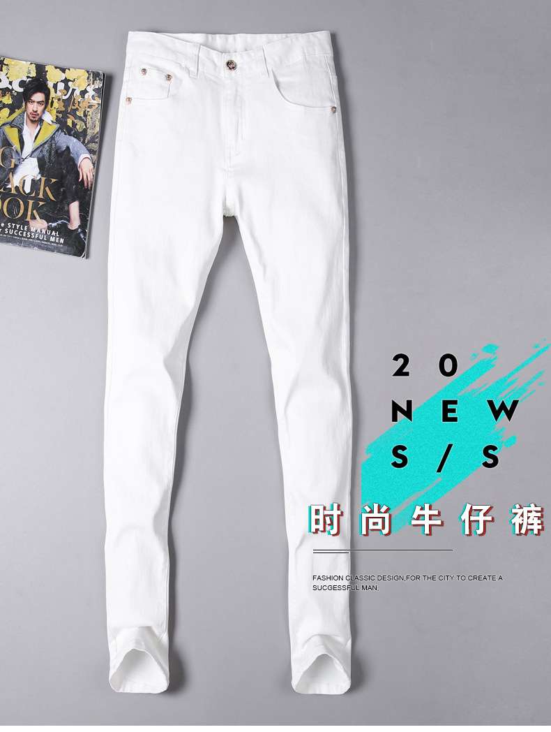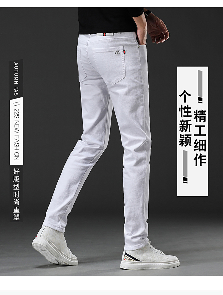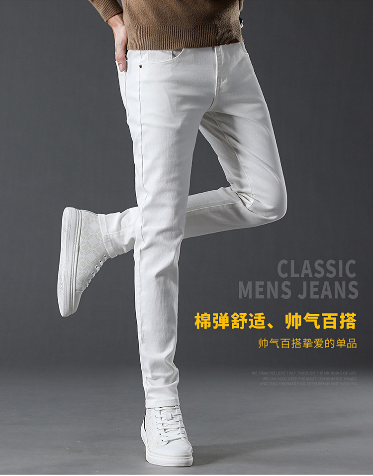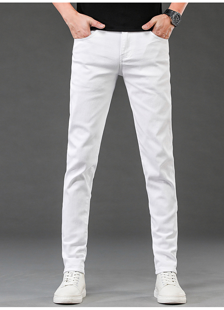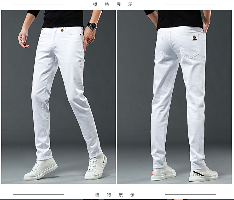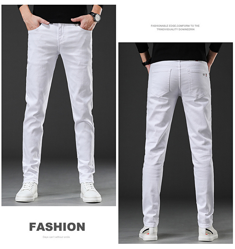 유럽 패션 브랜드 남성용 블랙 스키니 진 탄성 슬림 화이트 바지 남성용 대외 무역 쉐이크 보이스스토어 가기