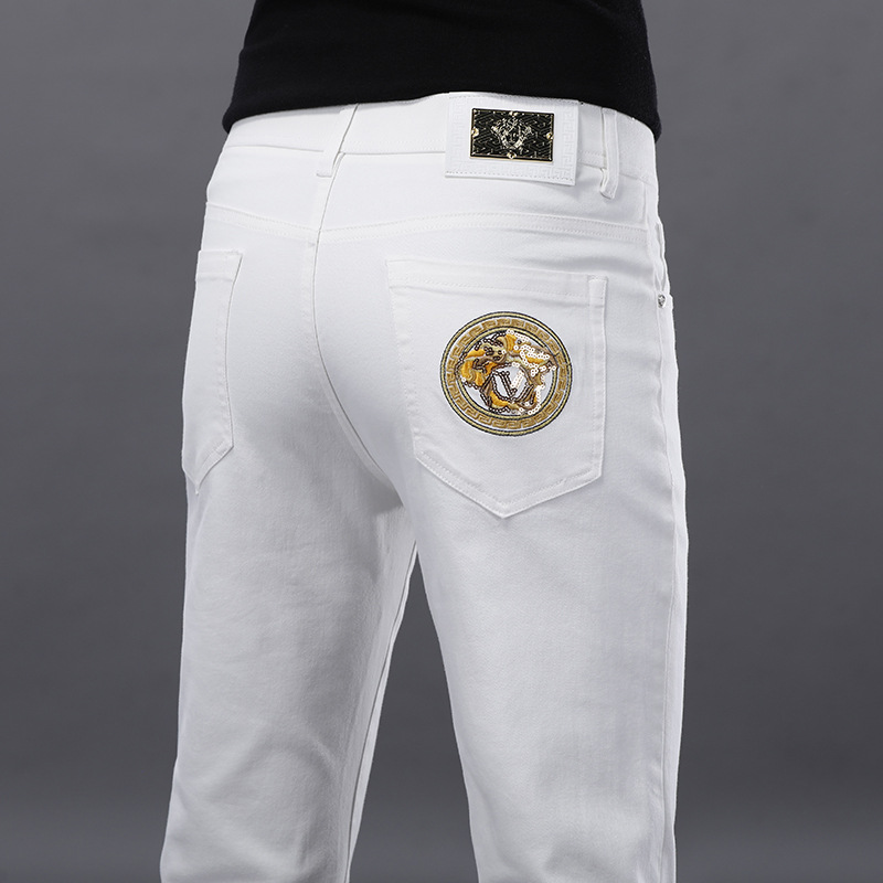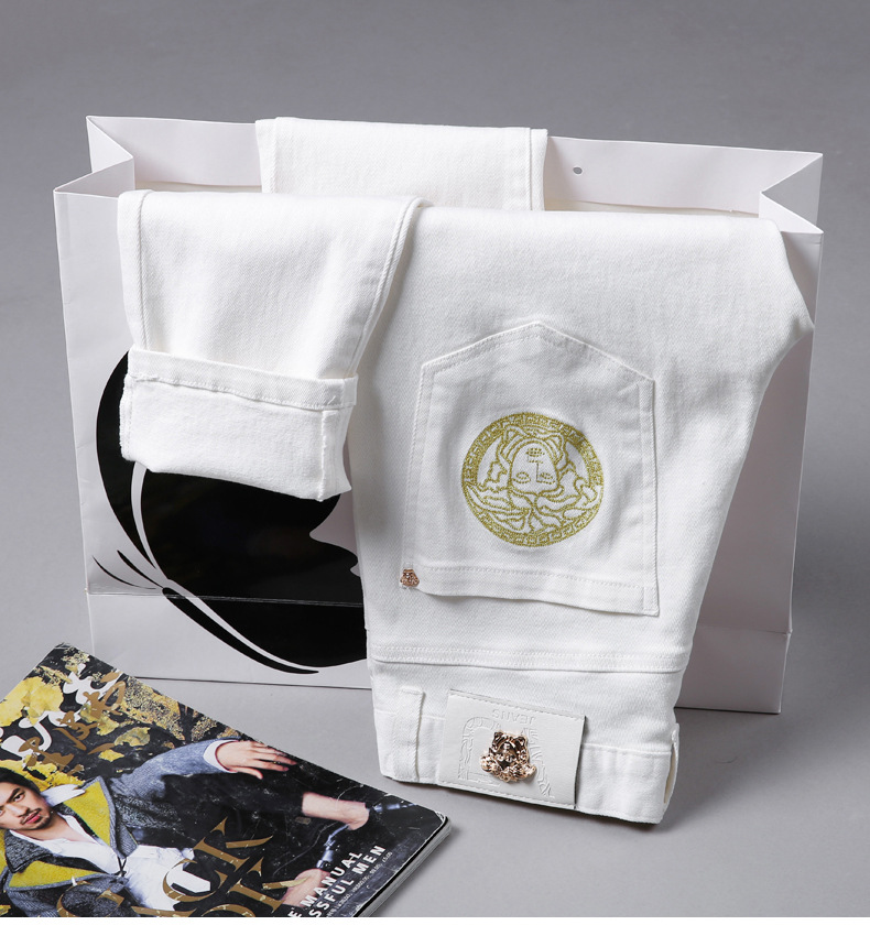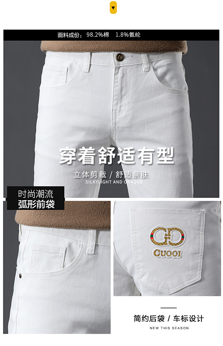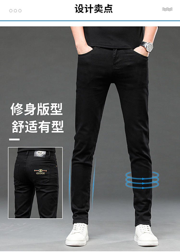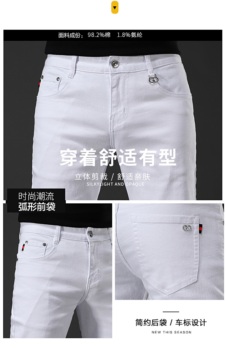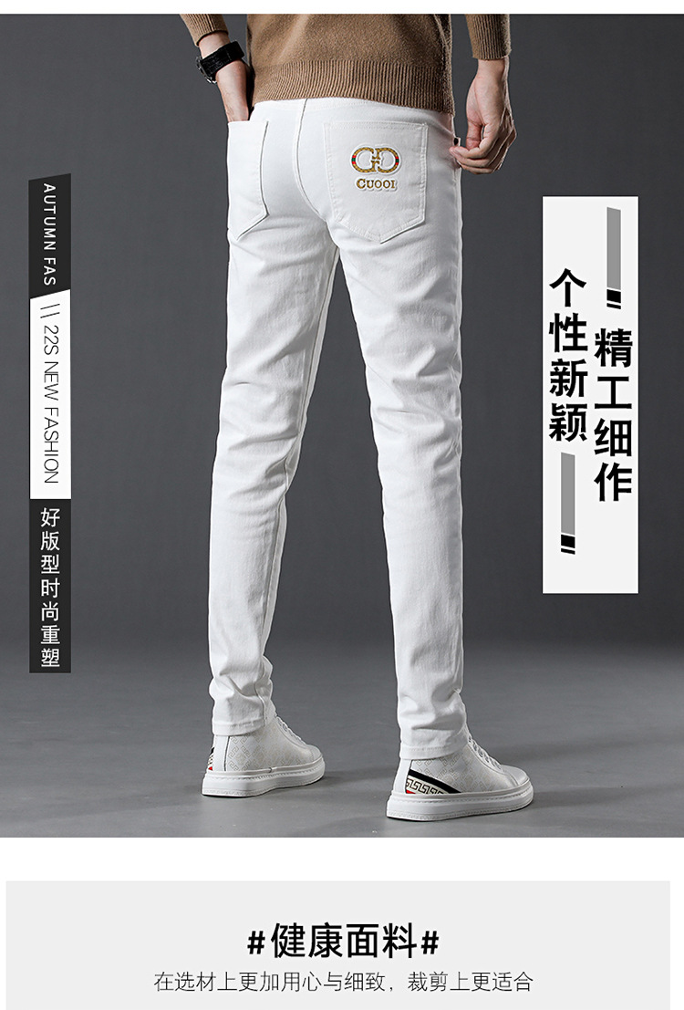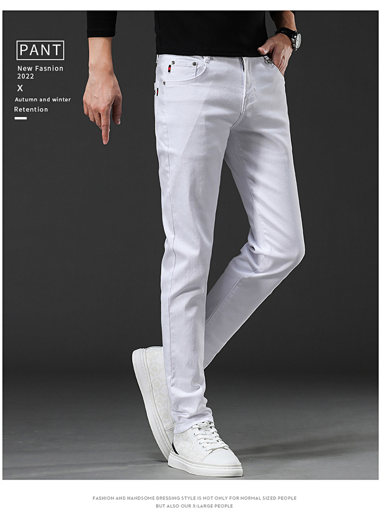 유럽 패션 브랜드 남성용 블랙 스키니 진 탄성 슬림 화이트 바지 남성용 대외 무역 쉐이크 보이스스토어 가기