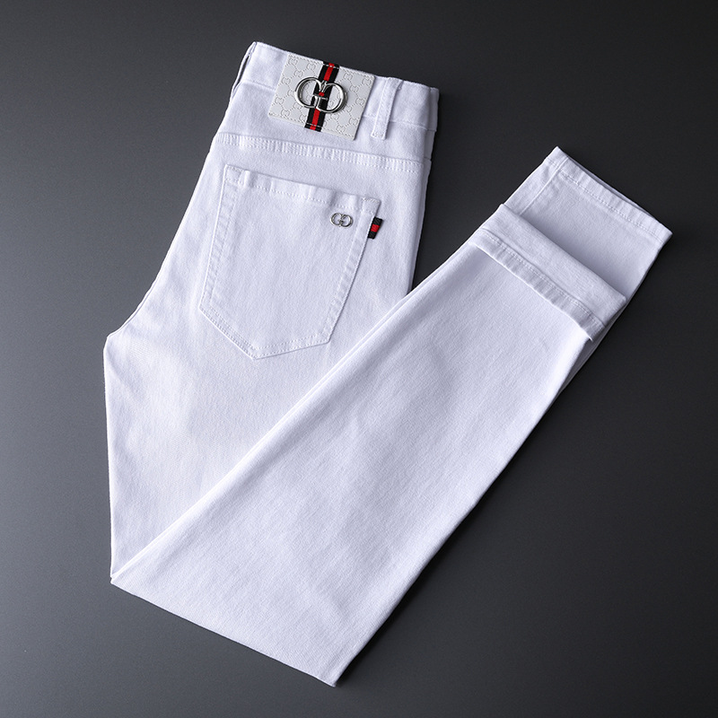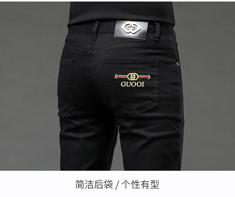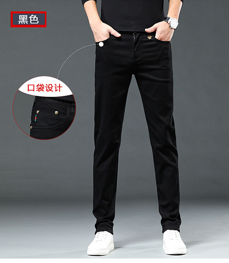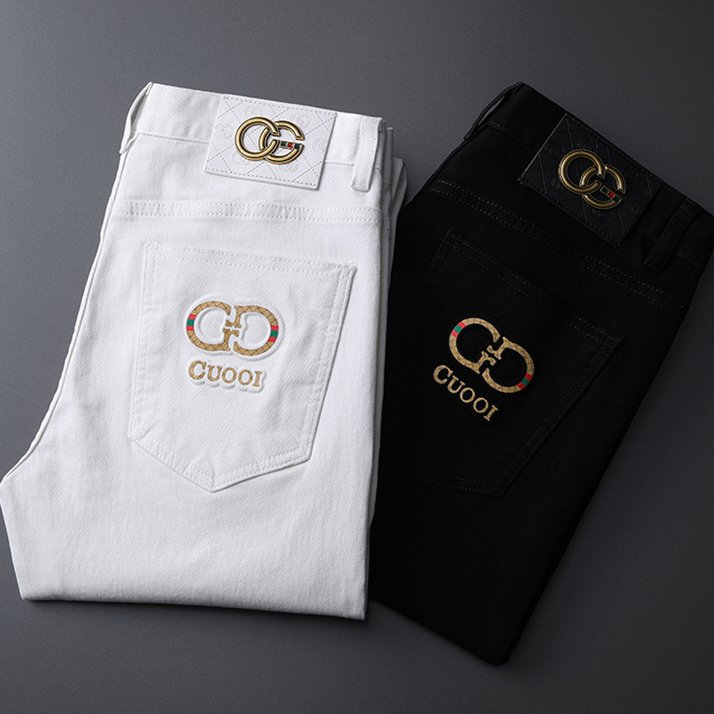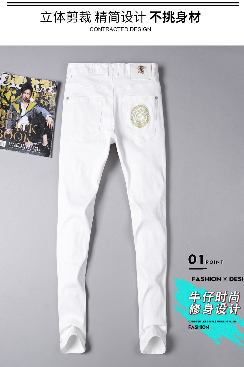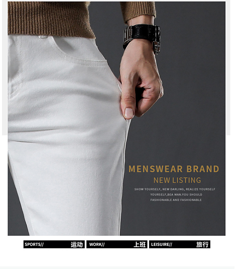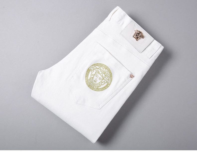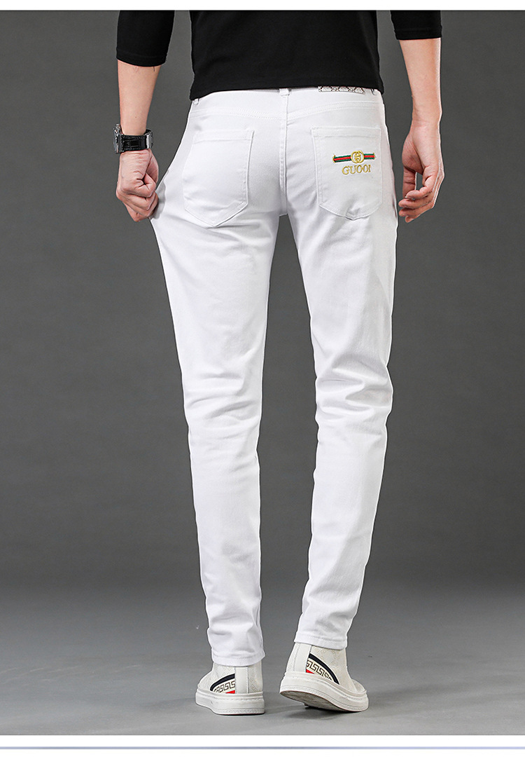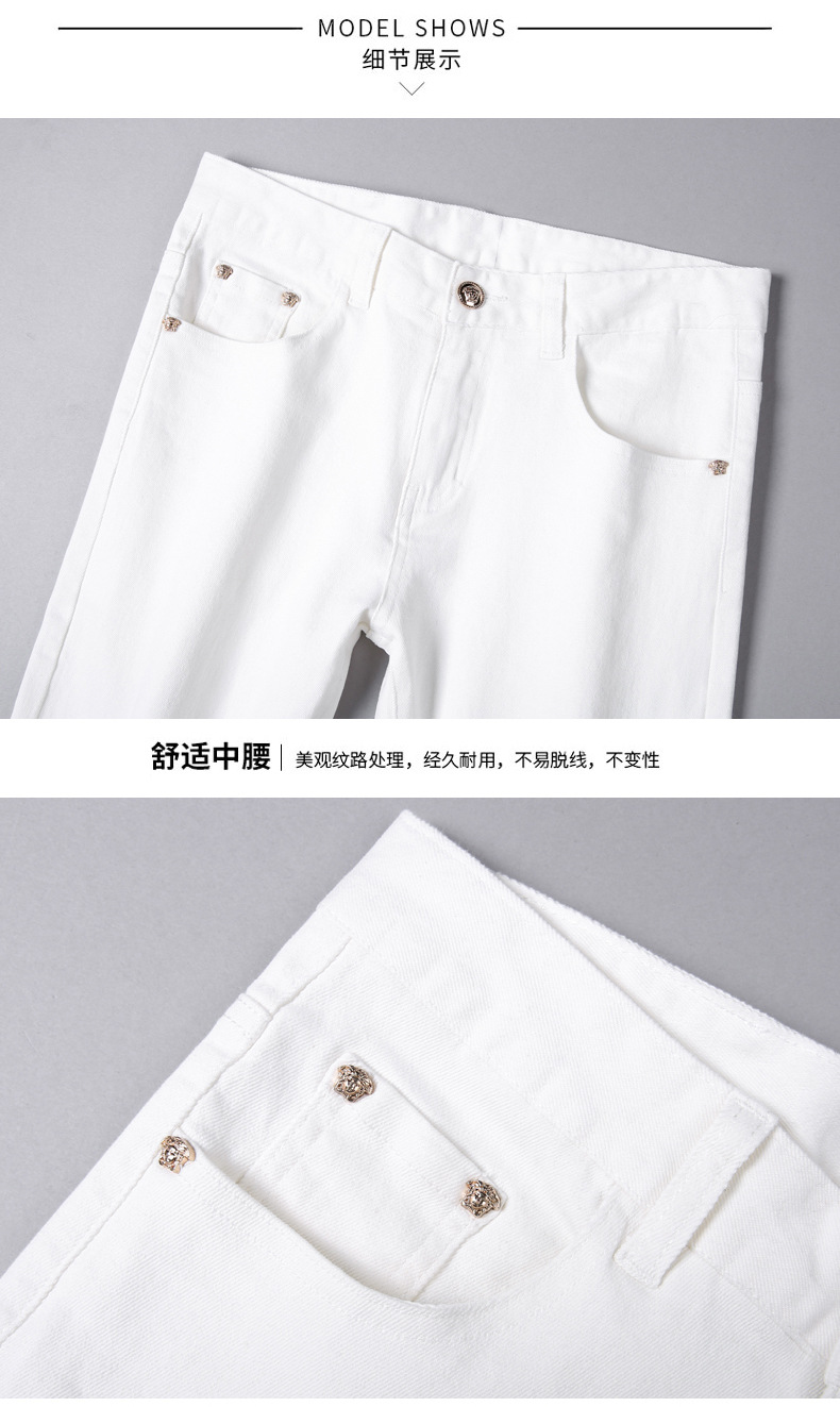 유럽 패션 브랜드 남성용 블랙 스키니 진 탄성 슬림 화이트 바지 남성용 대외 무역 쉐이크 보이스스토어 가기
