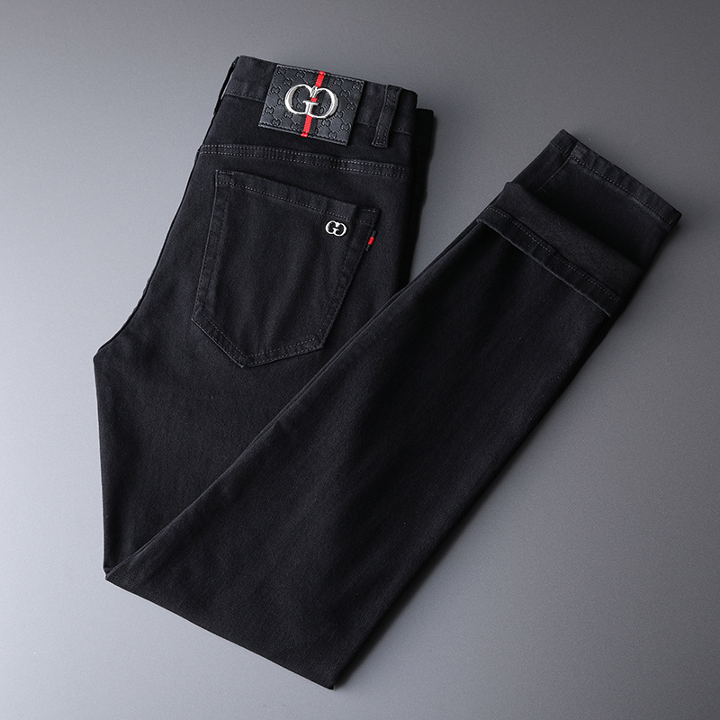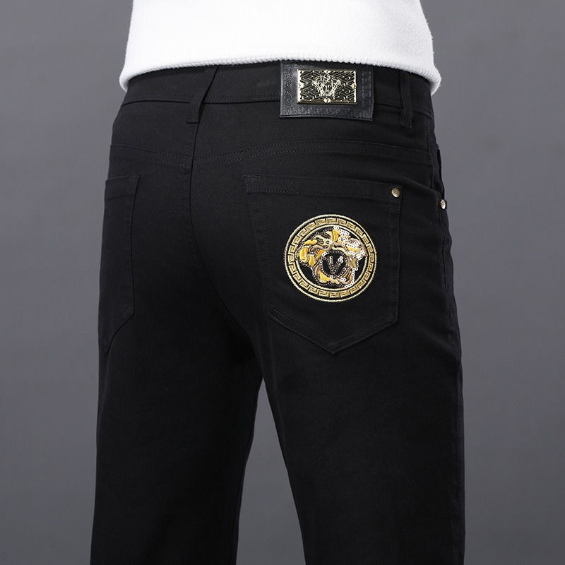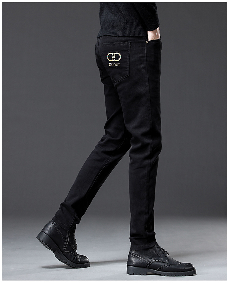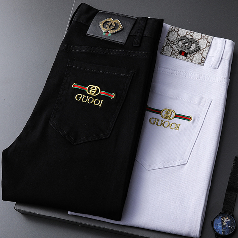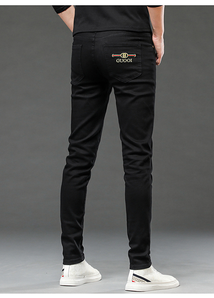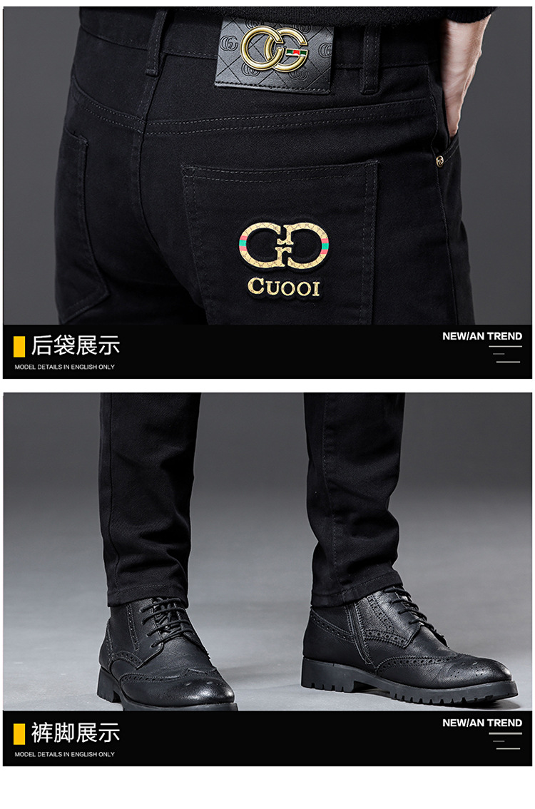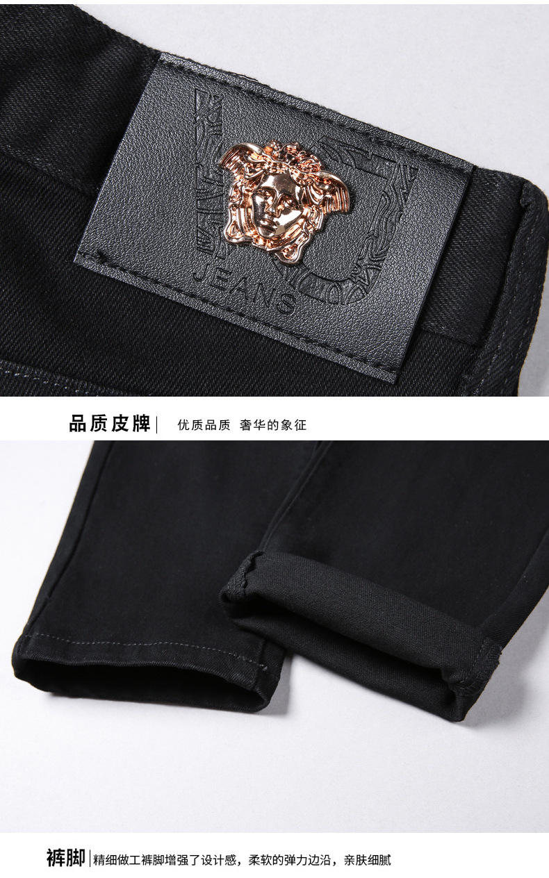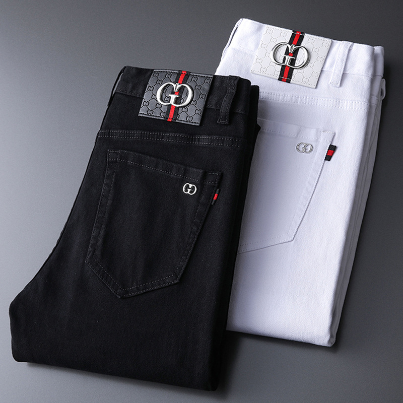 유럽 패션 브랜드 남성용 블랙 스키니 진 탄성 슬림 화이트 바지 남성용 대외 무역 쉐이크 보이스스토어 가기