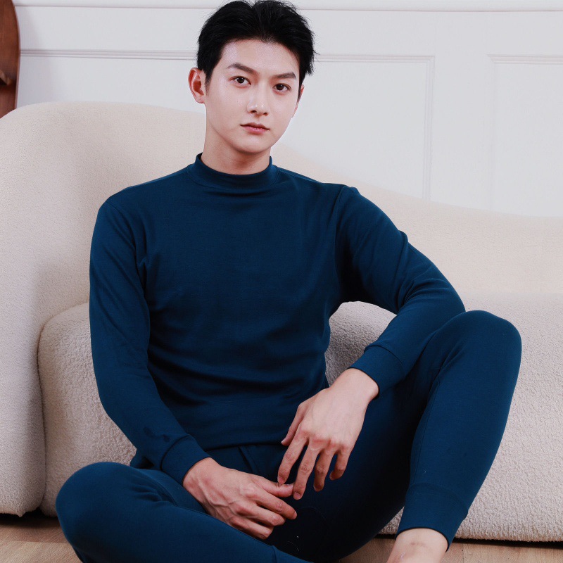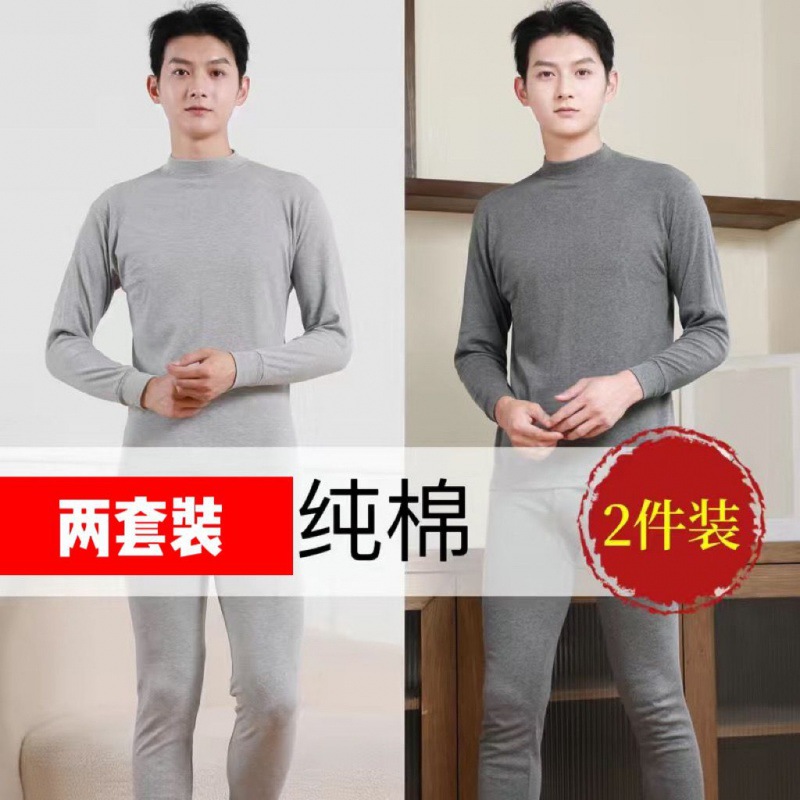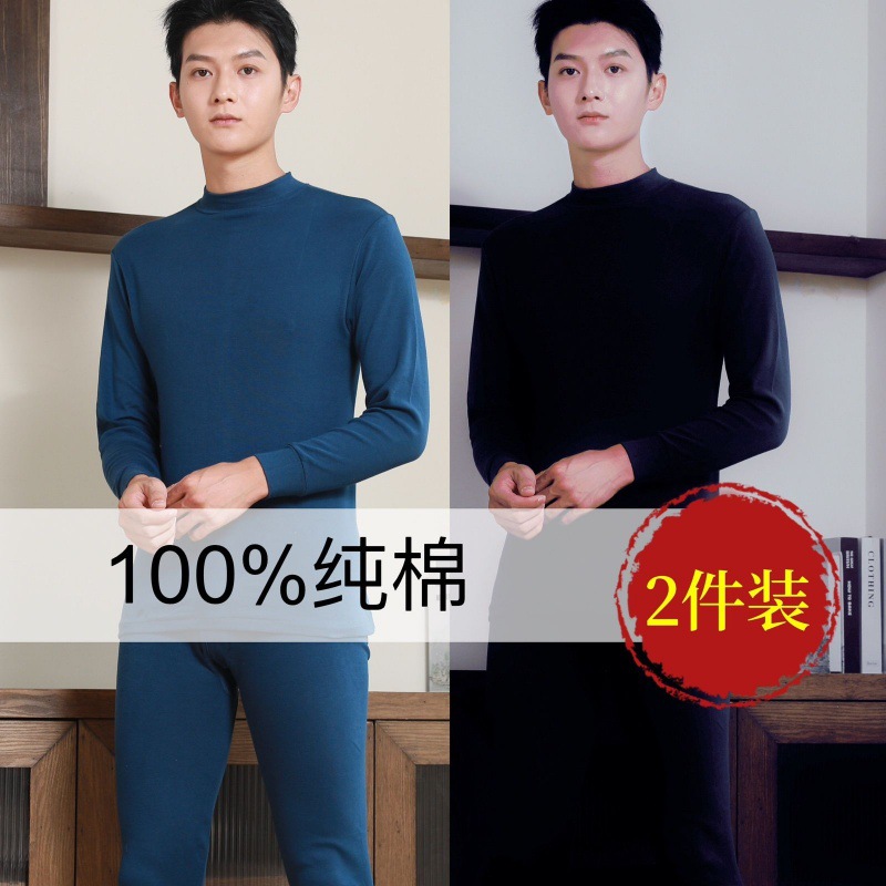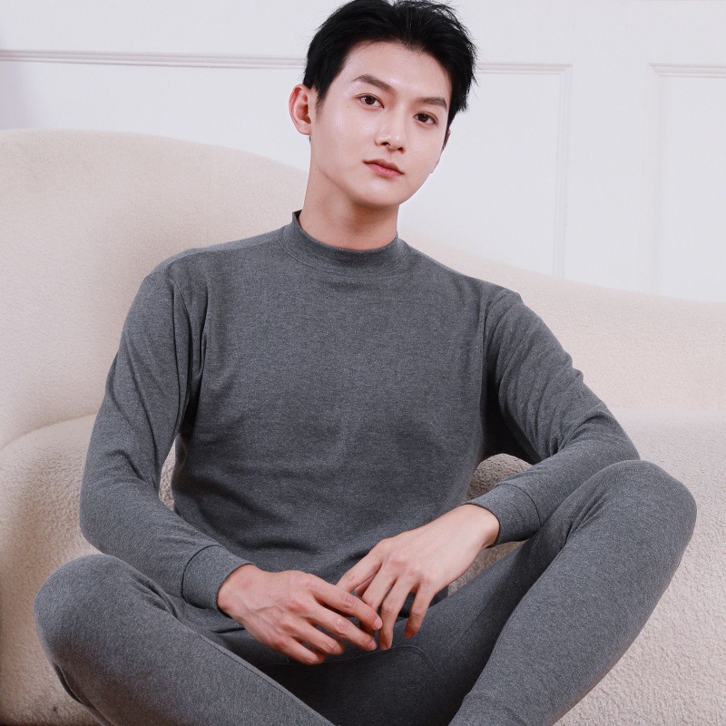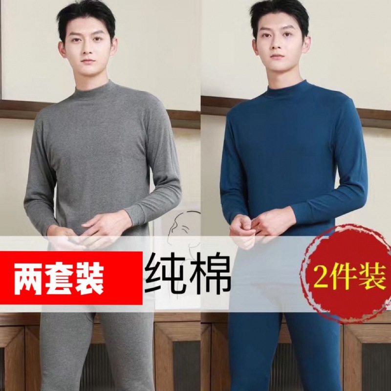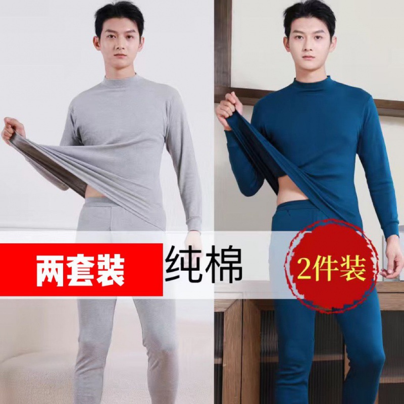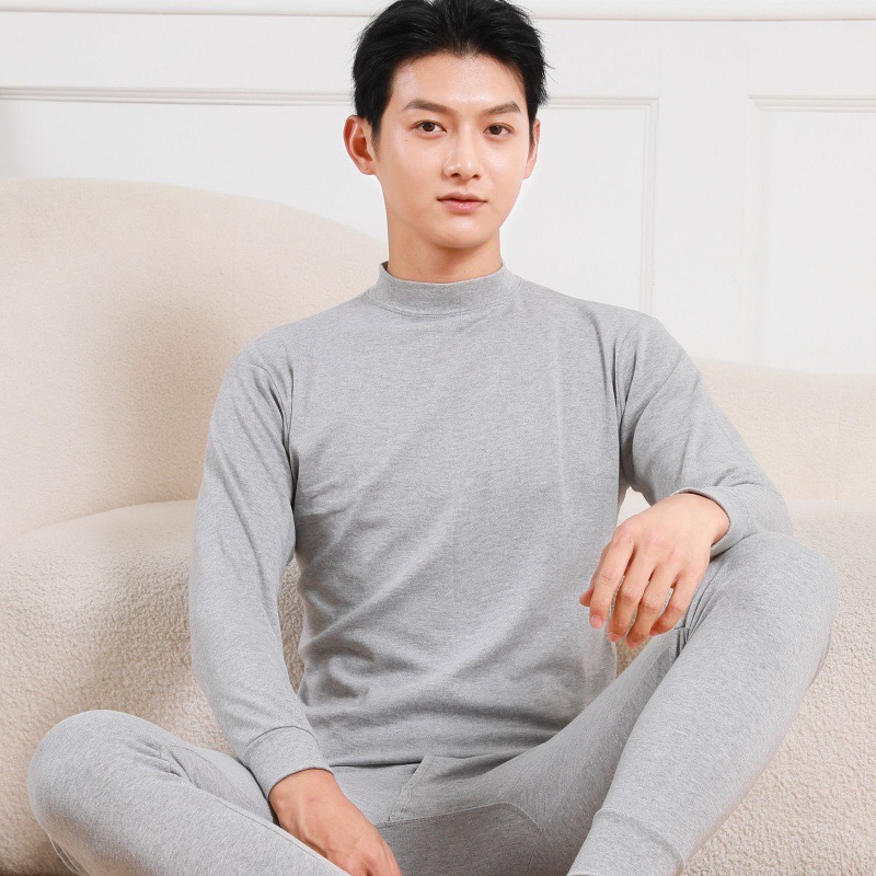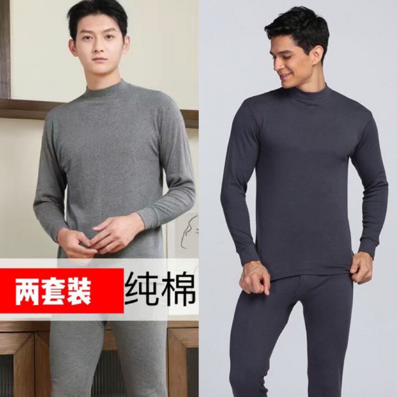Shanli Dadi [면 100% 세트] 중년 및 노인을 위한 남성용 가을 옷과 롱 존스 미드 하이 넥 얇은 열 속옷스토어 가기