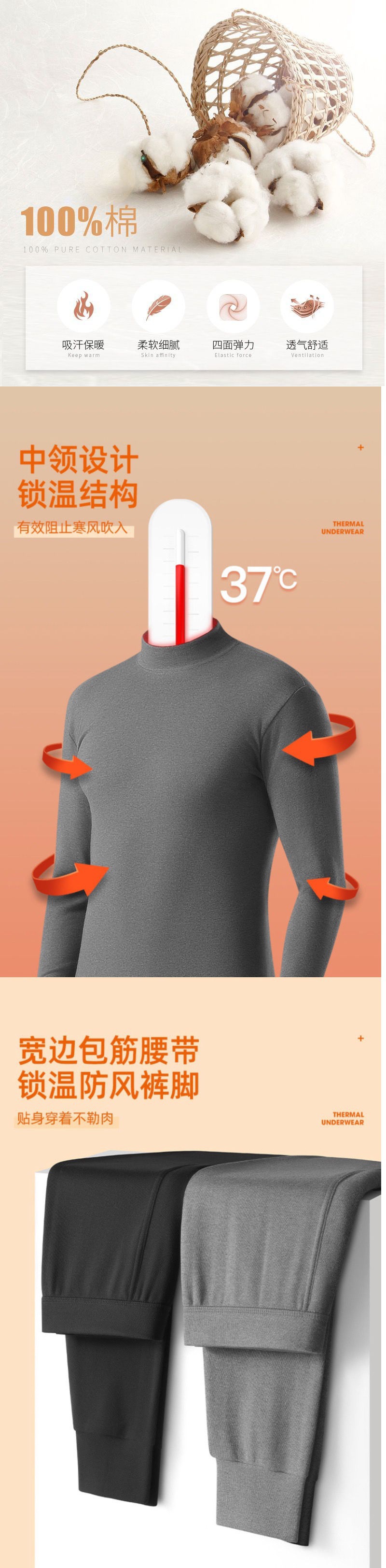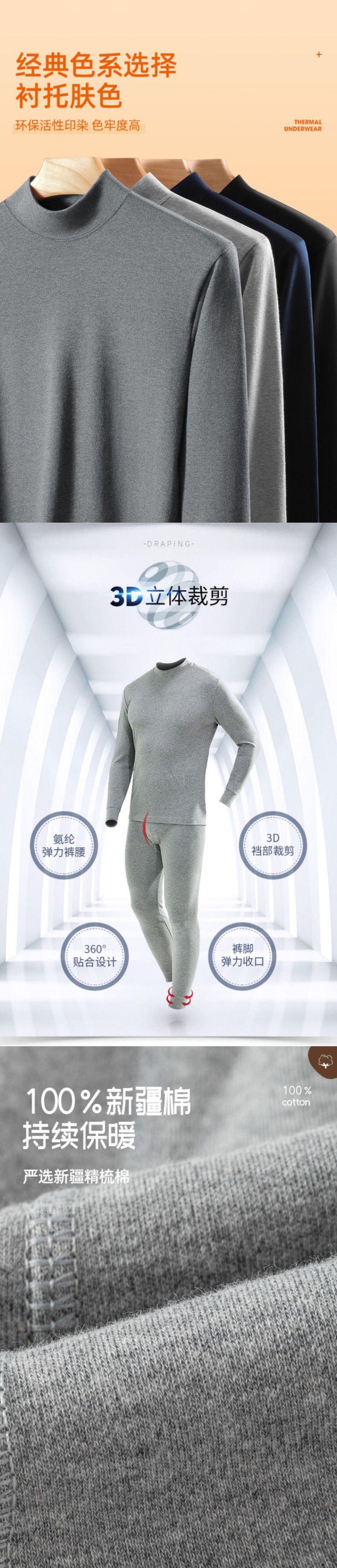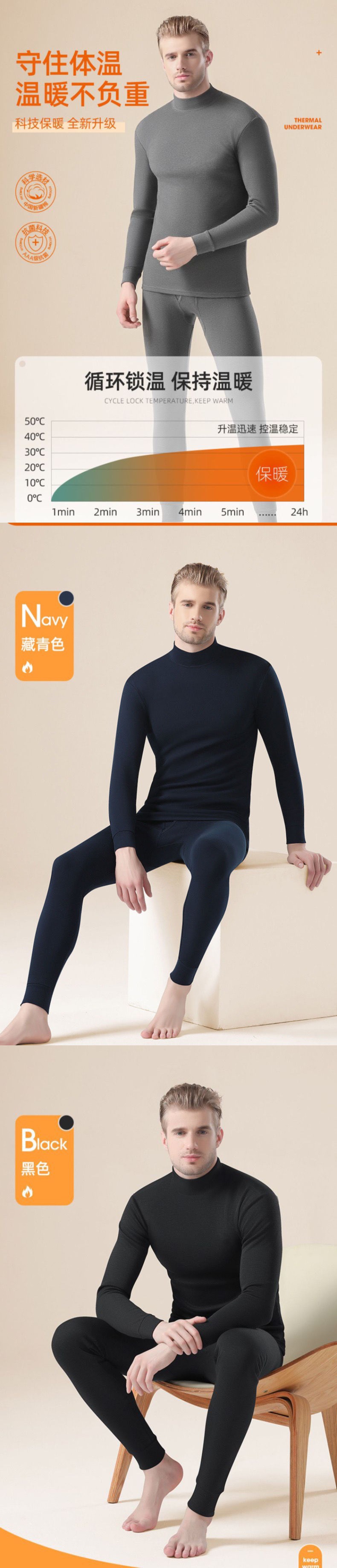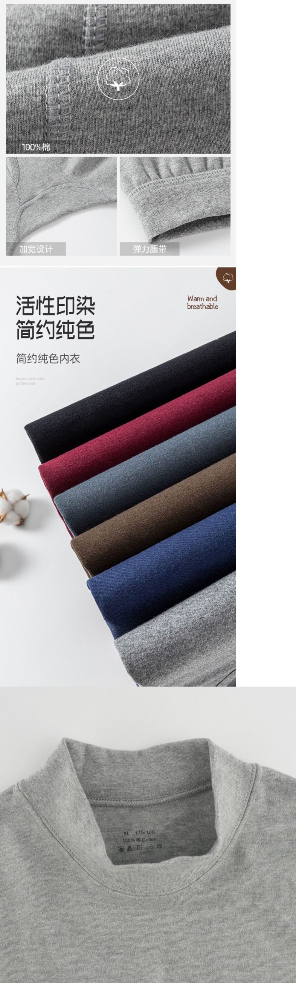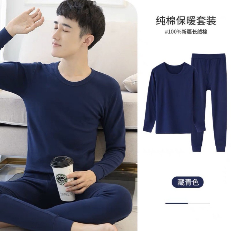 Shanli Dadi [면 100% 세트] 중년 및 노인을 위한 남성용 가을 옷과 롱 존스 미드 하이 넥 얇은 열 속옷스토어 가기