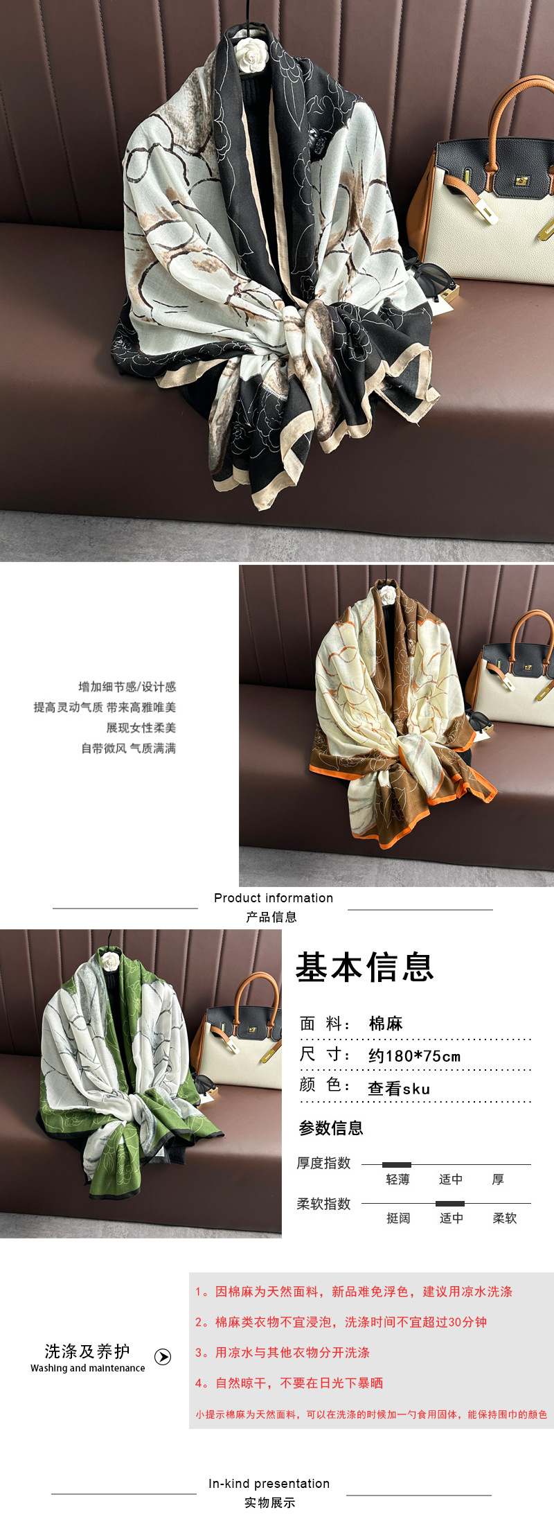 코튼 린넨 스카프 여성용 2023 새로운 백합 꽃 따뜻한 숄 봄과 가을 패션 서양 스타일 모든 매치 얇은 스카프 겨울스토어 가기