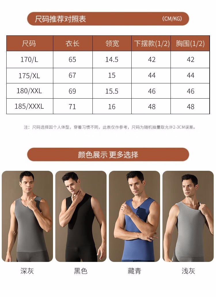 Longsha 남성용 원활한 열 조끼 가을과 겨울용 양면 샌딩 바닥 슬림핏 얇은 민소매 열 조끼