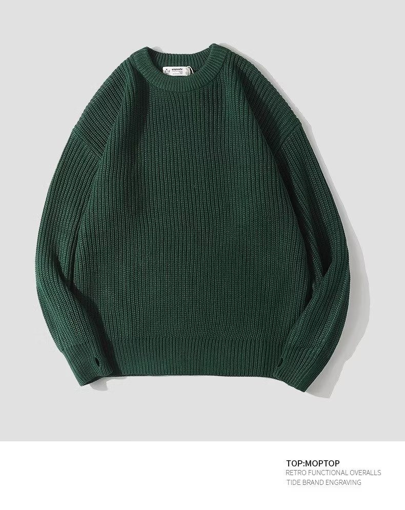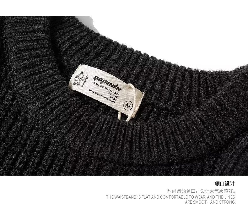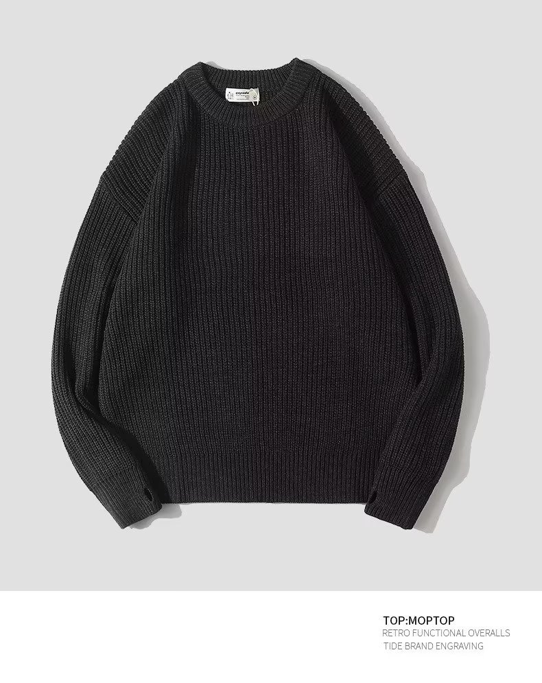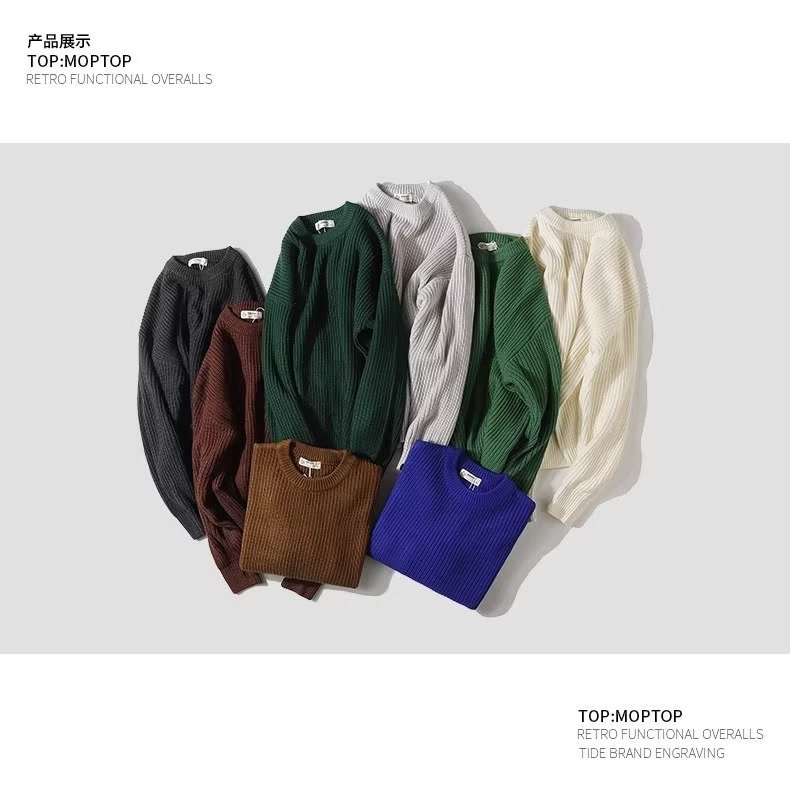 무거운 일본 스타일의 다재다능한 커플 가을과 겨울 남성의 따뜻한 단색 둥근 목 캐주얼 풀오버 스웨터 스웨터스토어 가기