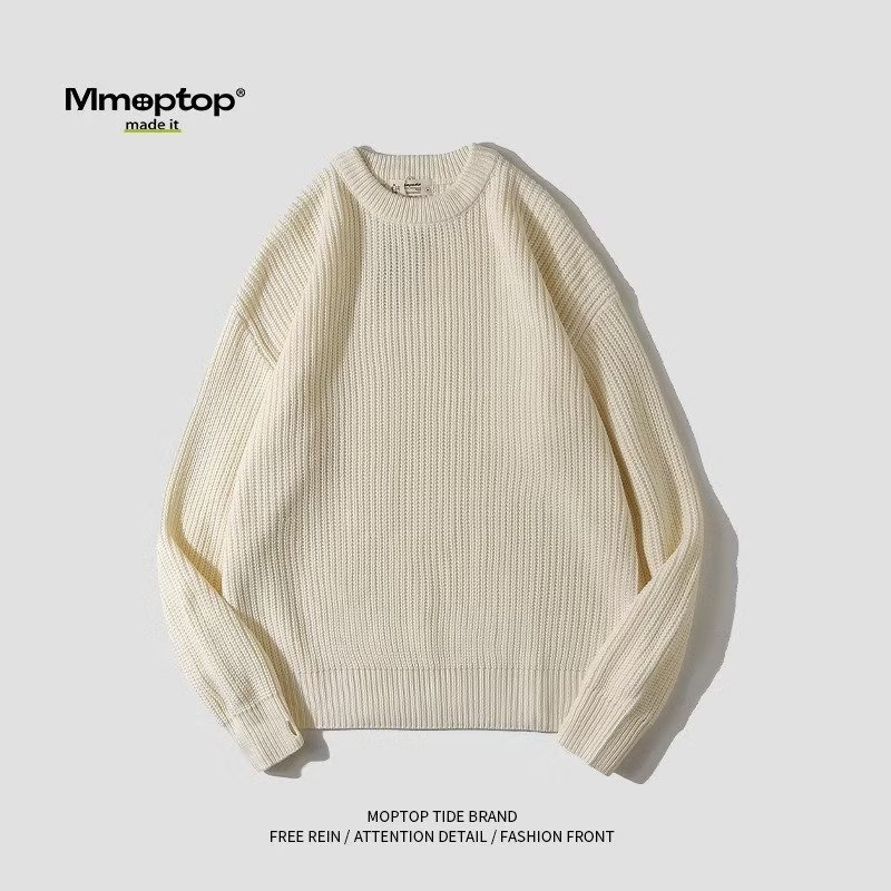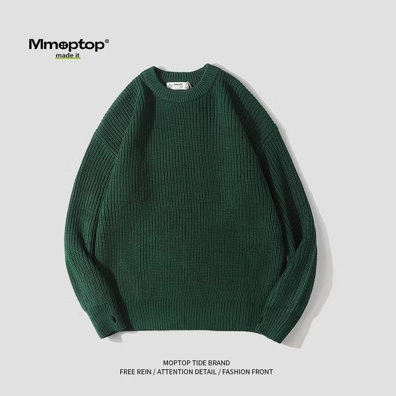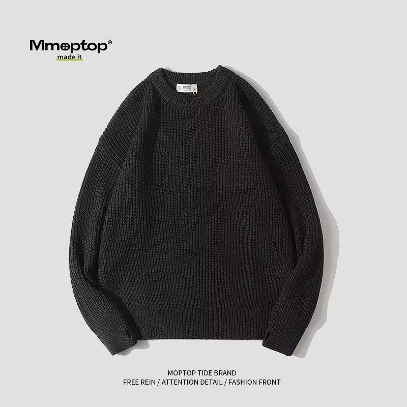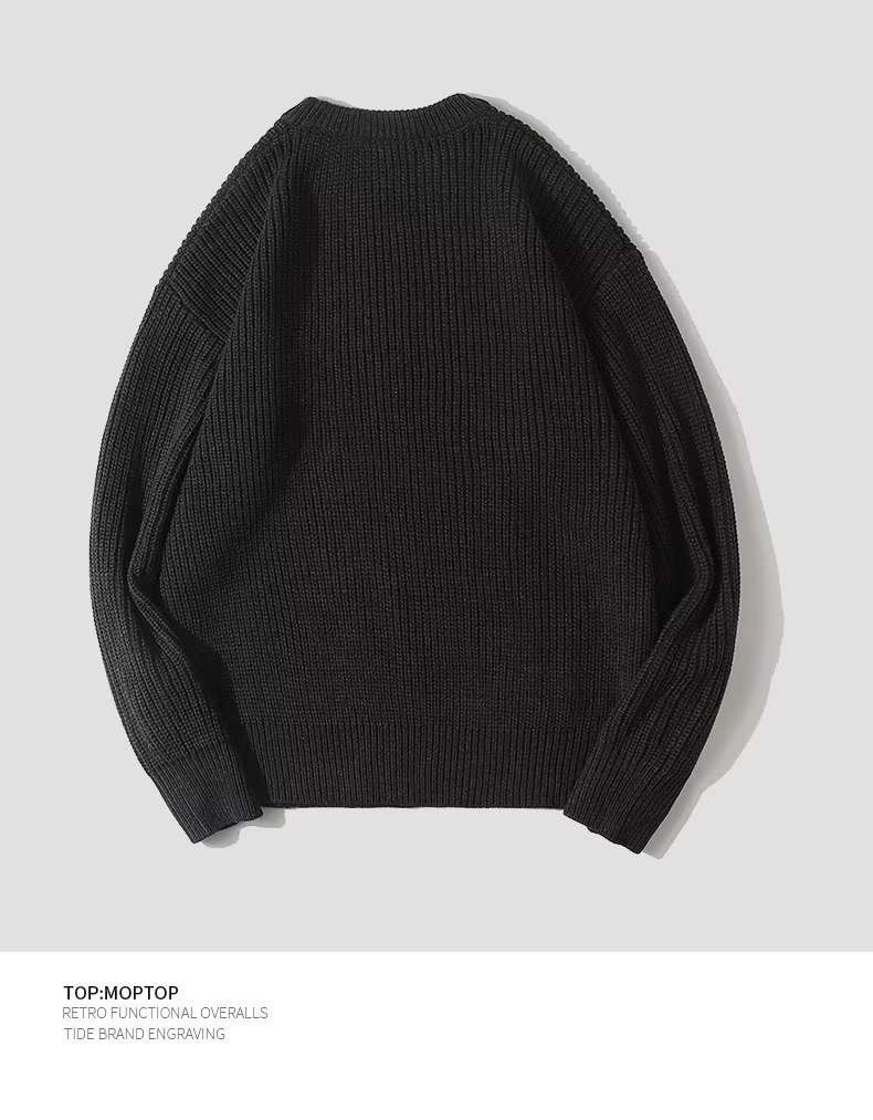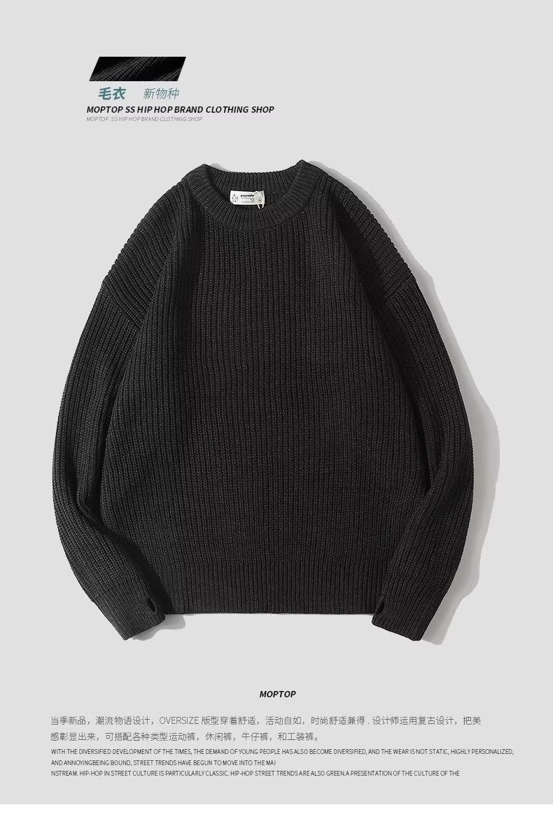무거운 일본 스타일의 다재다능한 커플 가을과 겨울 남성의 따뜻한 단색 둥근 목 캐주얼 풀오버 스웨터 스웨터스토어 가기