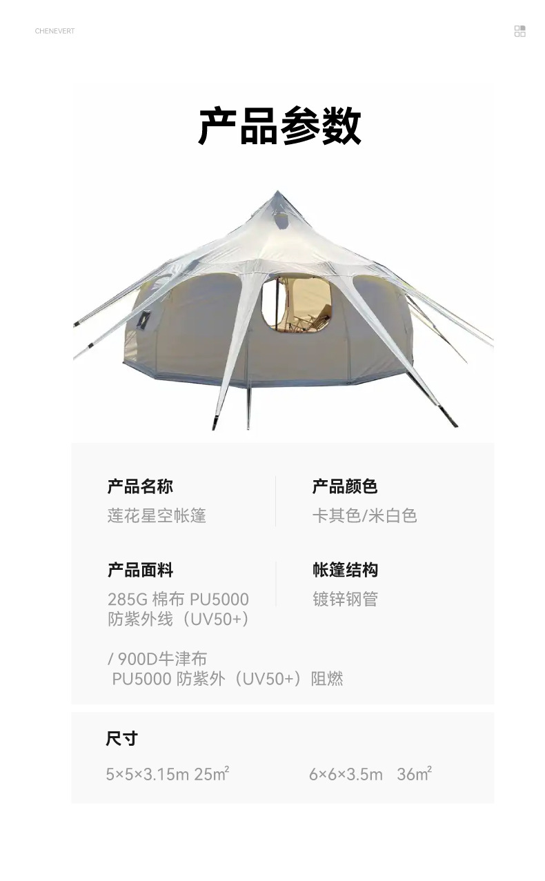 • 5m * 5m * 3.15m 별 하늘 탑 라이스 화이트 900D 옥스포드 천