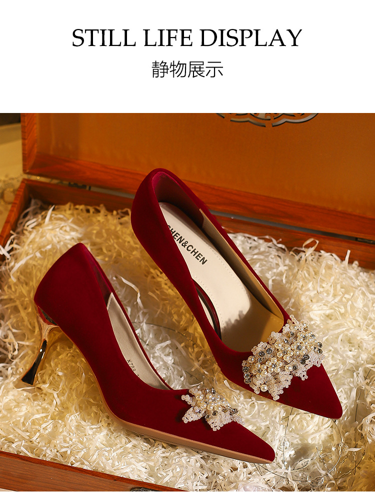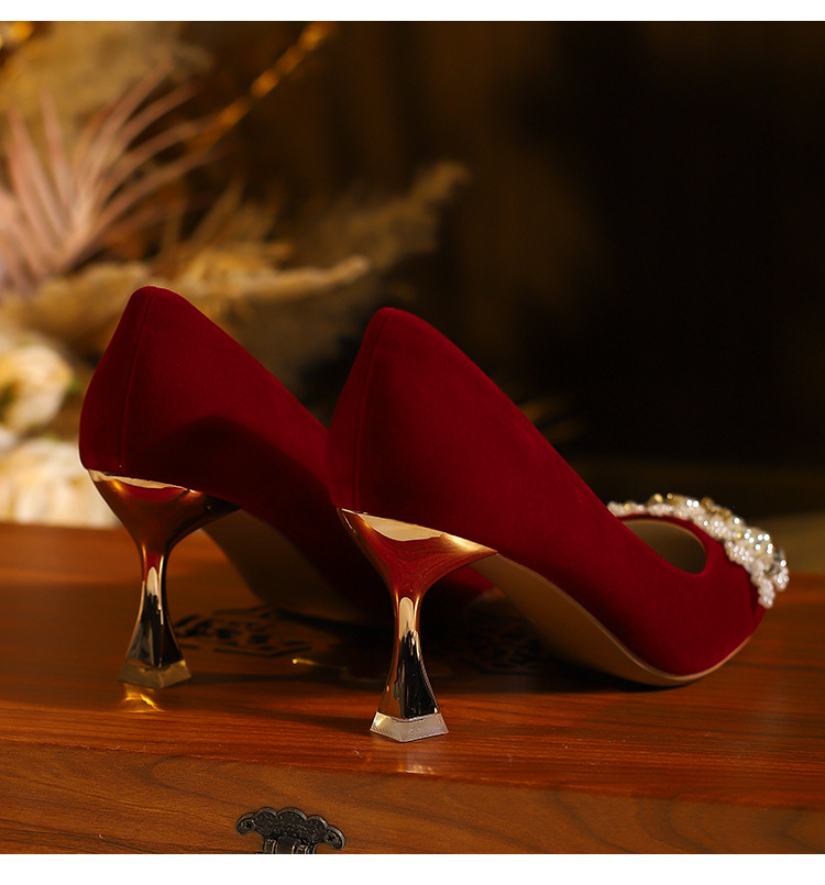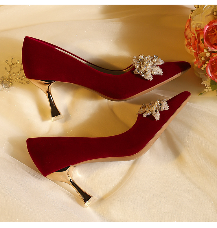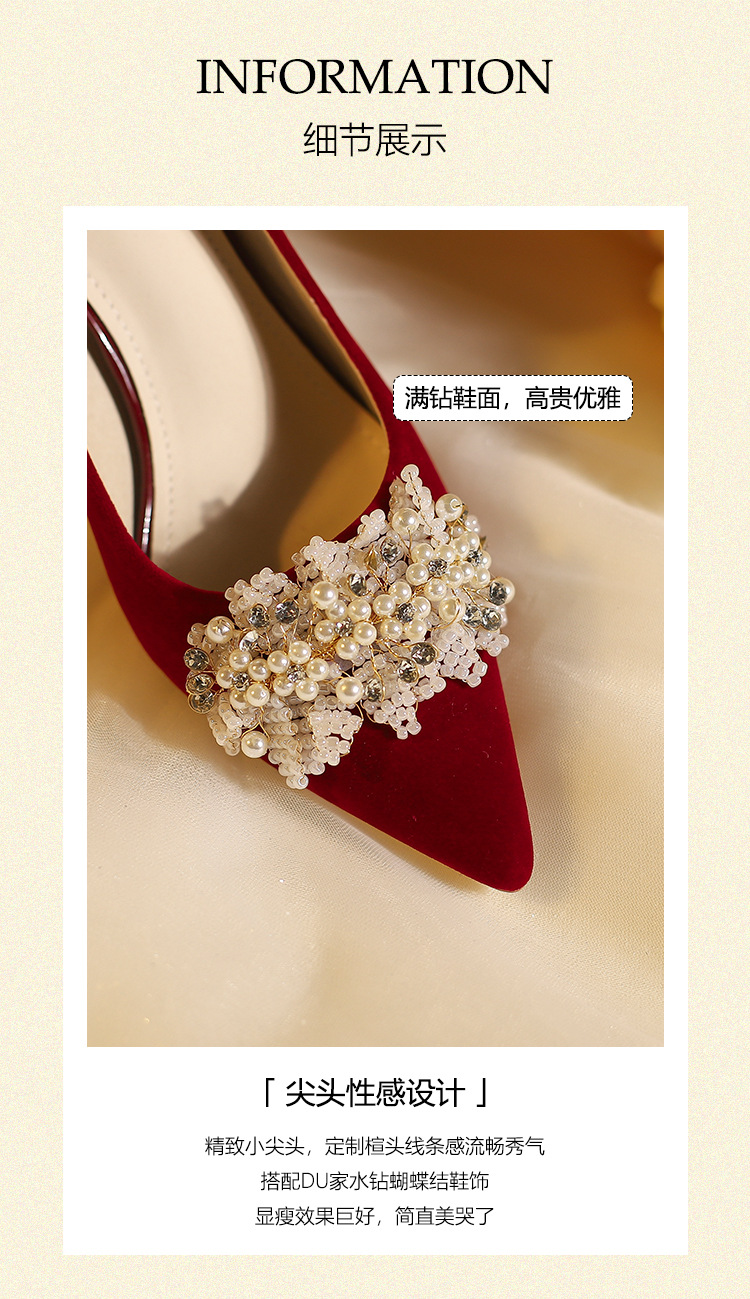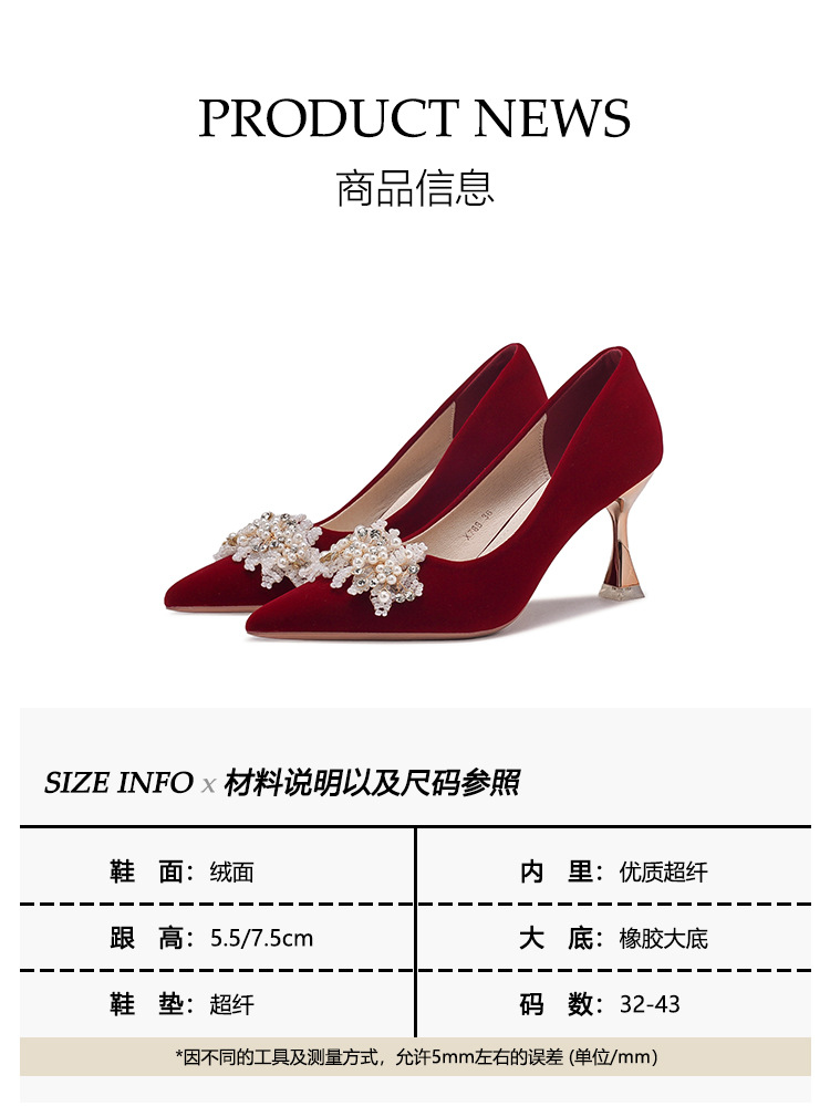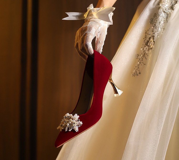 X788-18 빨간 웨딩 슈즈 Xiuhe 원피스 하이힐 여성용 얇은 굽 뾰족한 신발 피곤하지 않은 발 신부 신발 40-43