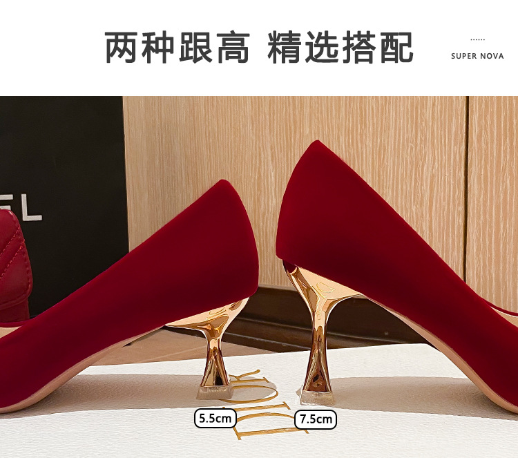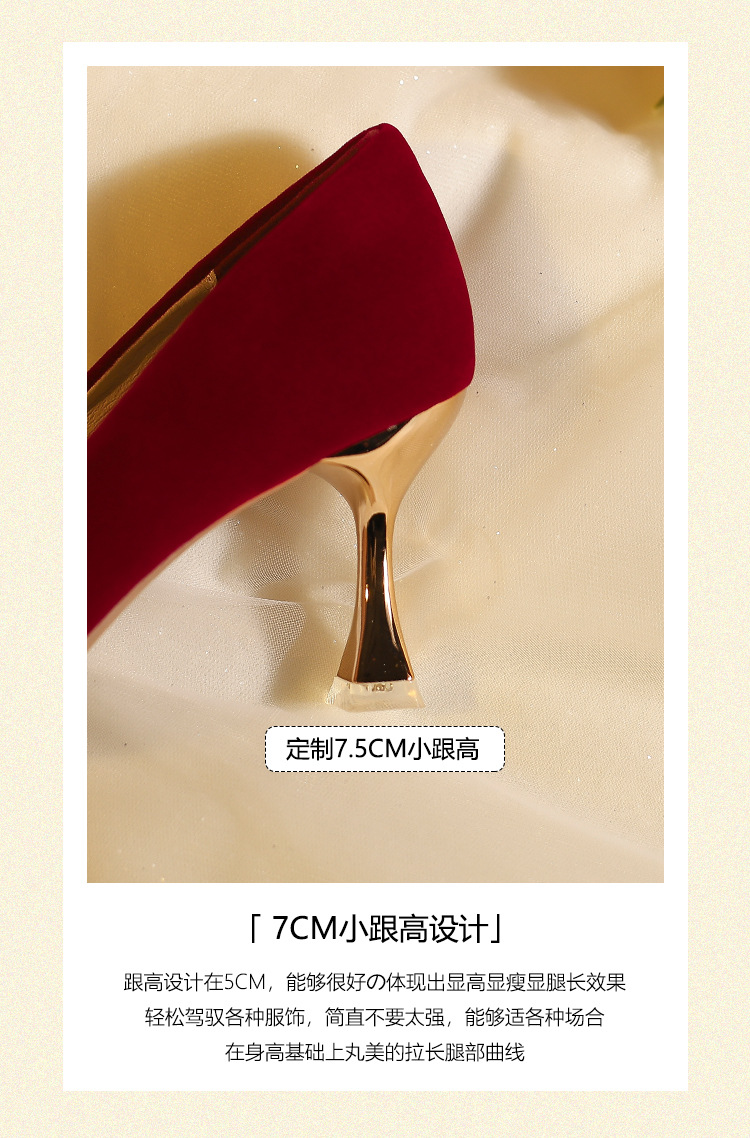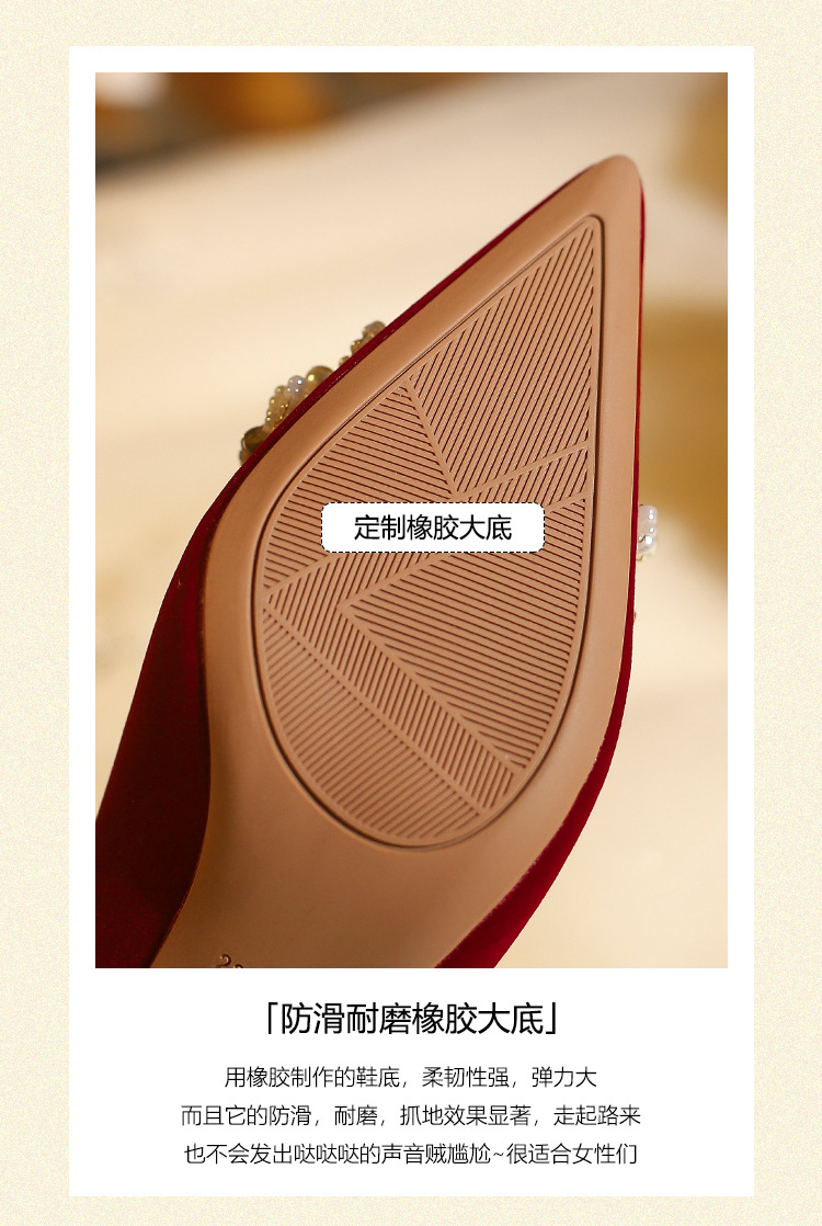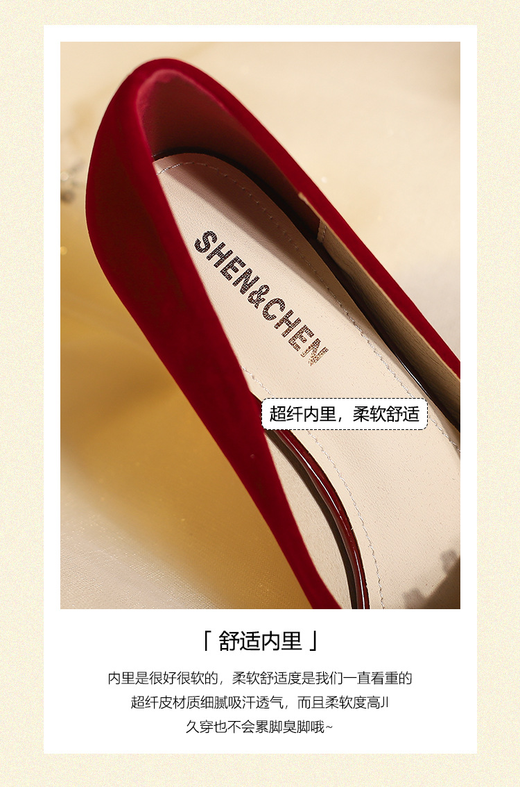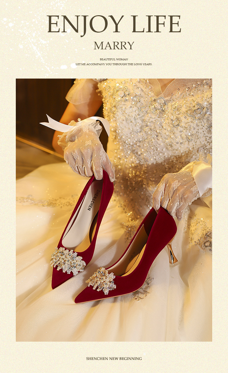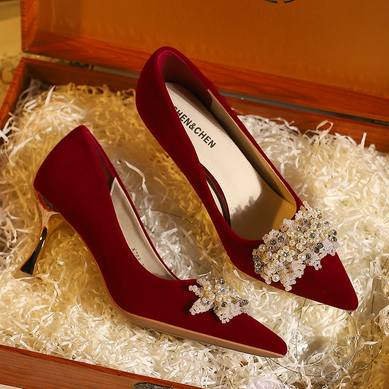 X788-18 빨간 웨딩 슈즈 Xiuhe 원피스 하이힐 여성용 얇은 굽 뾰족한 신발 피곤하지 않은 발 신부 신발 40-43
