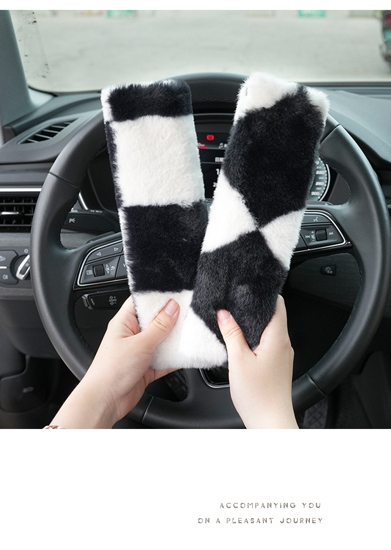 모조 토끼 모피 자동차 안전 벨트 어깨 패드 간단한 자동차 안전 벨트 보호 커버 플러시 편안한 자동차 어깨 패드