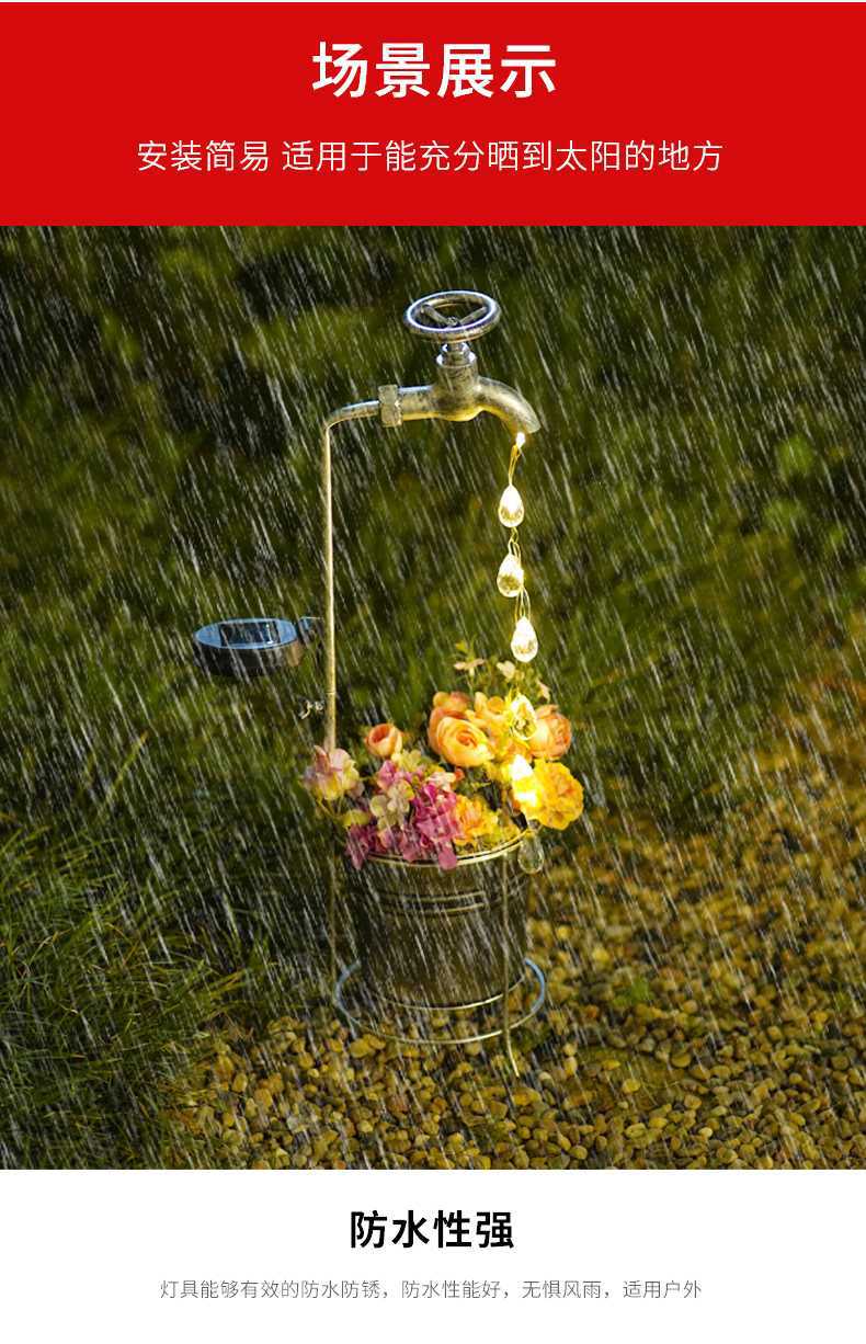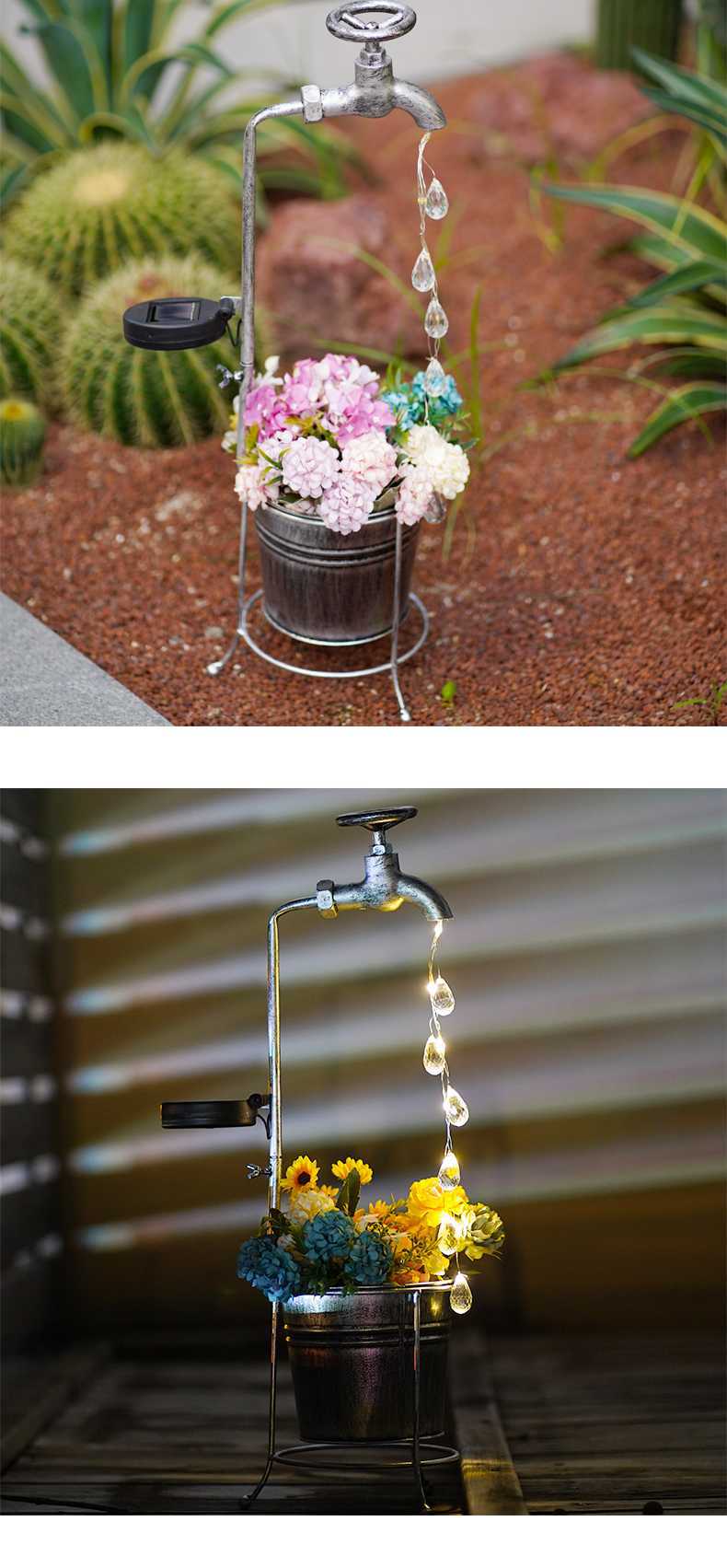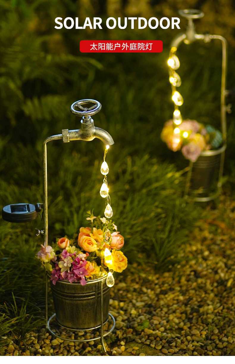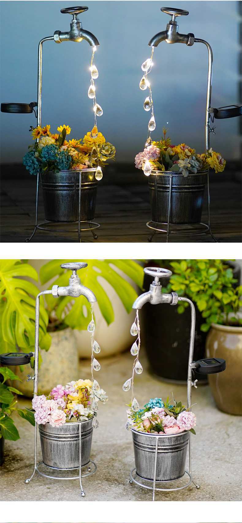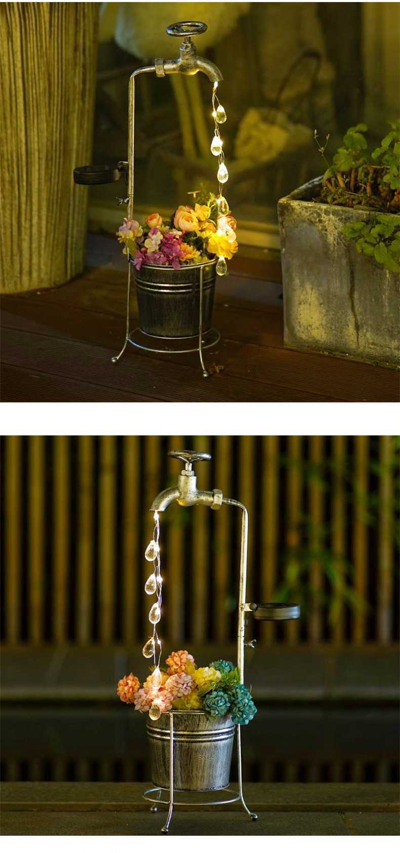 태양열 수도꼭지 빛 물방울 물 야외 풍경 조명 정원 장식 철 화분 정원 조명