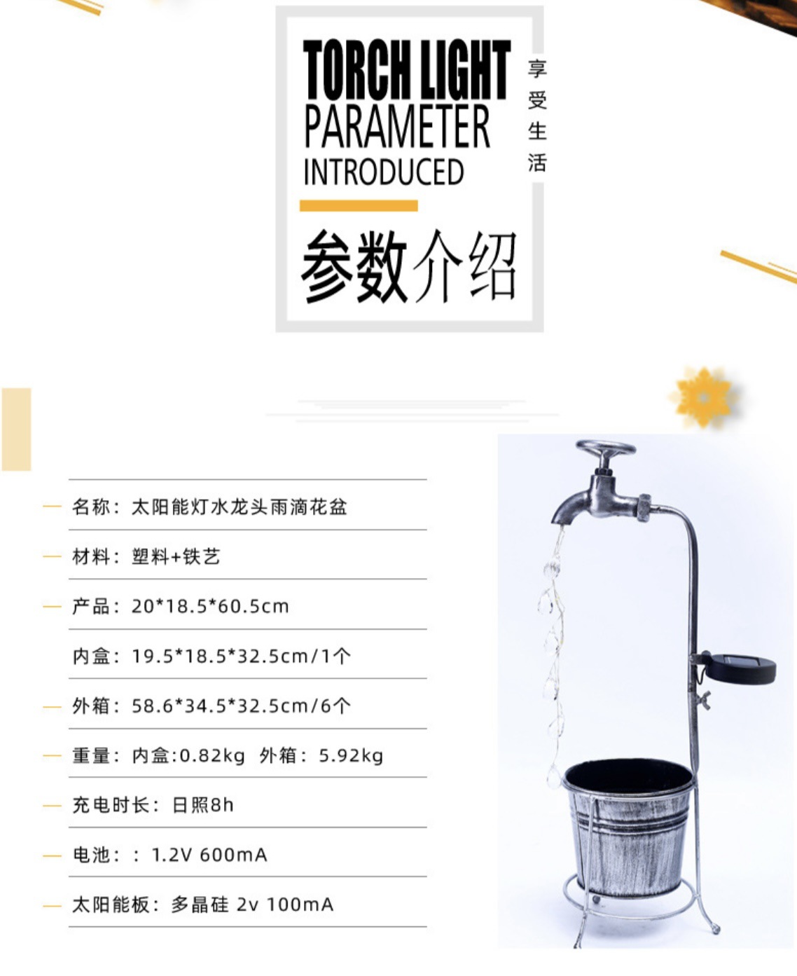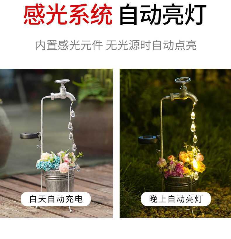 태양열 수도꼭지 빛 물방울 물 야외 풍경 조명 정원 장식 철 화분 정원 조명스토어 가기