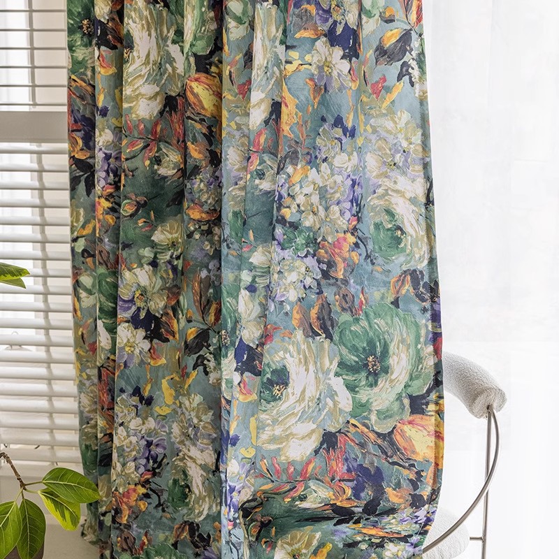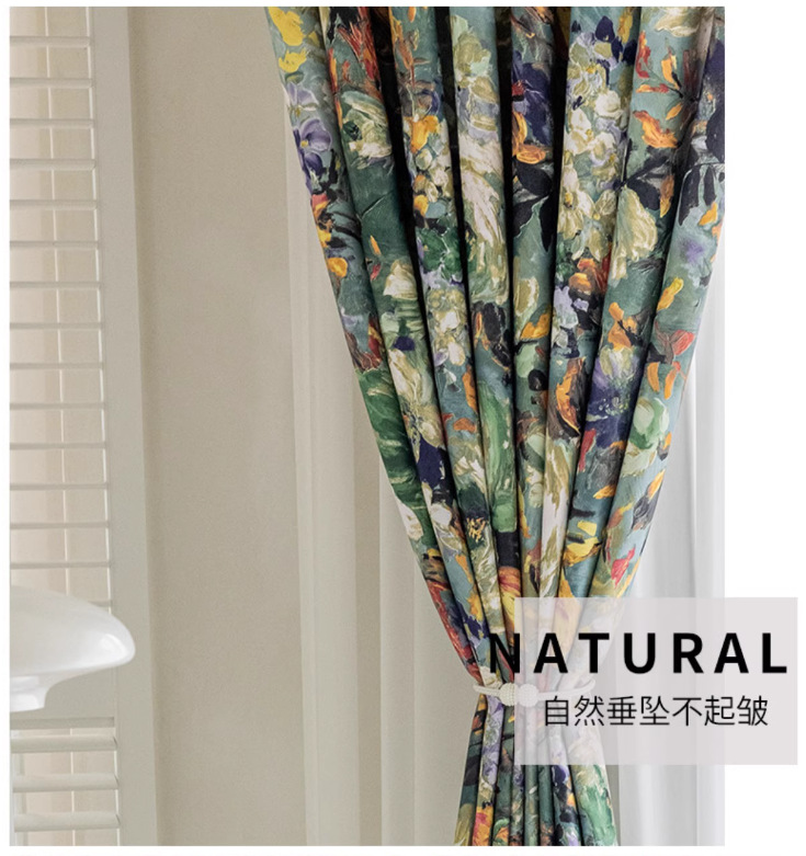 미국 복고풍 커튼 자외선 차단제 빛 럭셔리 높은 음영 폴리에스터 면 인쇄 거실 침실 목가적 스타일 추상 커튼스토어 가기