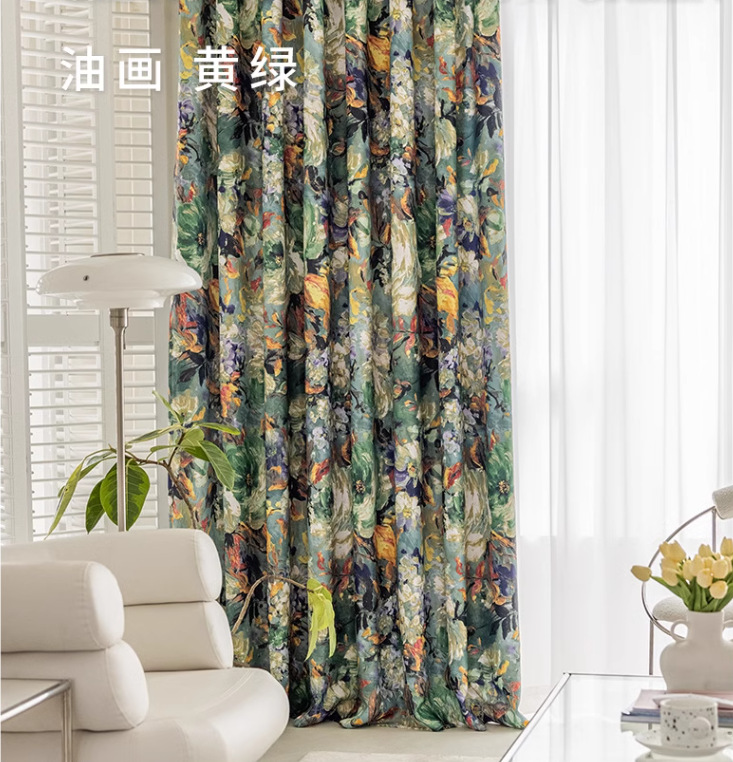 미국 복고풍 커튼 자외선 차단제 빛 럭셔리 높은 음영 폴리에스터 면 인쇄 거실 침실 목가적 스타일 추상 커튼