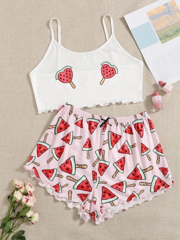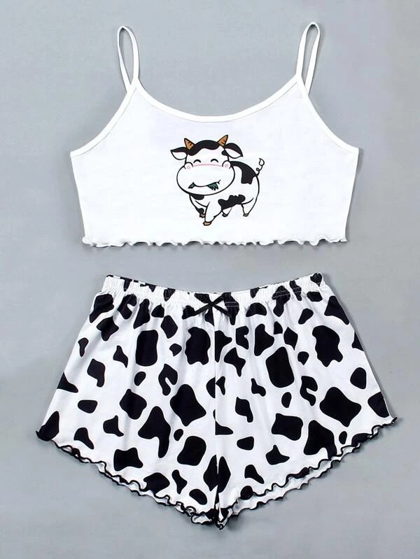 다른 패턴으로 인쇄 된 크로스 보더 재고 니트 조끼 멜빵 편안한 얇은 여성의 홈 잠옷 세트