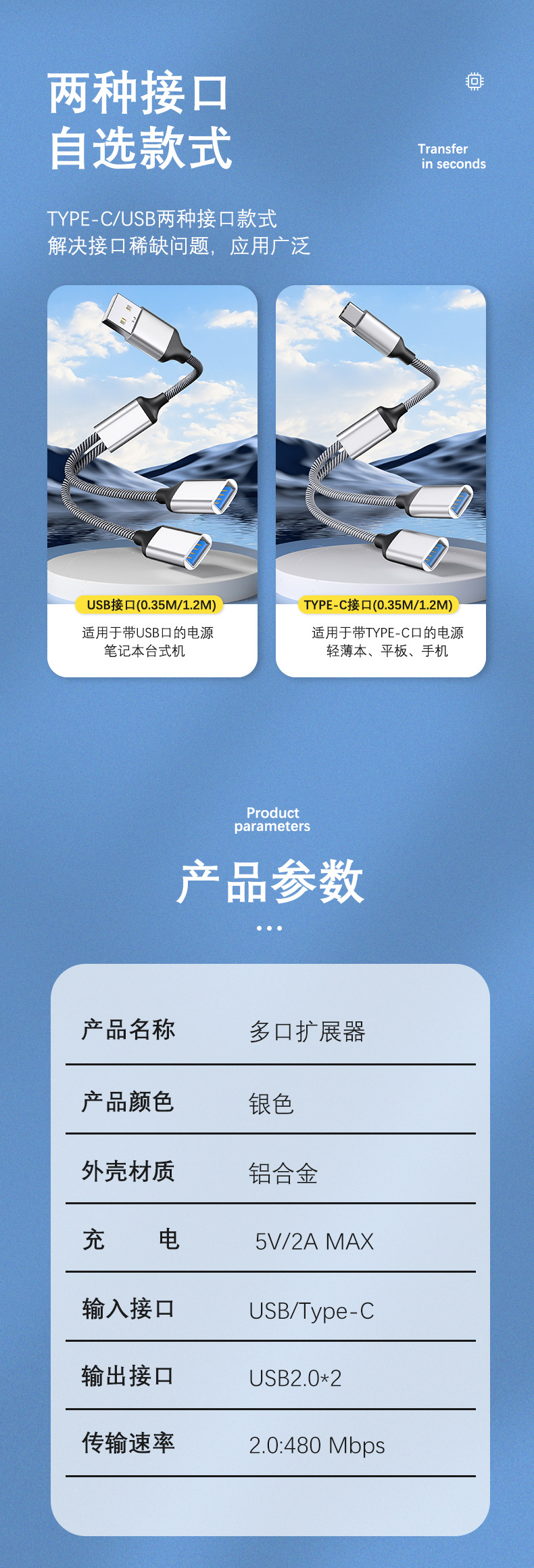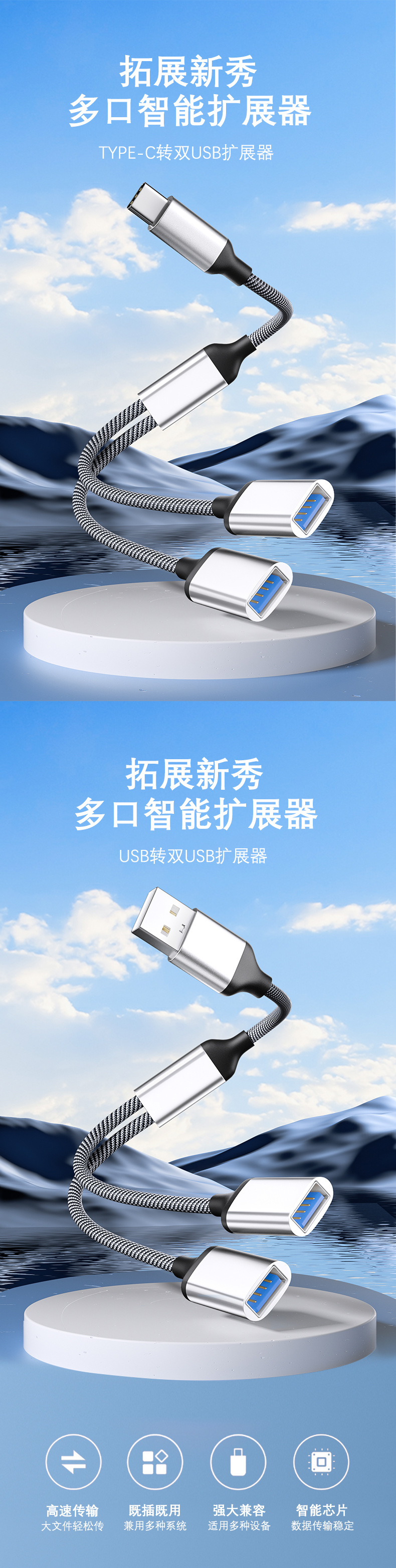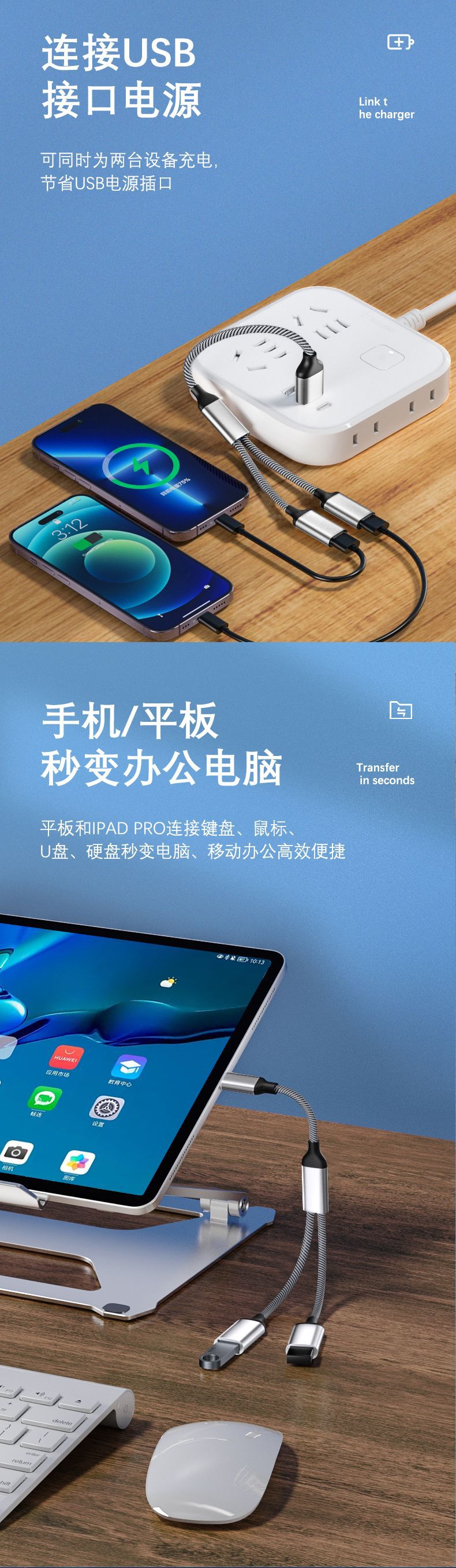 휴대 전화 태블릿 PC 용 듀얼 USB 익스텐더 OTG 일대일 확장 도크 카드 리더 유형