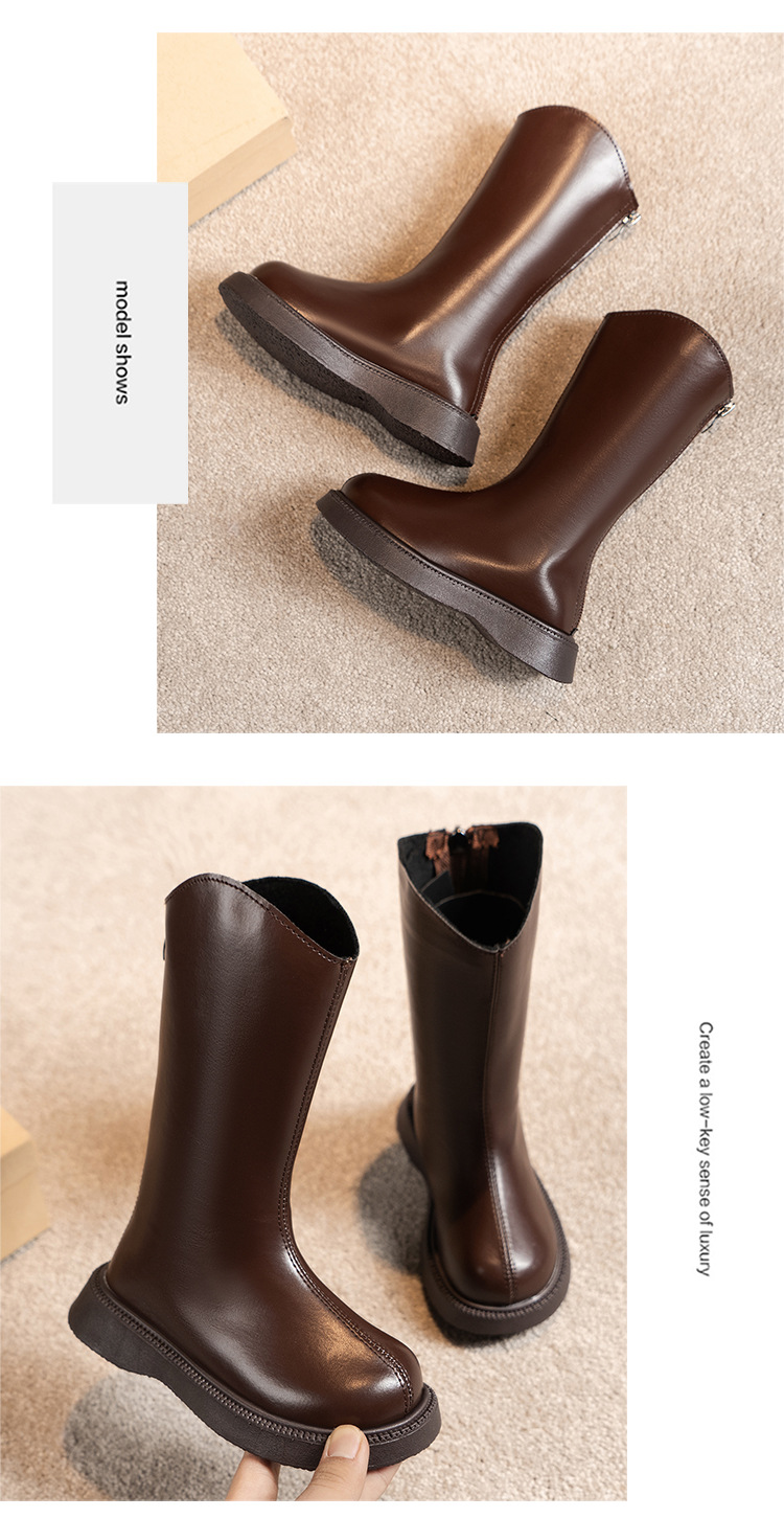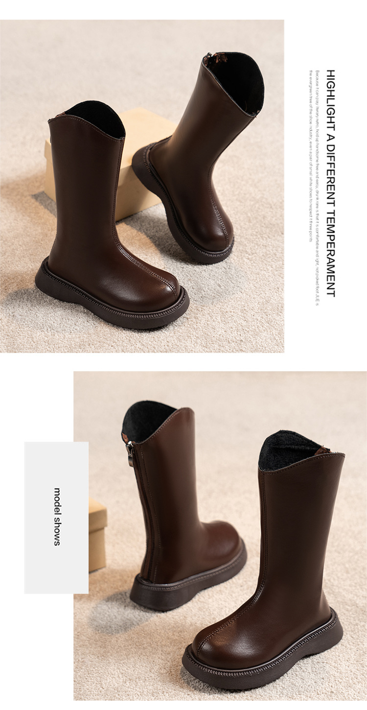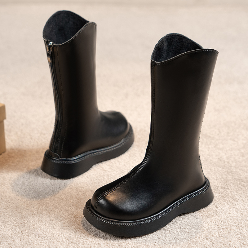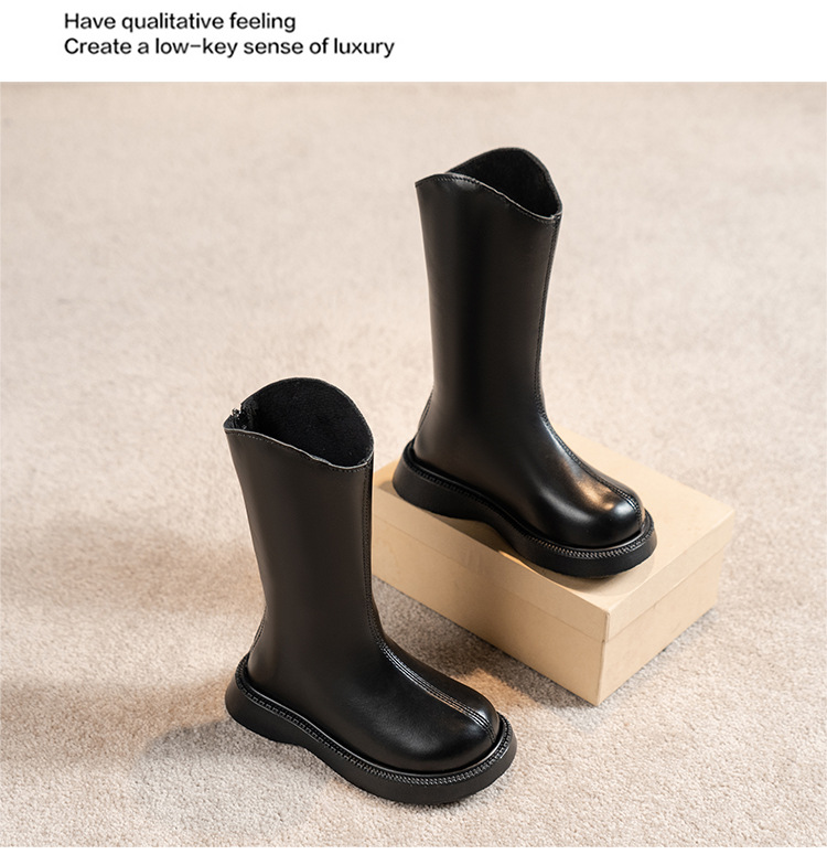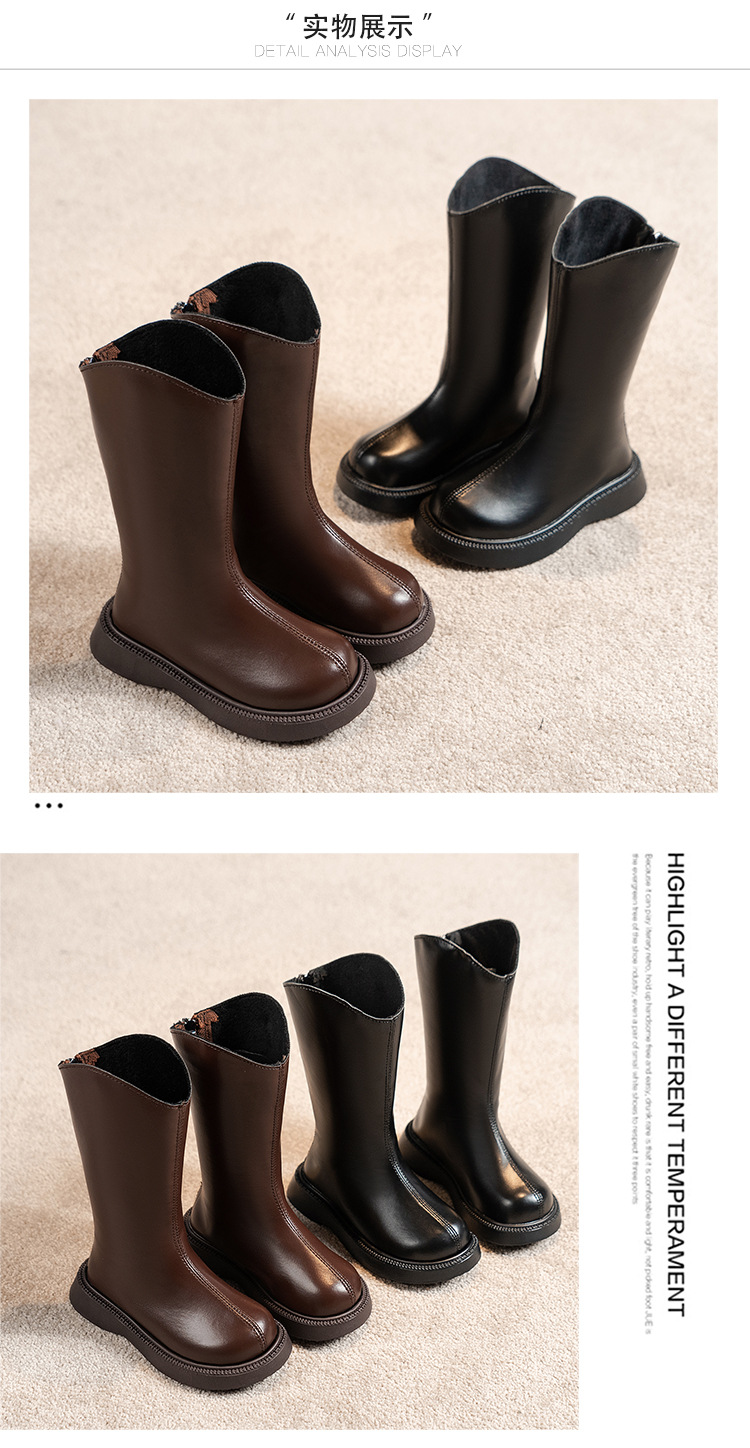 여아 신발 아동 롱 부츠 2023 겨울 신상품 가을과 겨울 아기 롱 배럴 여아 하이 배럴 2 면 가죽