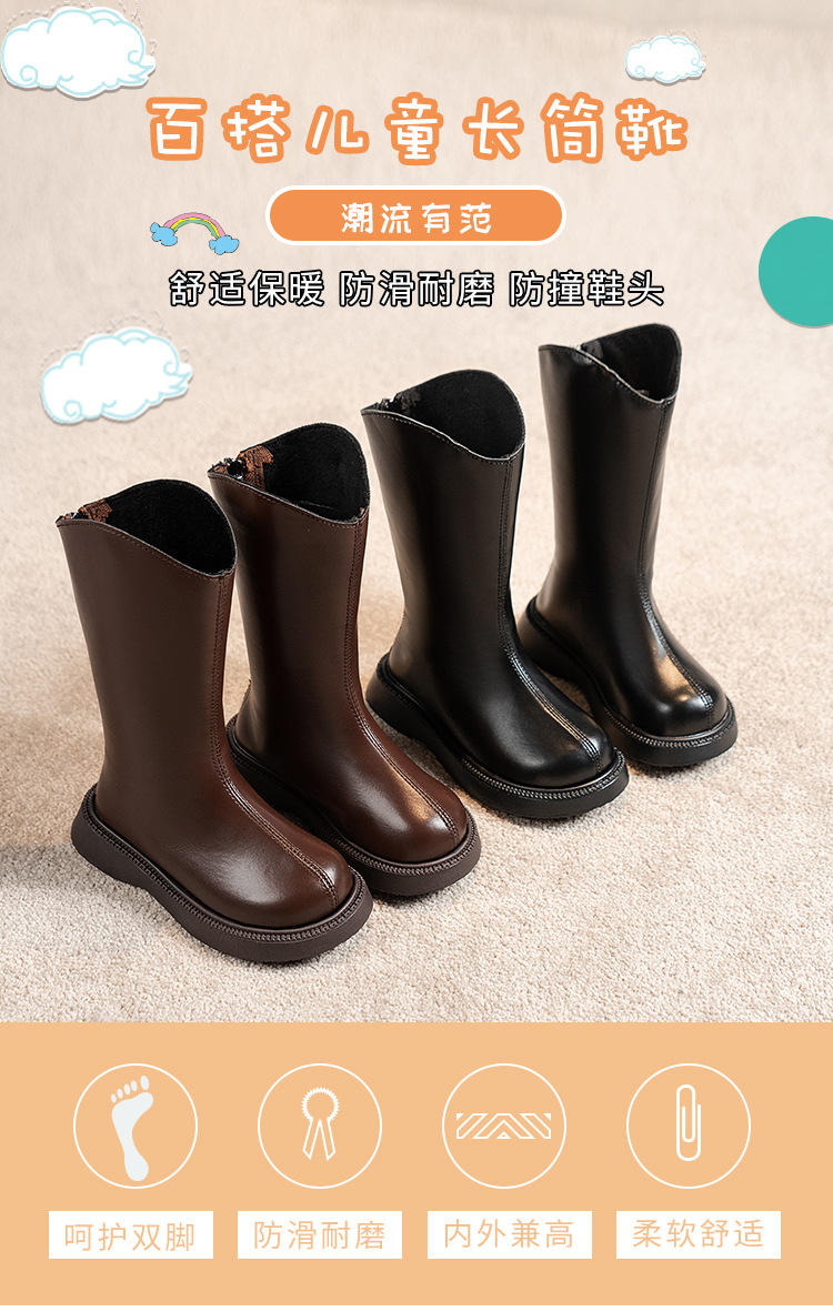 여아 신발 아동 롱 부츠 2023 겨울 신상품 가을과 겨울 아기 롱 배럴 여아 하이 배럴 2 면 가죽스토어 가기