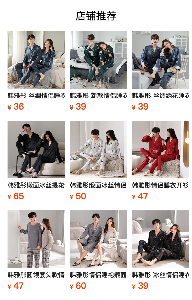 한 야통 커플 잠옷 새틴 아이스 실크 봄과 가을 가정복 남성용 잠옷 반바지 여성용 잠옷 슬립 스커트 가슴 패드스토어 가기