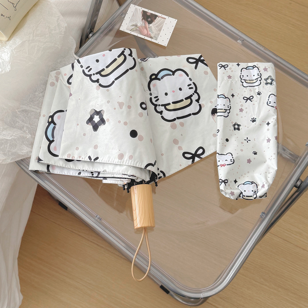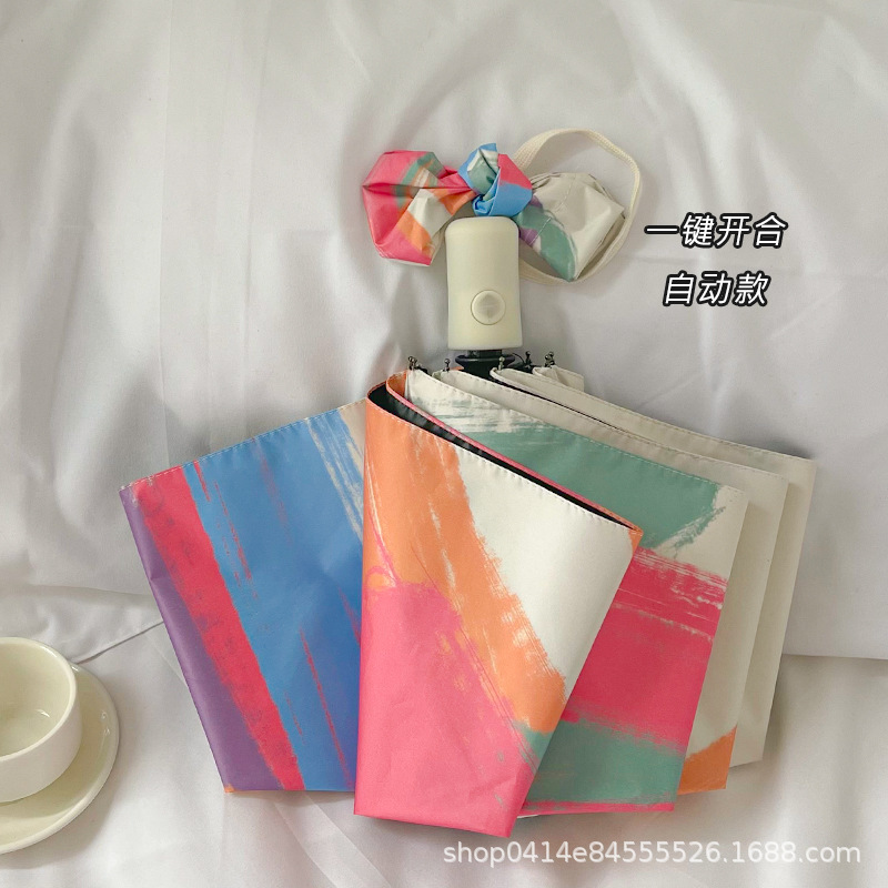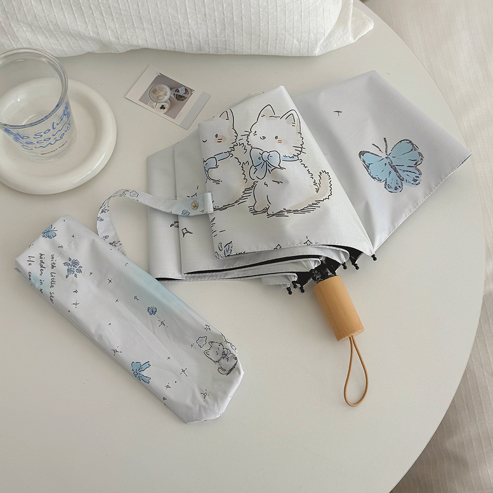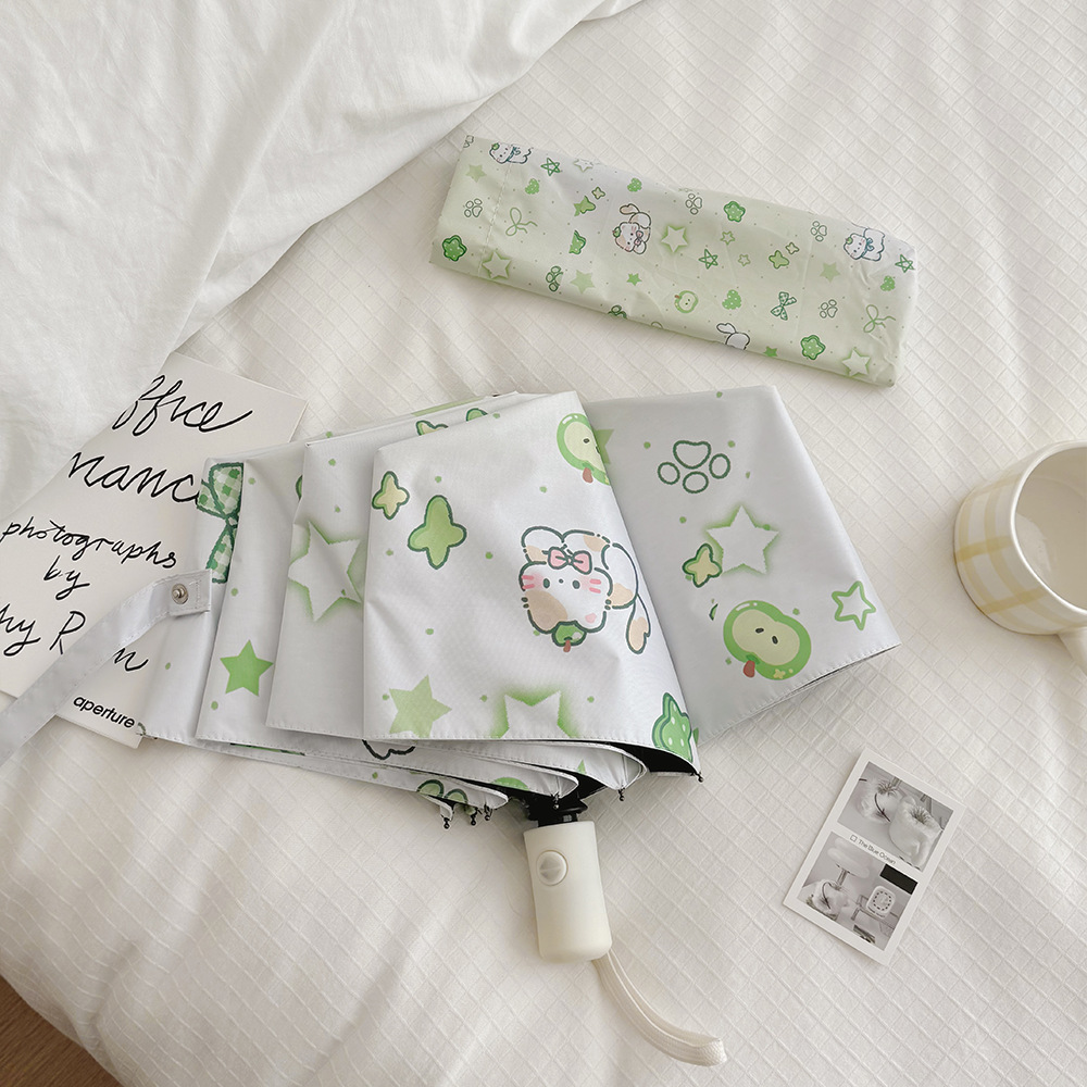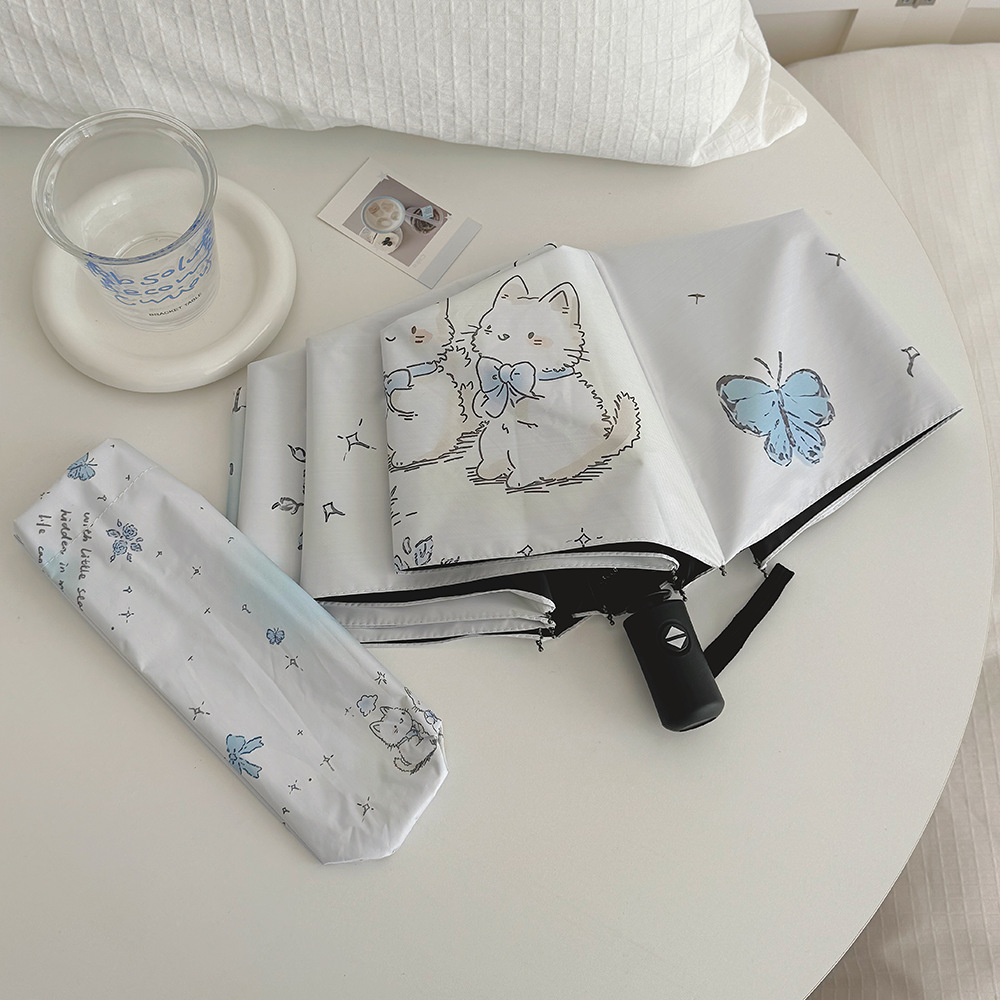 플라잉 러브 틈새 디자인 맑고 비오는 이중 목적 태양 우산 접이식 자동 태양 보호 UV 보호 블랙 고무 차양스토어 가기