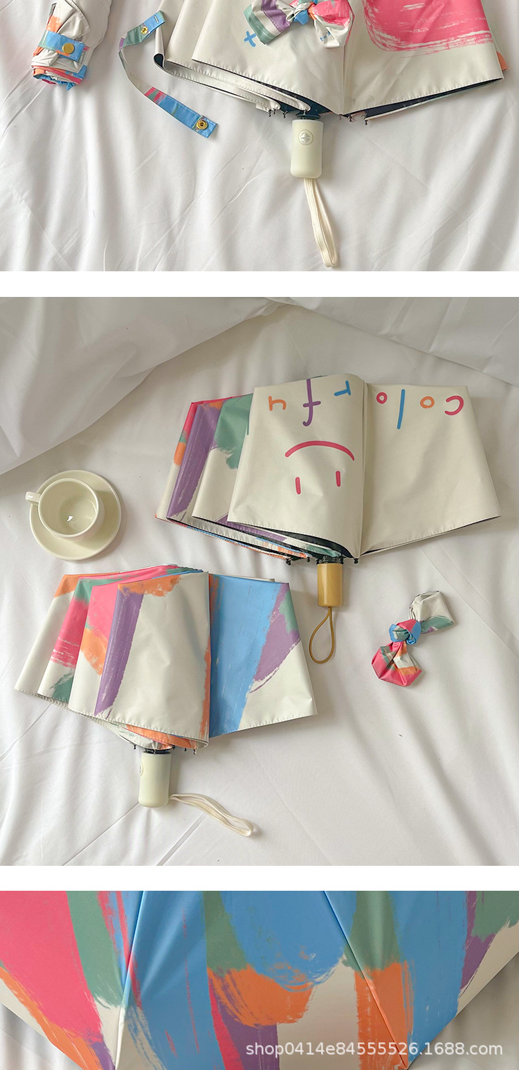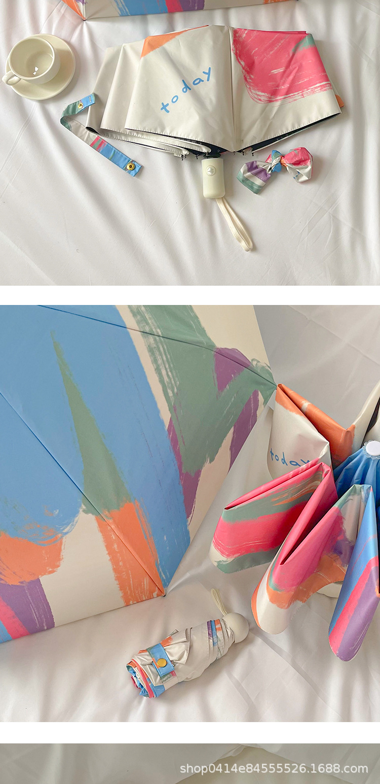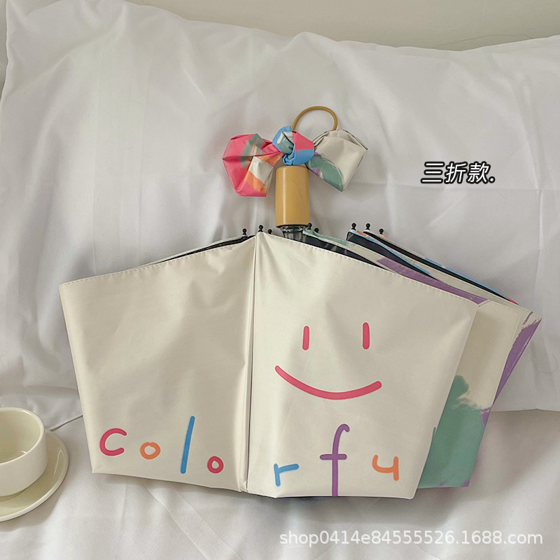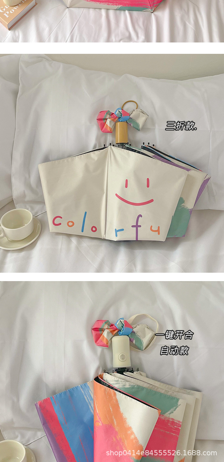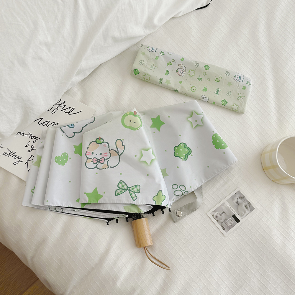 플라잉 러브 틈새 디자인 맑고 비오는 이중 목적 태양 우산 접이식 자동 태양 보호 UV 보호 블랙 고무 차양스토어 가기
