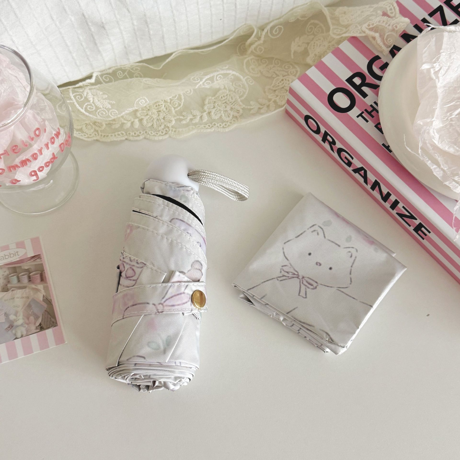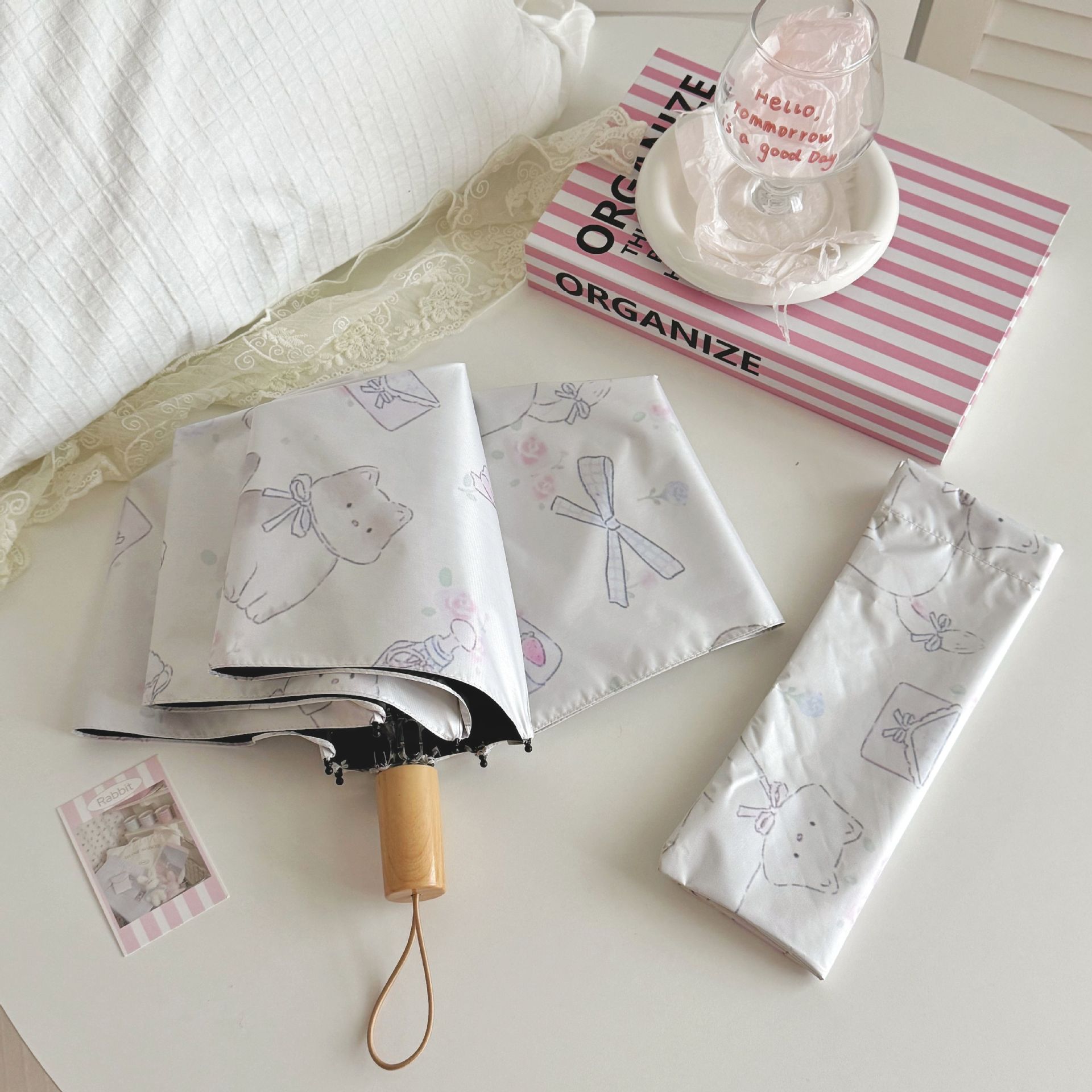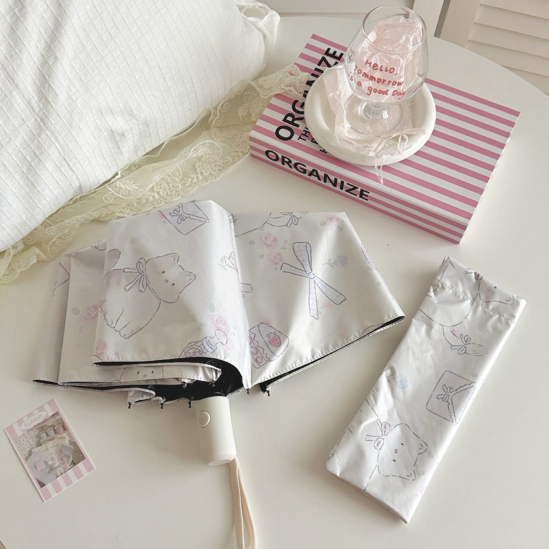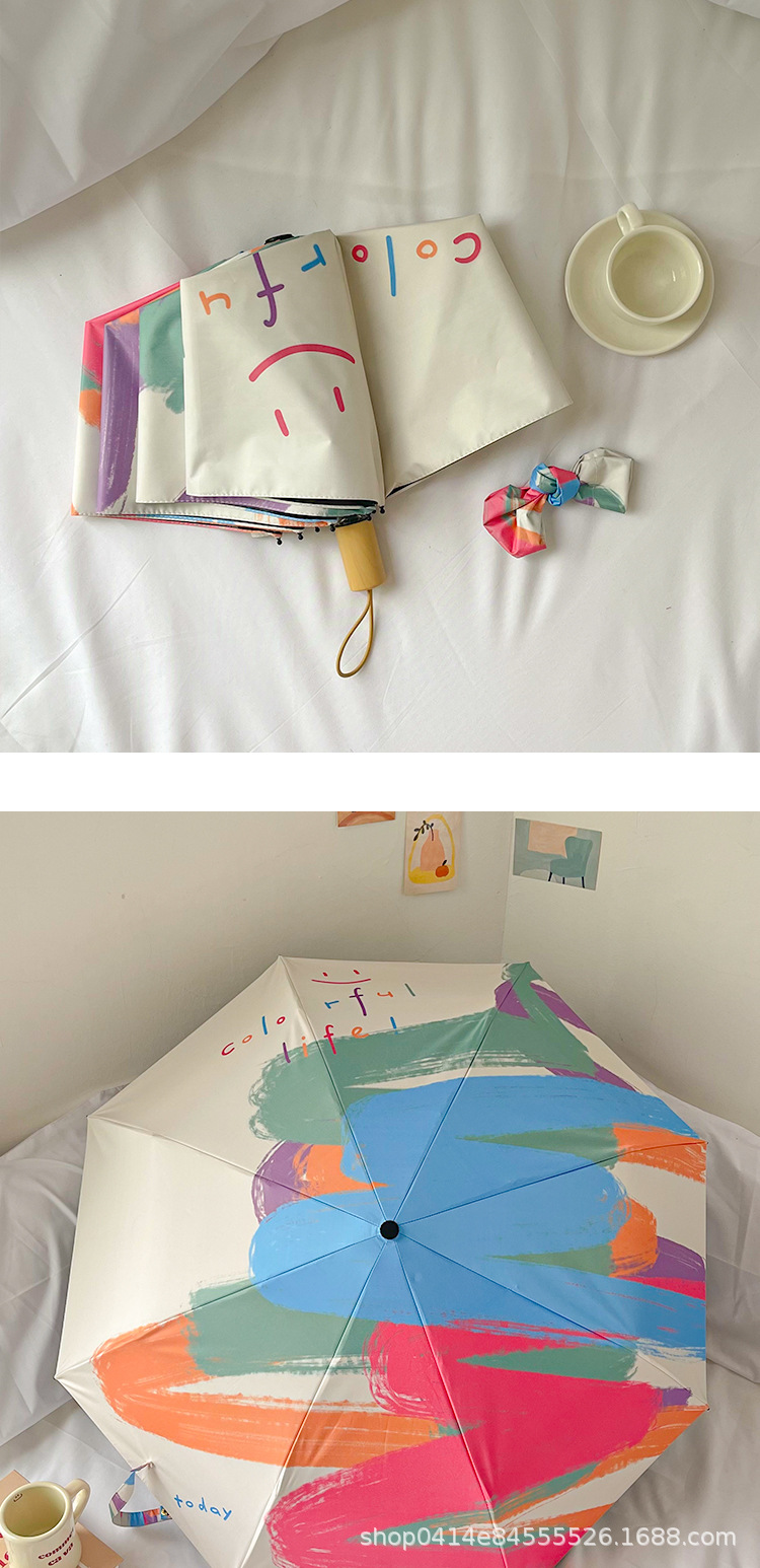 플라잉 러브 틈새 디자인 맑고 비오는 이중 목적 태양 우산 접이식 자동 태양 보호 UV 보호 블랙 고무 차양스토어 가기