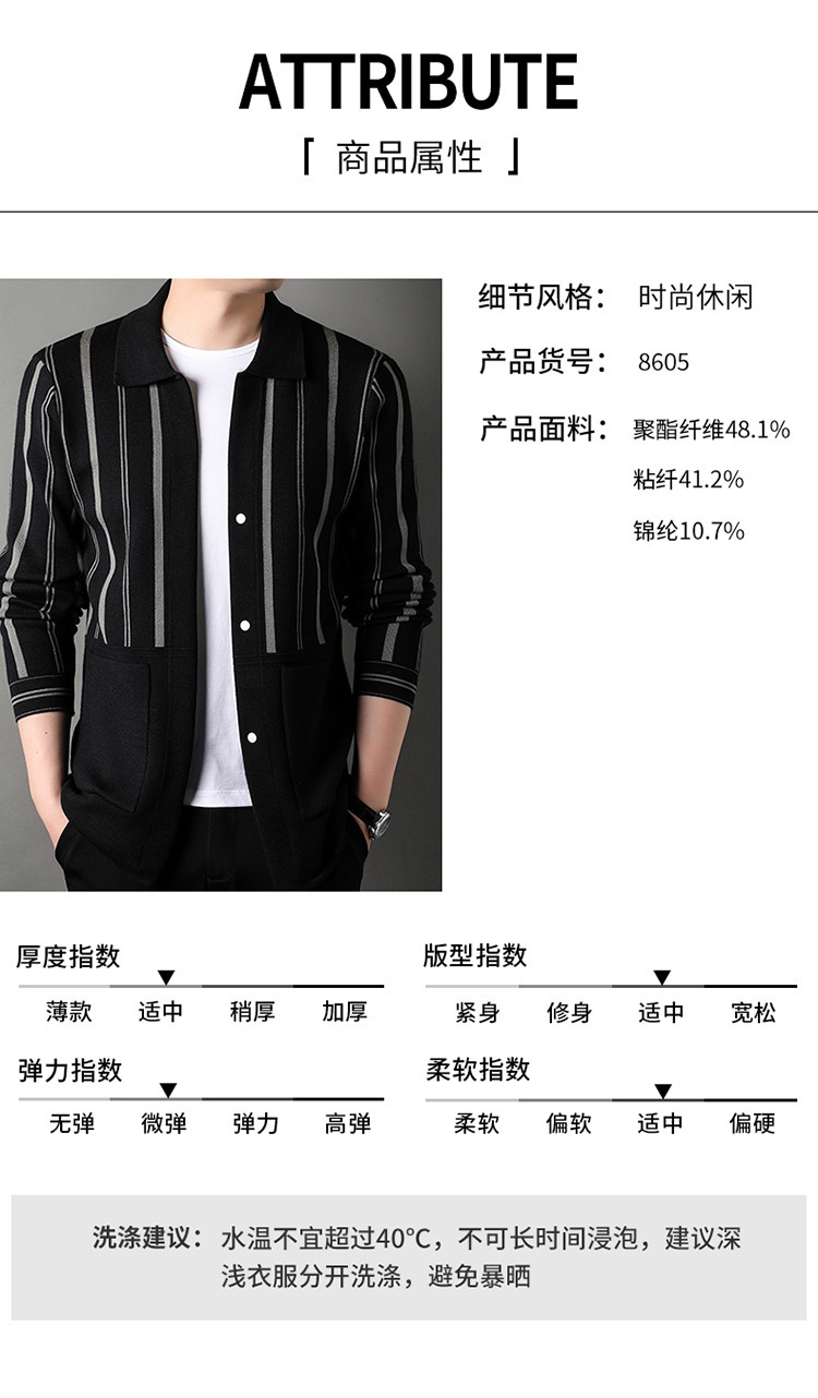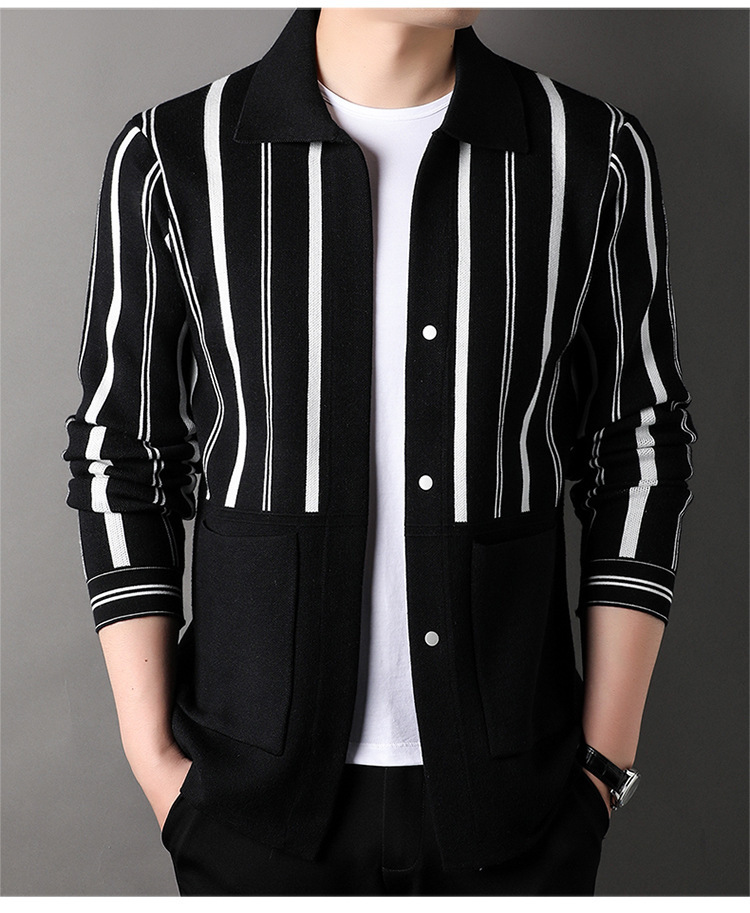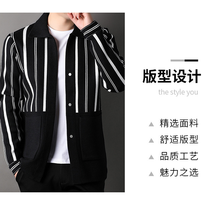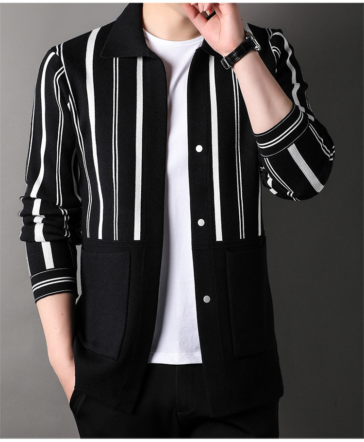 남성용 청년 세로 줄무늬 니트 가디건 2025 봄 가을 패션 트렌드 편안하고 심플한 따뜻한 스웨터