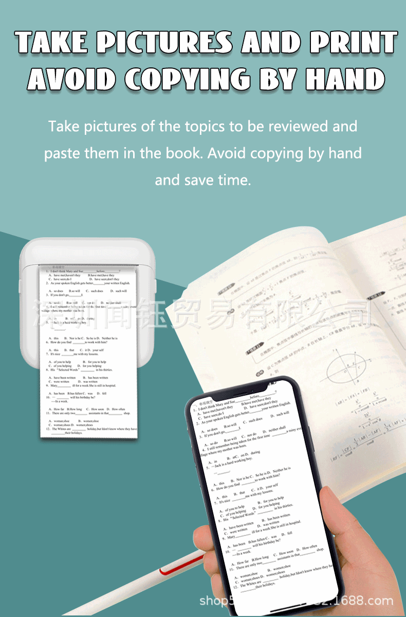 라벨 작은 휴대용 무선 열 사진 블루투스 프린터 포켓 학생 미니 잘못된 라벨 인쇄