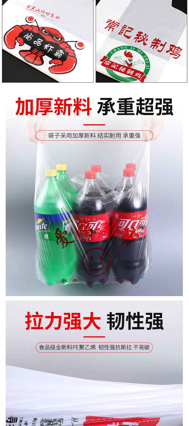 비닐 봉투 인쇄 로고 슈퍼 쇼핑백 휴대용 식품 포장 가방 테이크 아웃 과일 가방 조끼 가방 두껍게스토어 가기