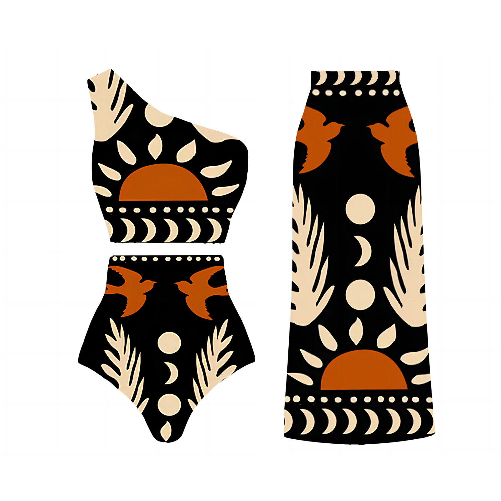 2025现货欧美性感连体泳衣拼色印花两件套涤纶裙热卖爆款泳装套装