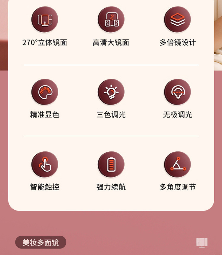 • 70% off 스택 쉘 미러 [5x 미러 + 3색 조명 + 충전식 모델]
