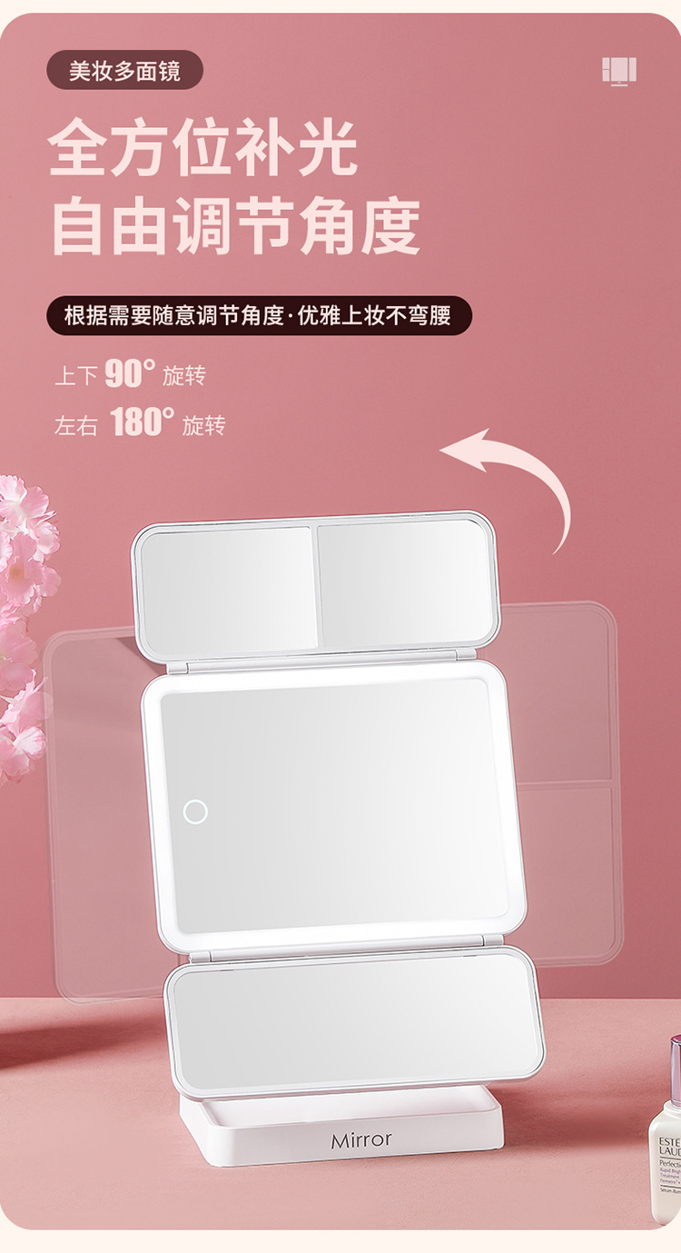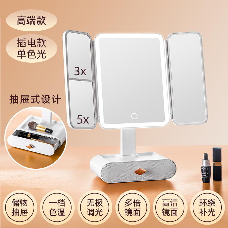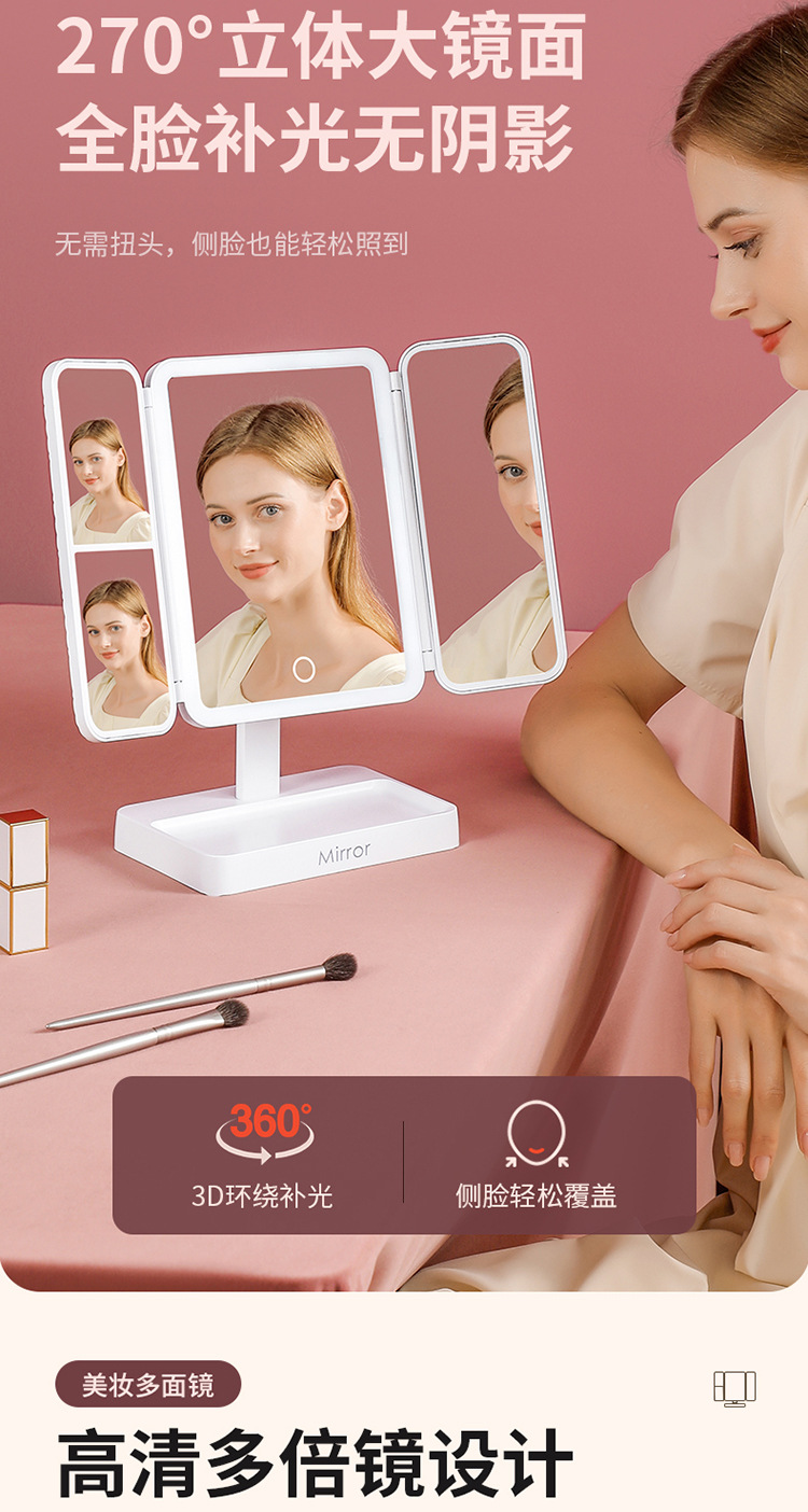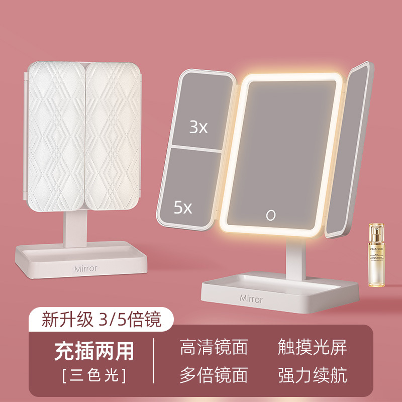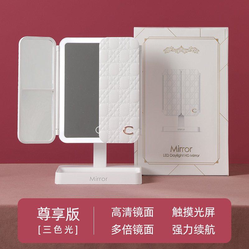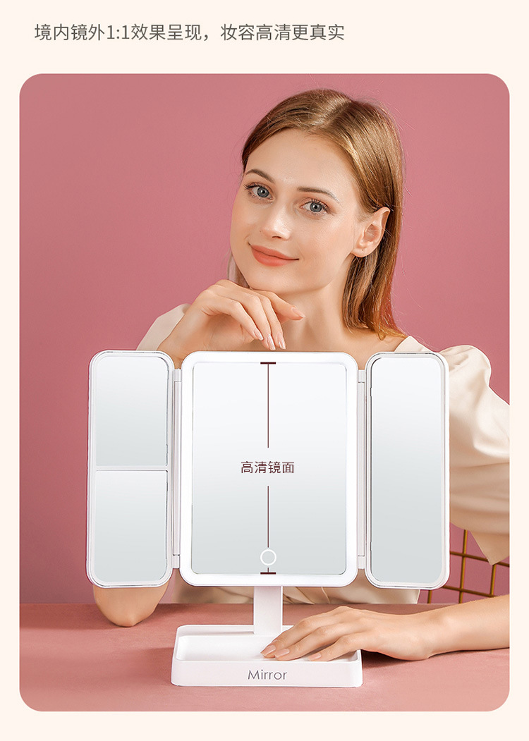 • 가죽 접이식 거울 [이중 사용 + 3 개의 빛 채우기 및 삽입]]