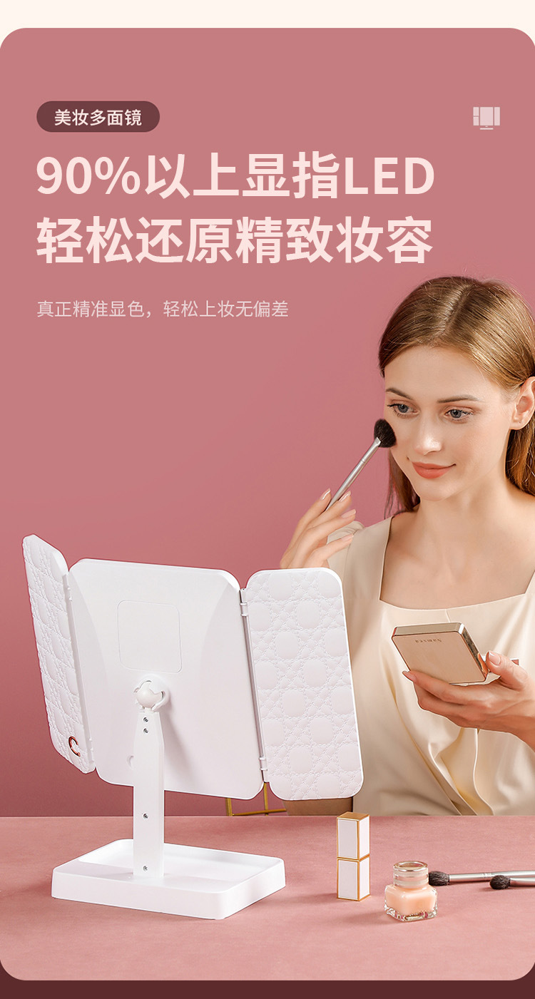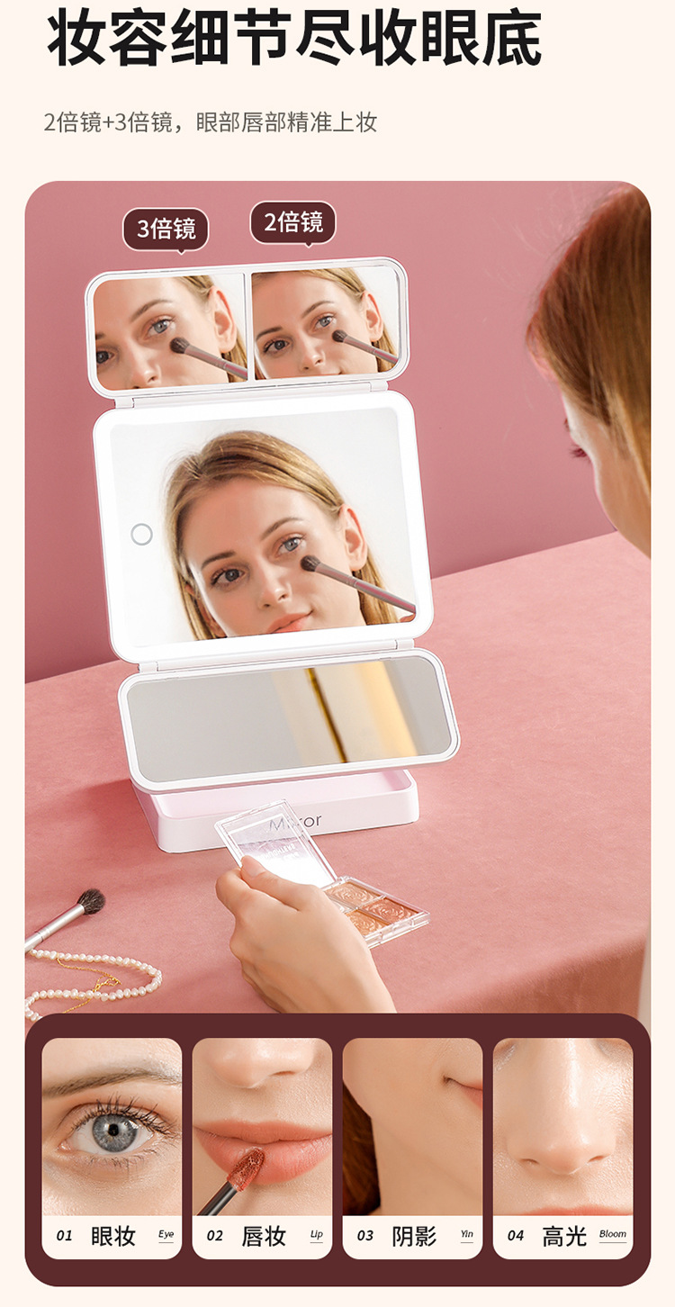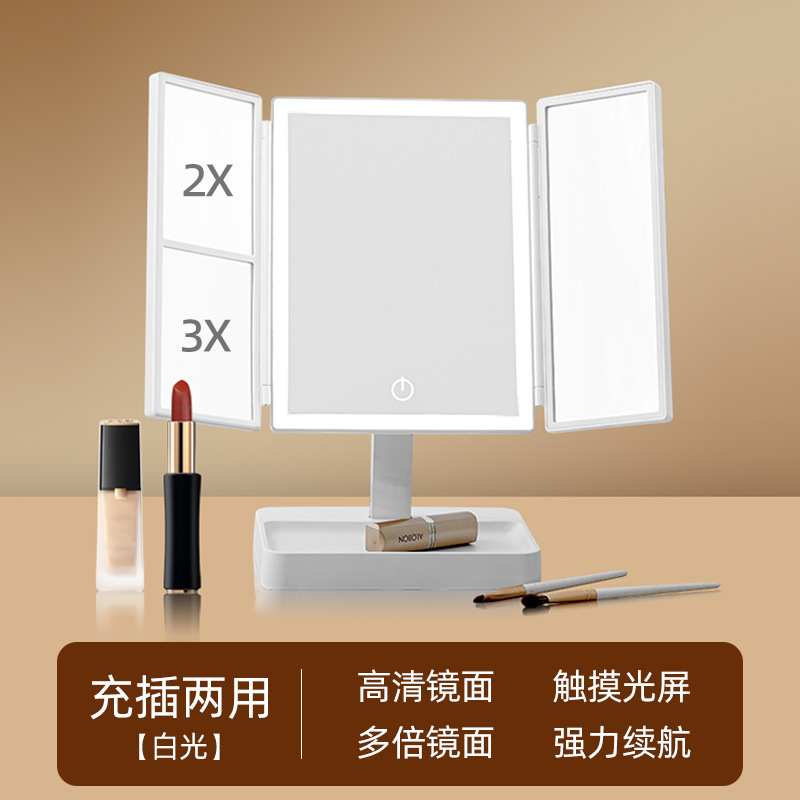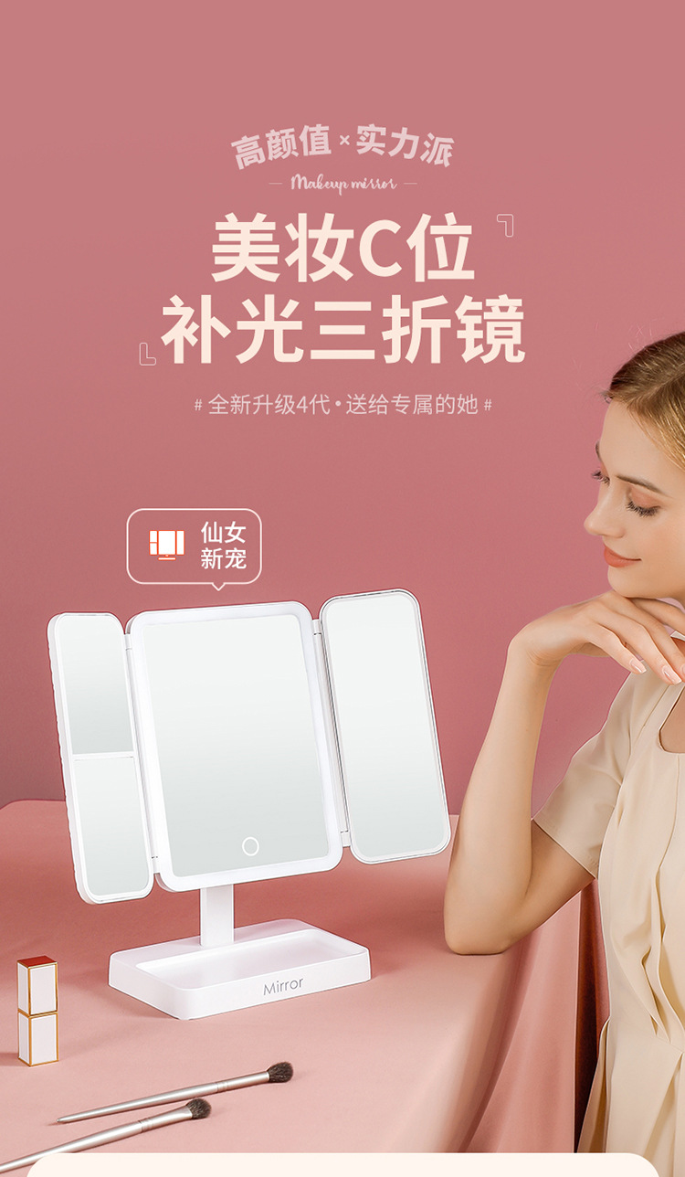 • 가죽 접이식 거울 [이중 사용 + 3 개의 빛 채우기 및 삽입]]