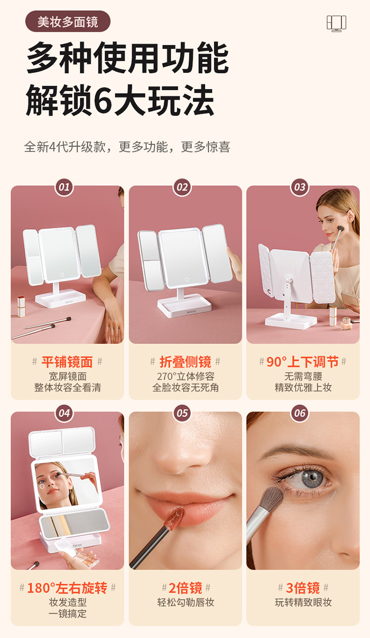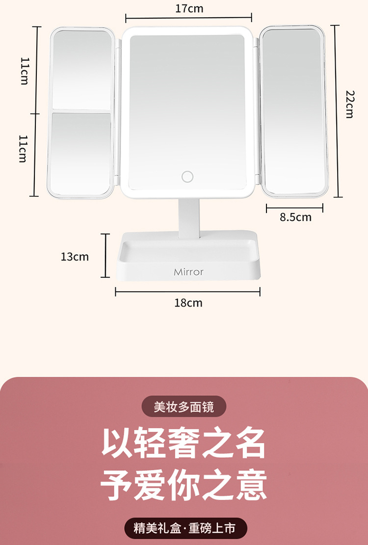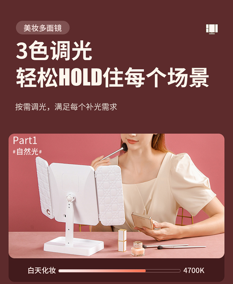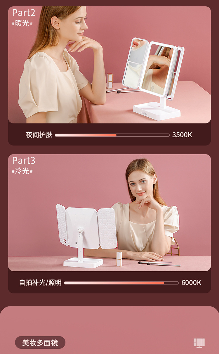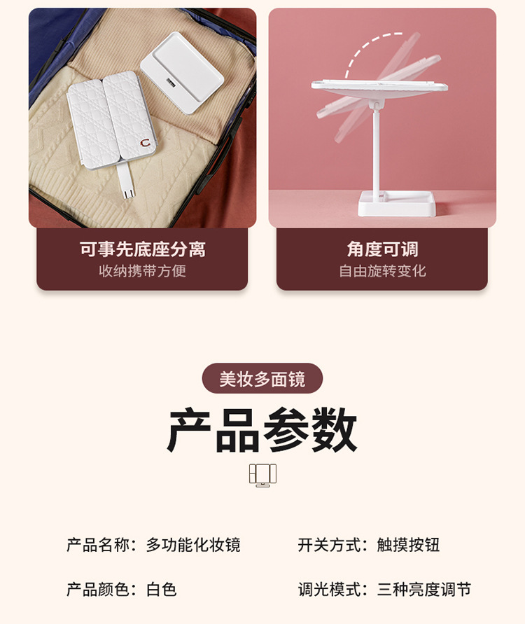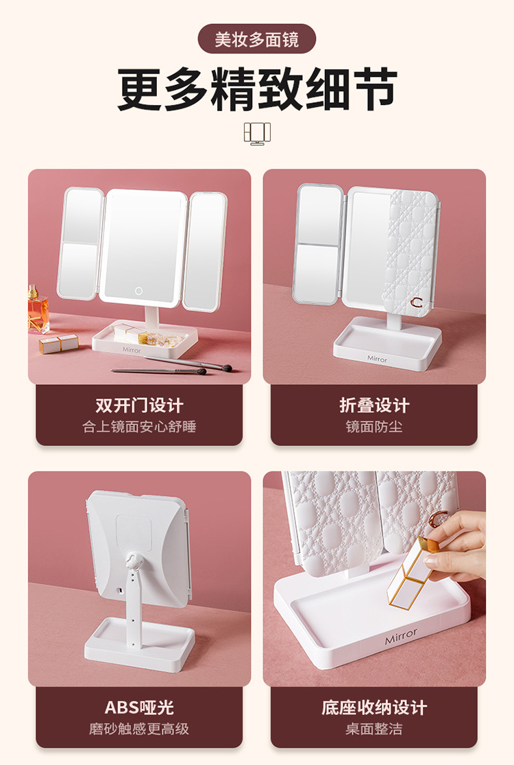 • 가죽 접이식 거울 [이중 사용 + 3 개의 빛 채우기 및 삽입]]