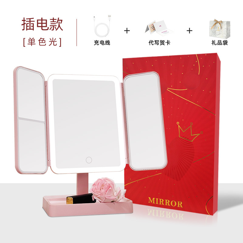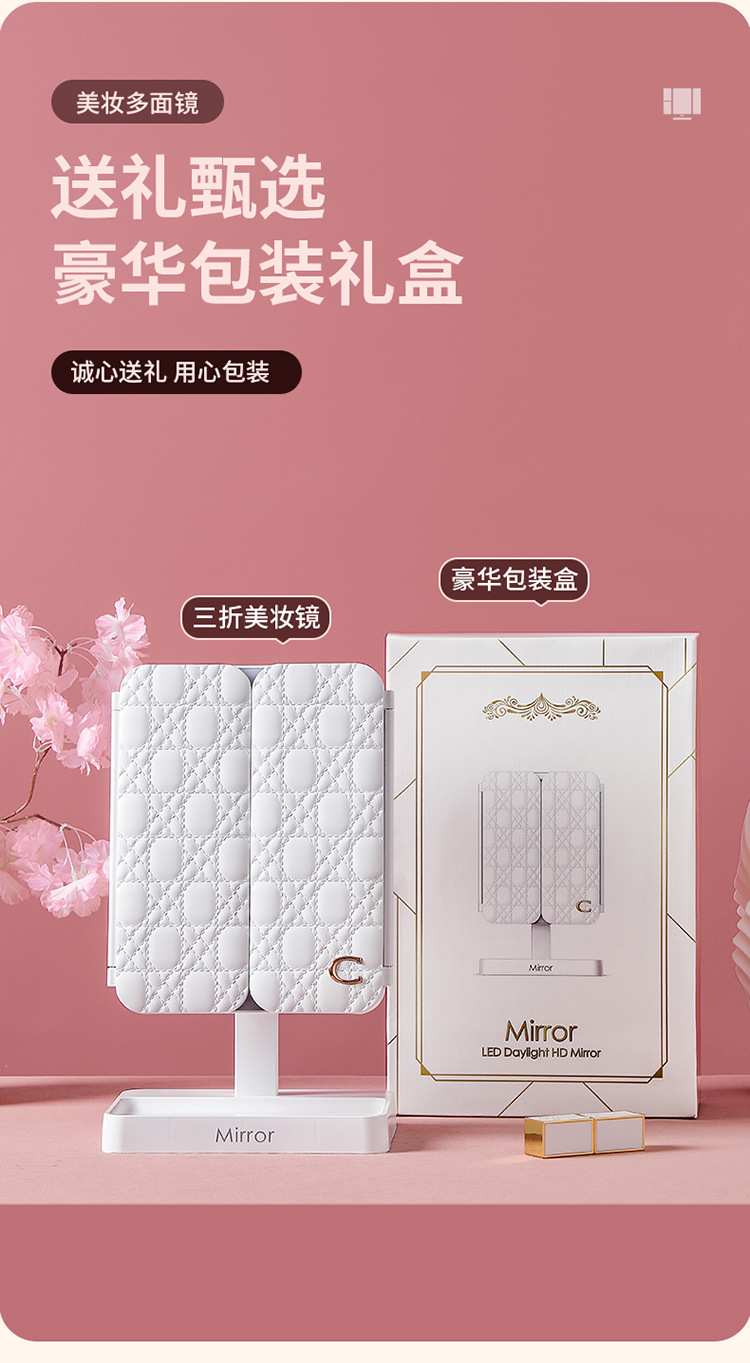 • 사쿠라 파우더 가죽 접이식 거울 [플러그인 화이트 라이트]]