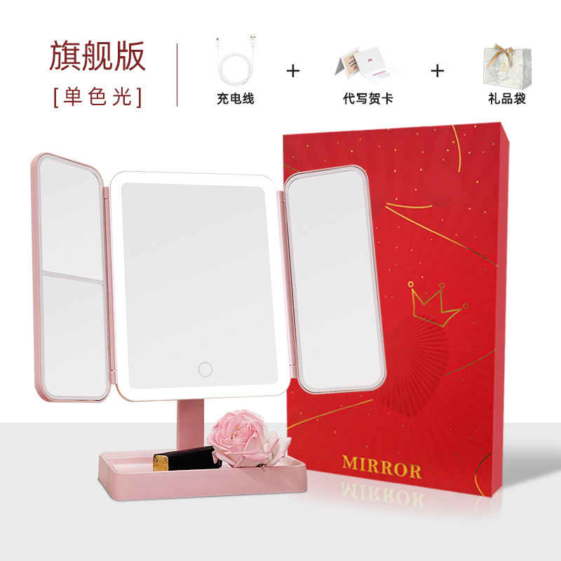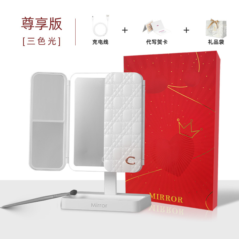 • 가죽 접이식 거울 [기프트 백 + 화이트 라이트]]