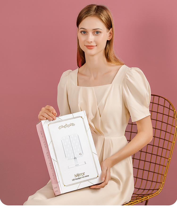 • 가죽 접이식 거울 [이중 사용 + 백색광 충전 및 삽입]]